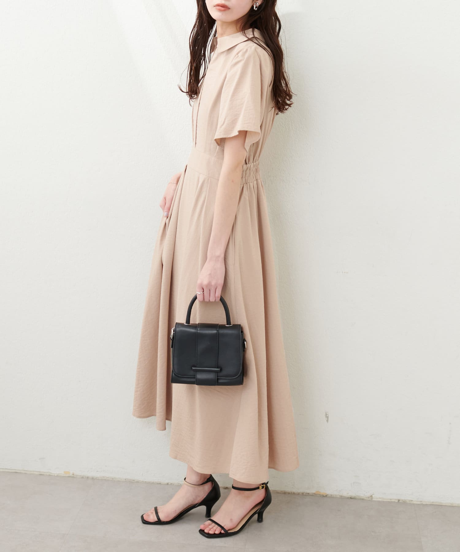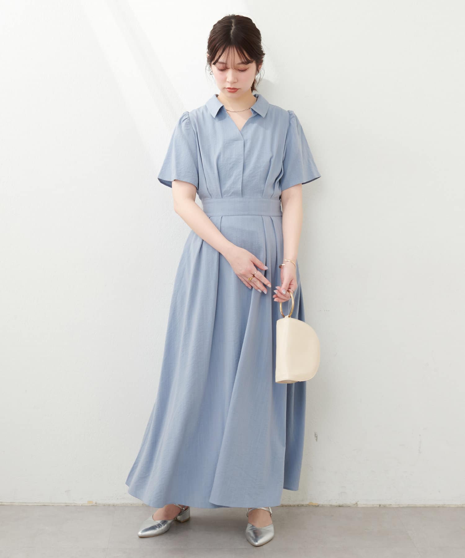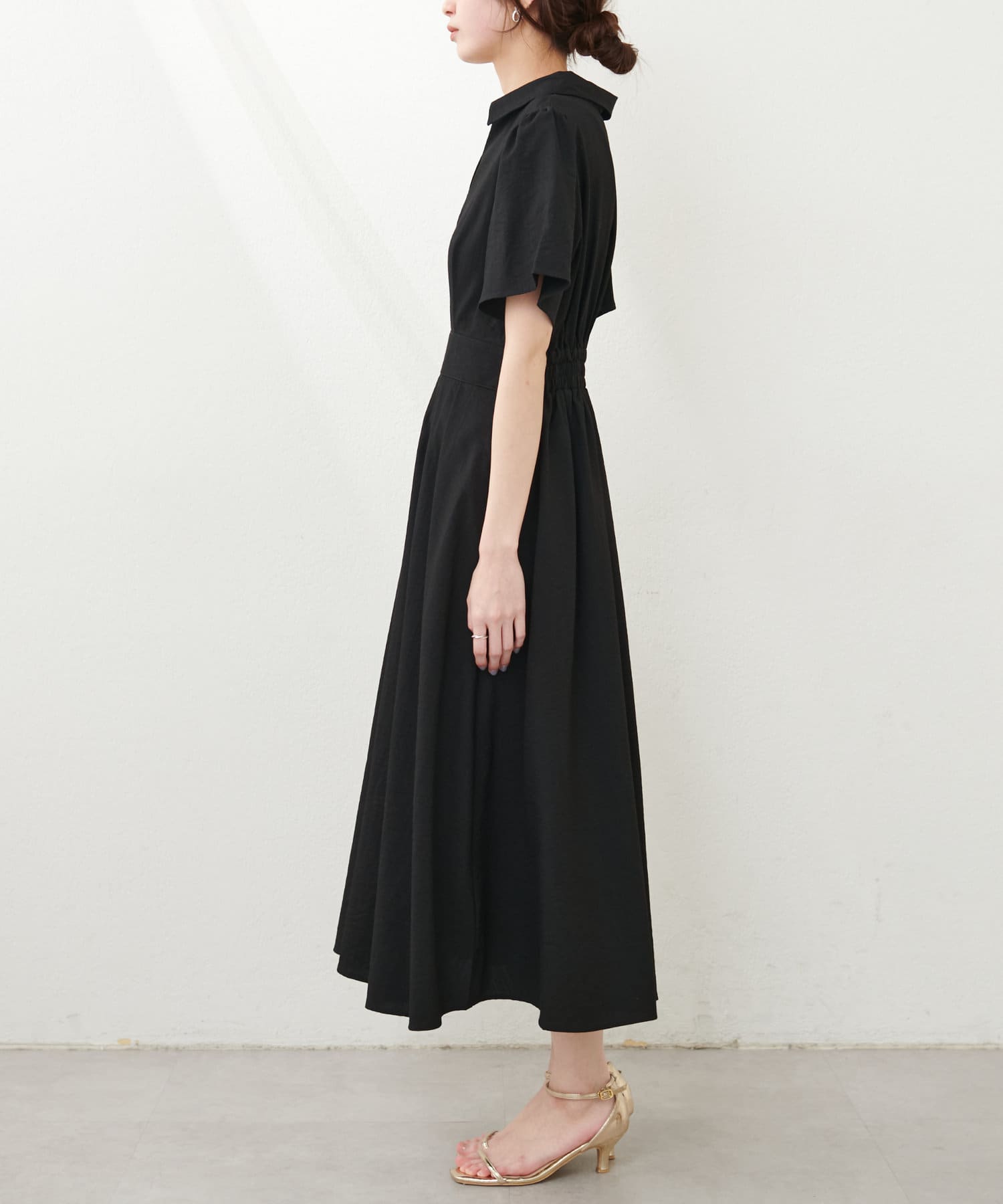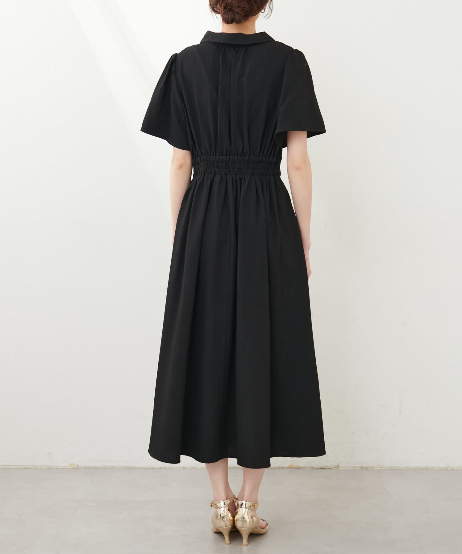 スキッパー衿フレア袖ワンピース