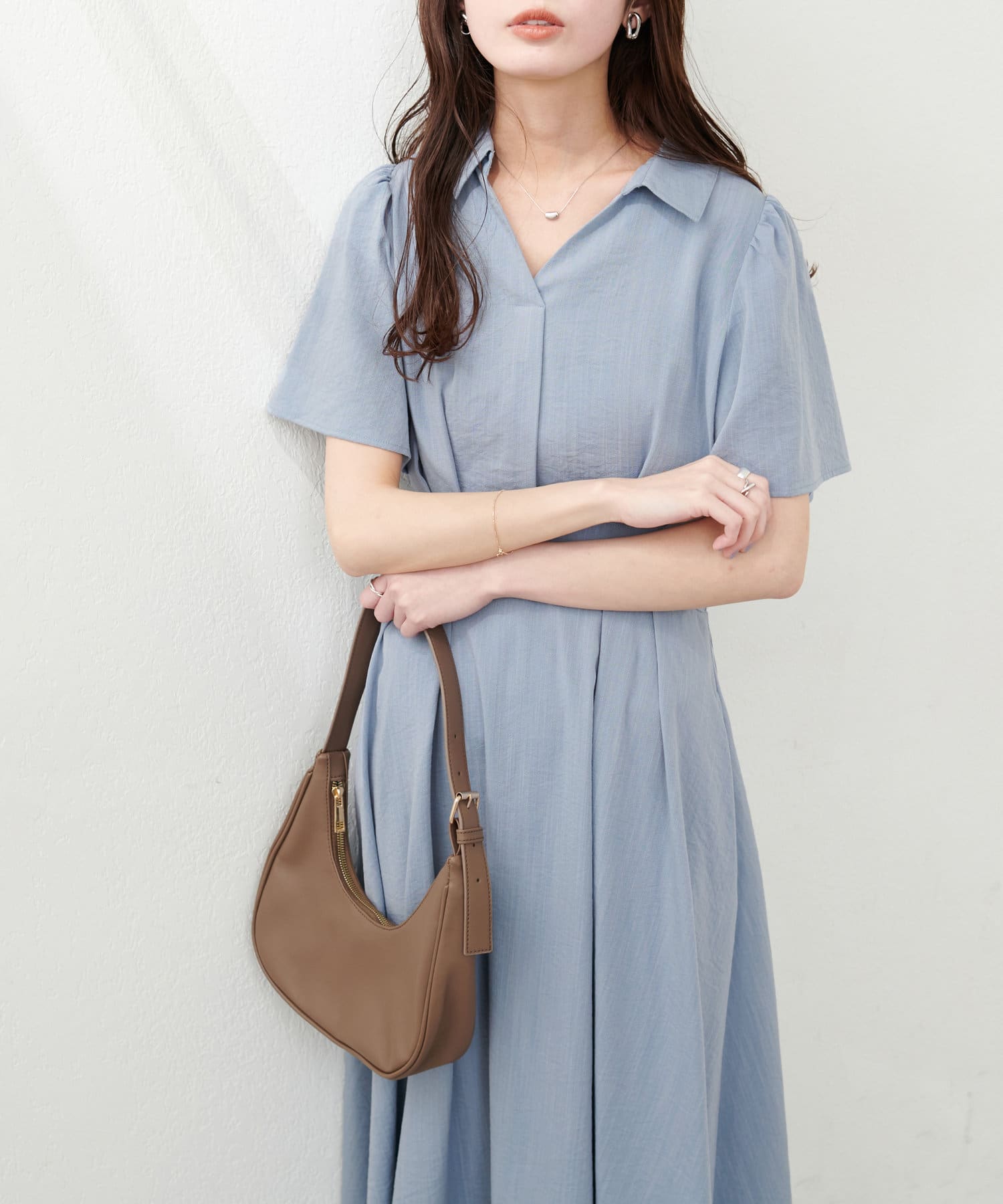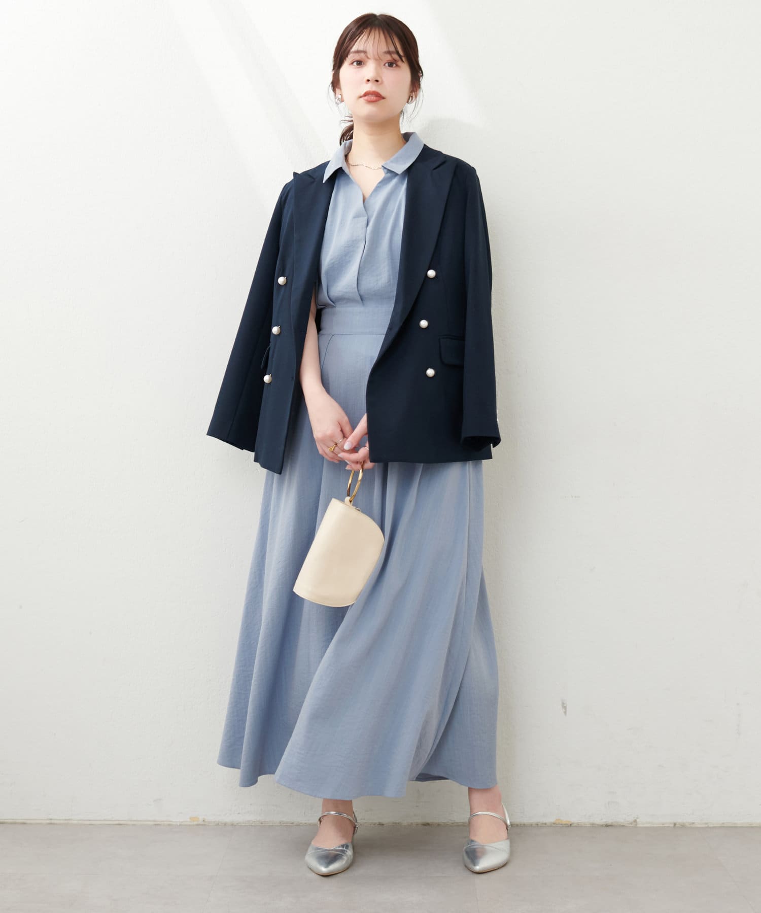 お好みで華奢なアクセサリーをプラスするとよりドレッシーな装いに。