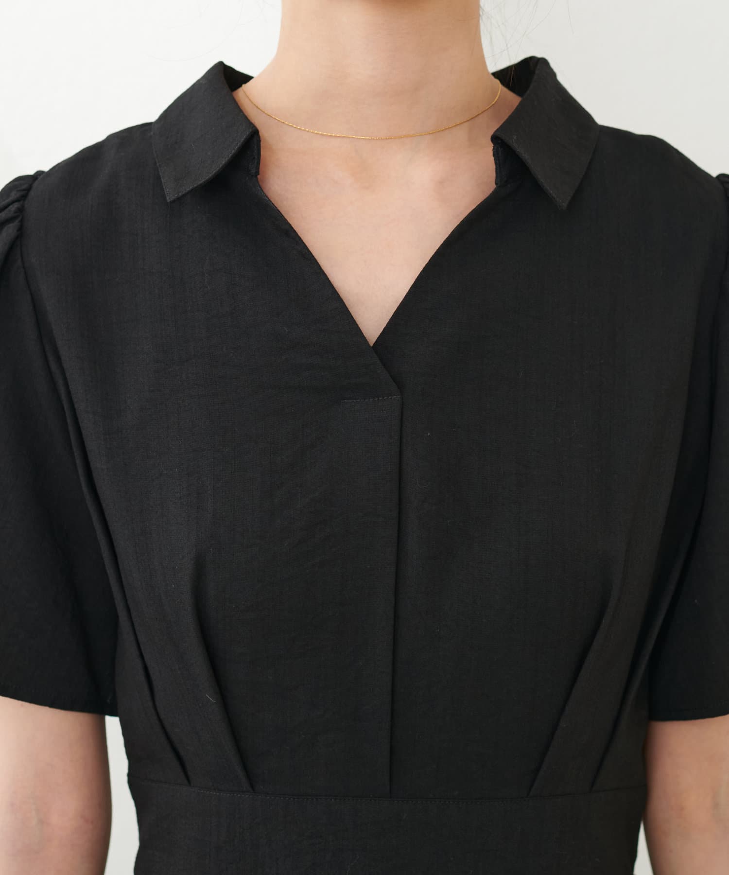 デコルテラインをすっきりヘルシーに見せてくれるスキッパーデザインと、