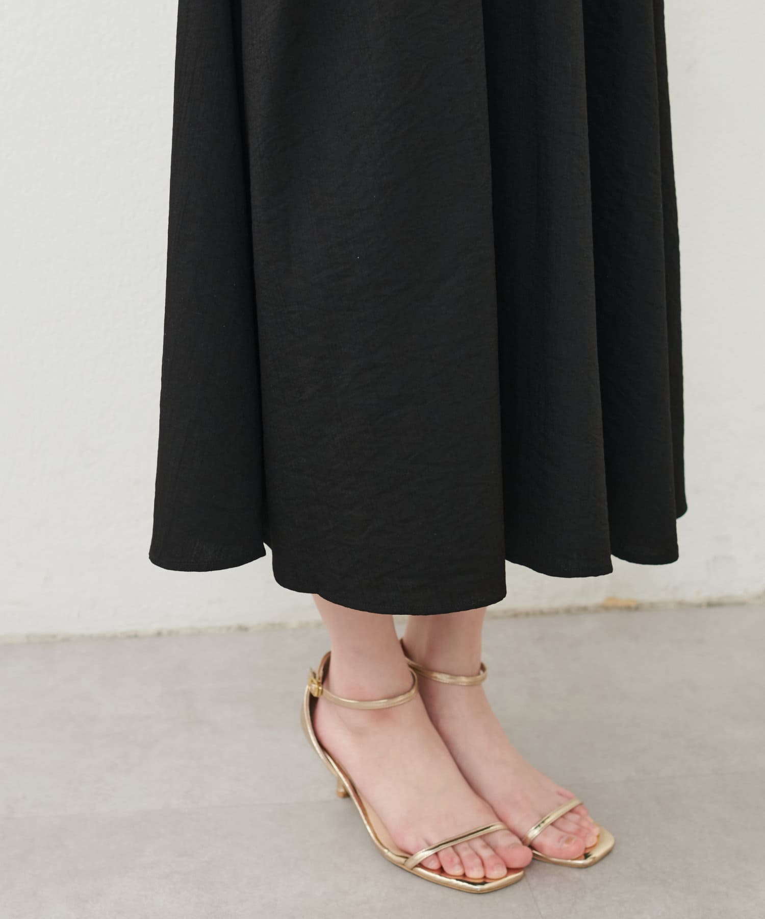 足元はサンダルやミュール、フラットシューズなどを選ぶと上品な大人レディスタイルに仕上がります。