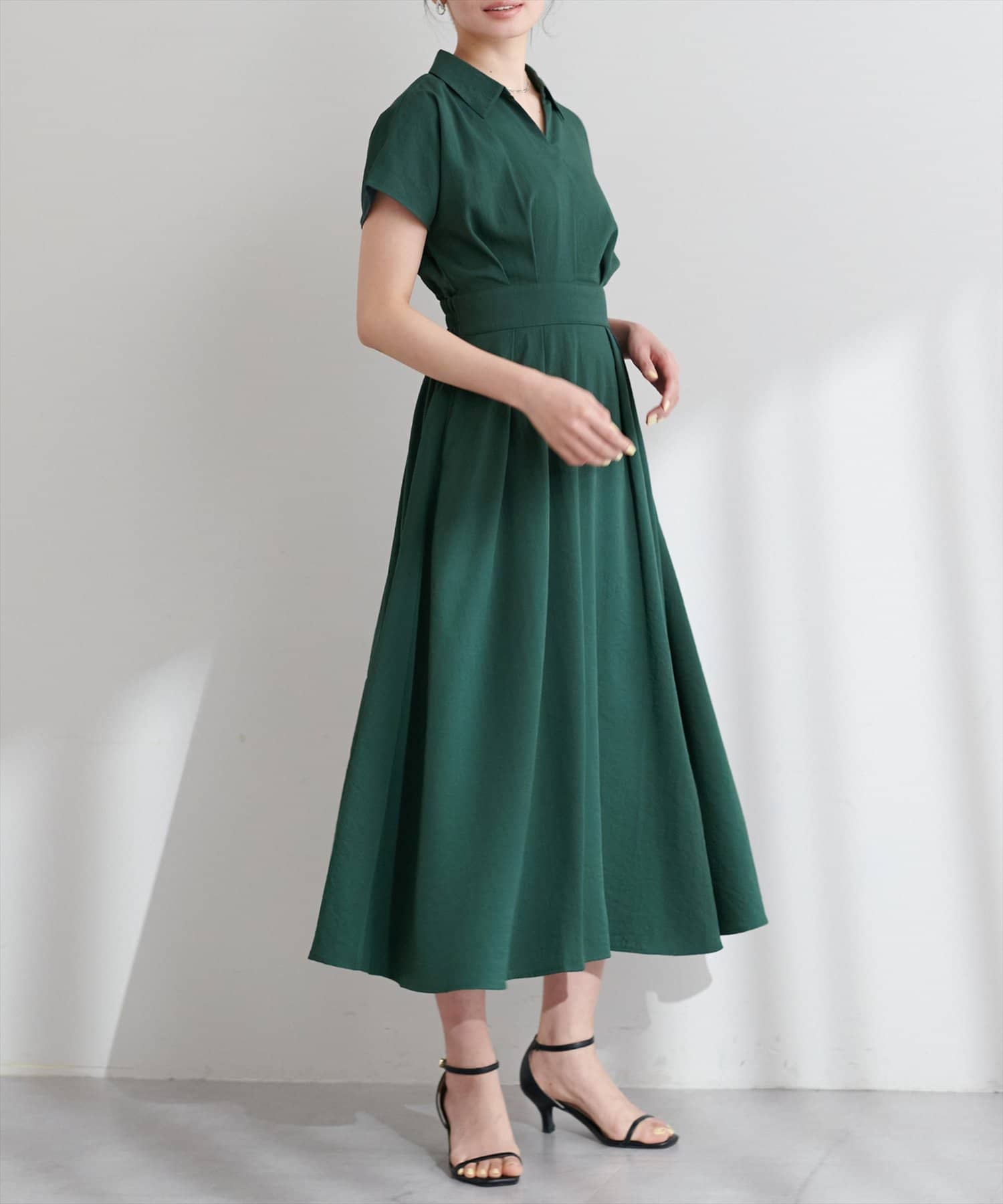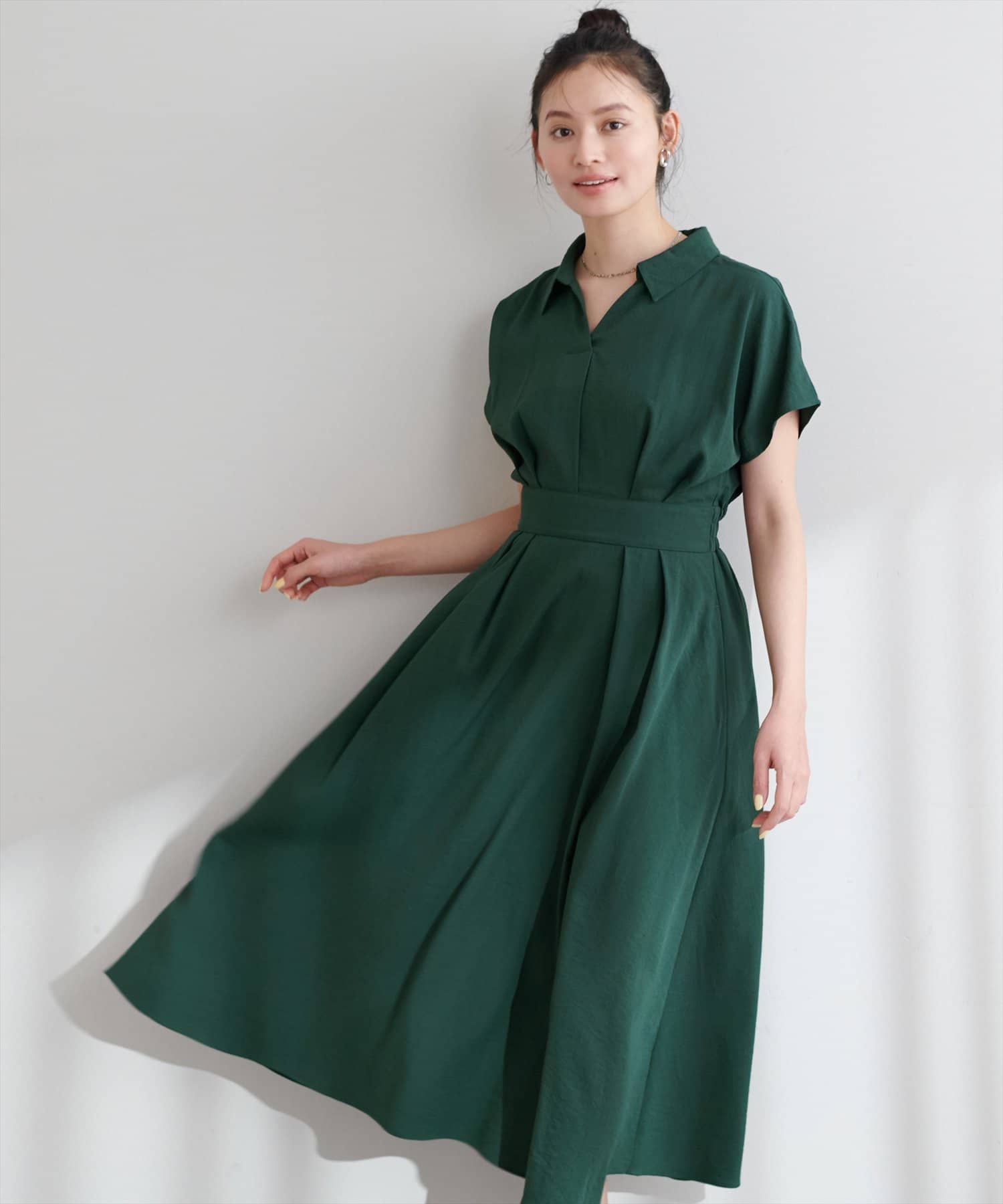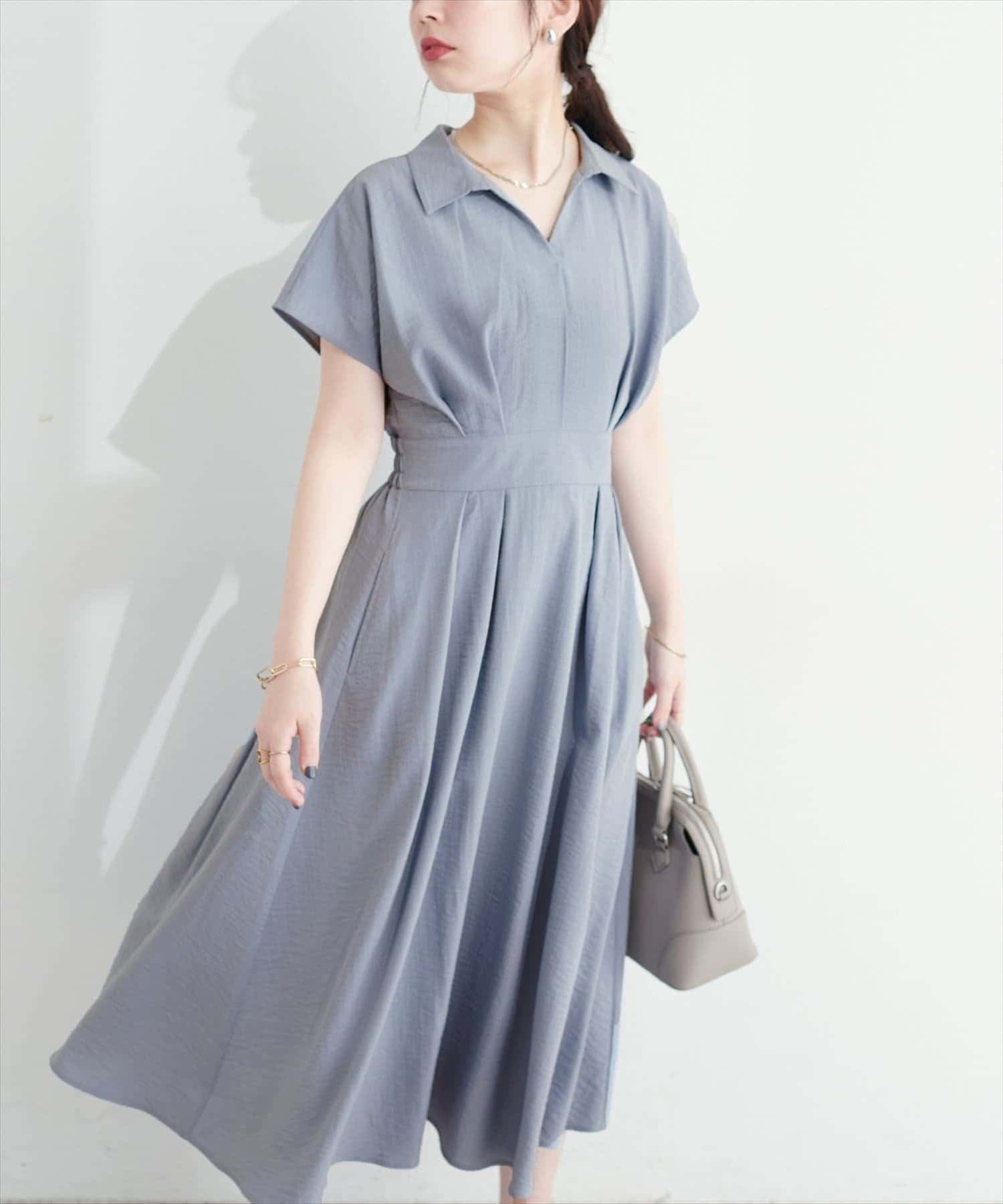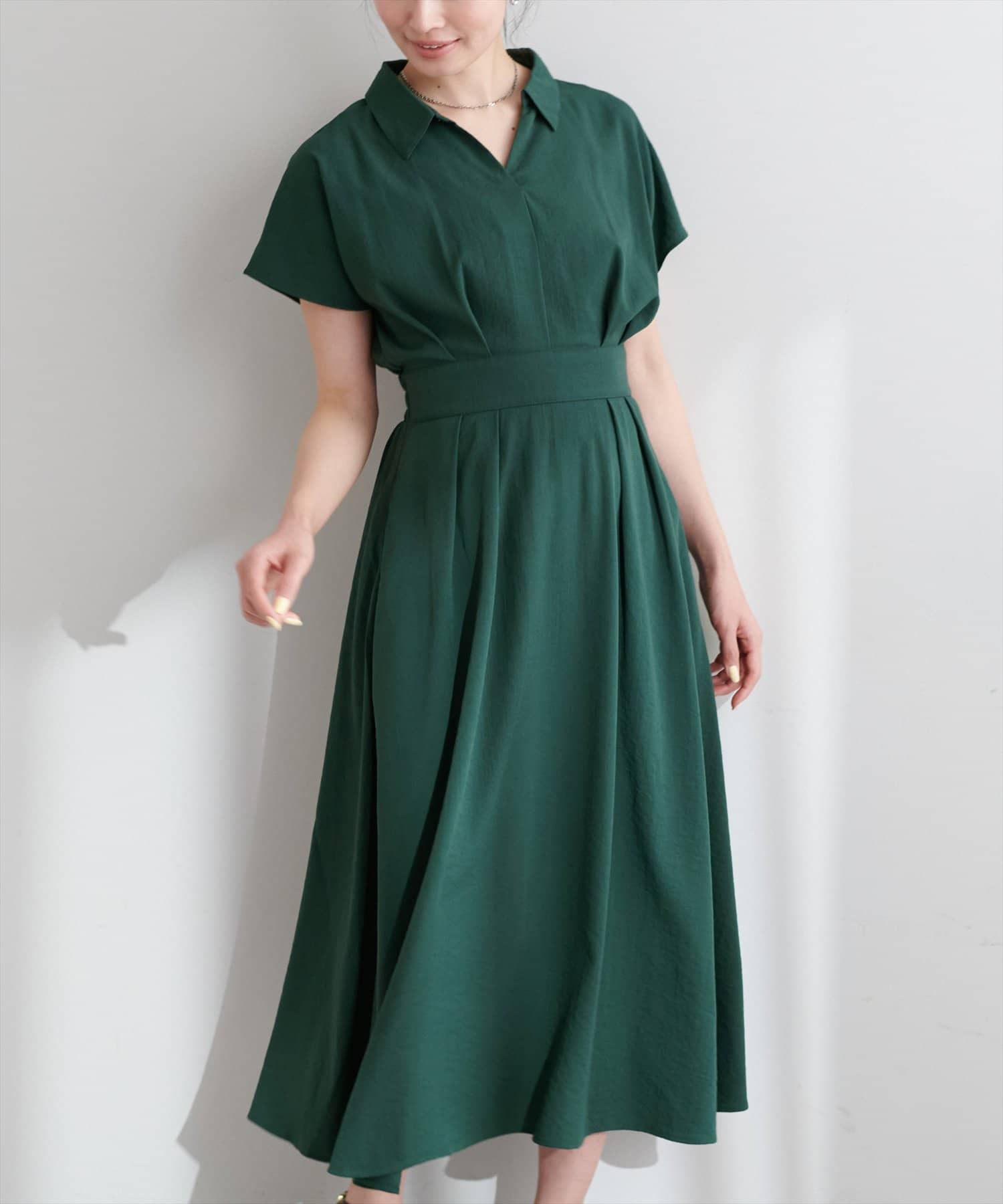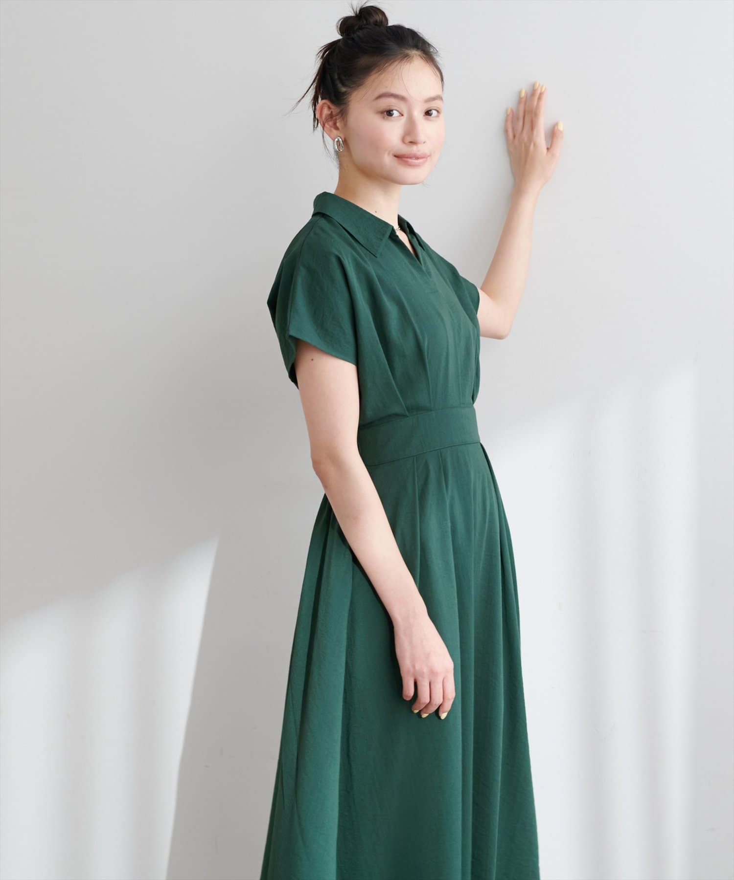 【大人気リバイバル】涼しげスキッパー衿お上品ワンピース