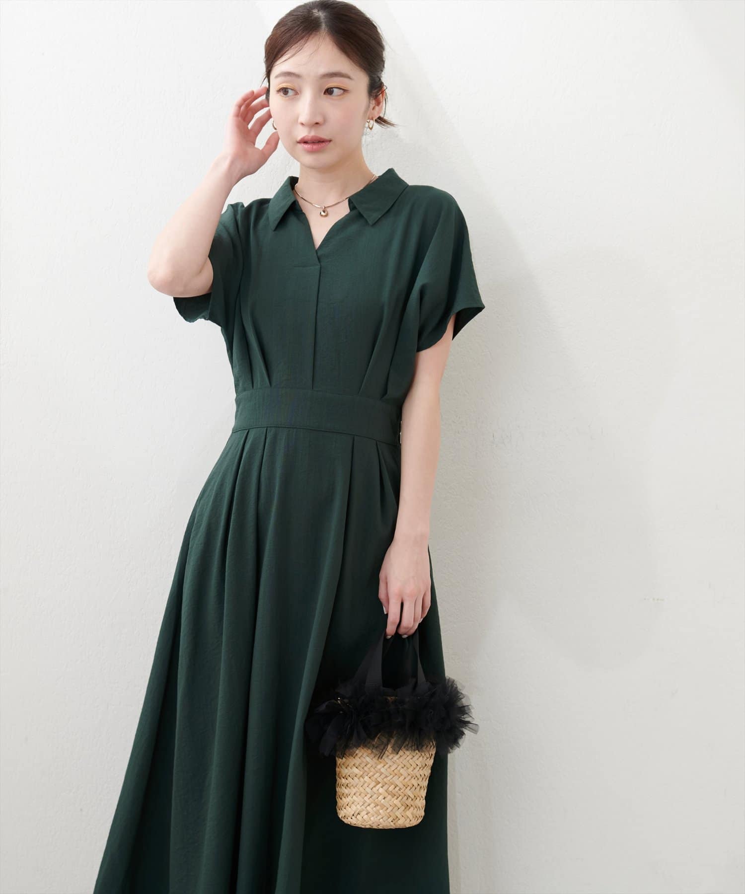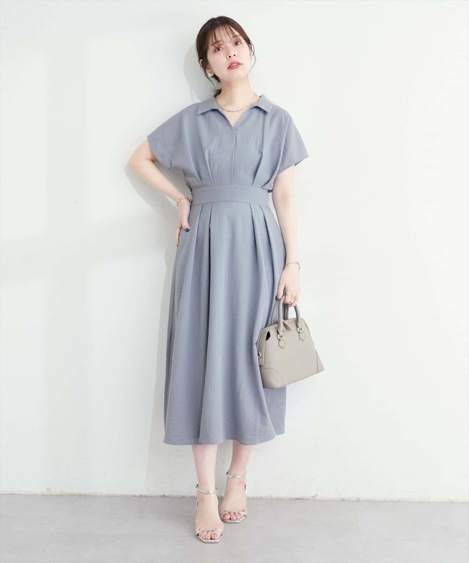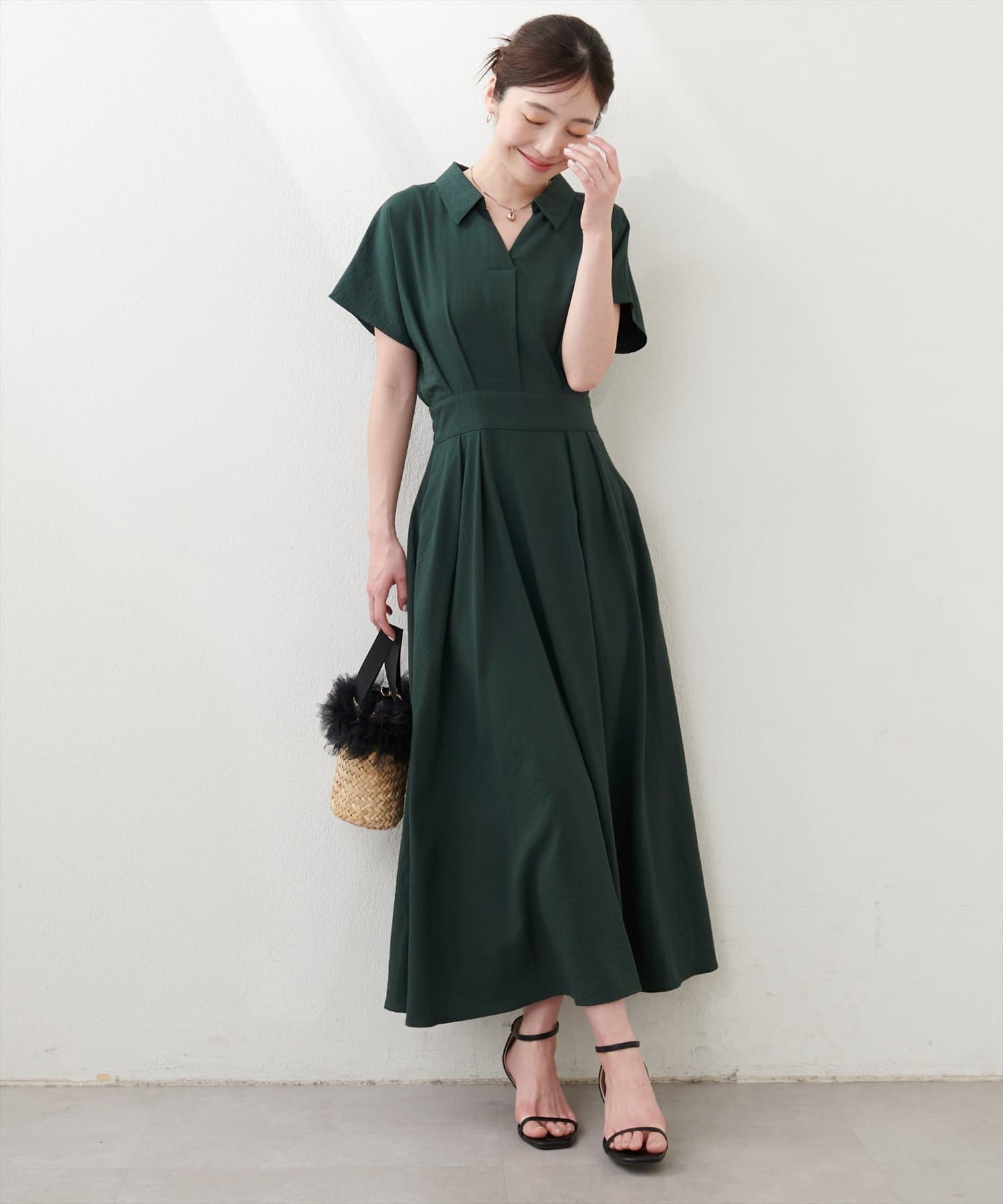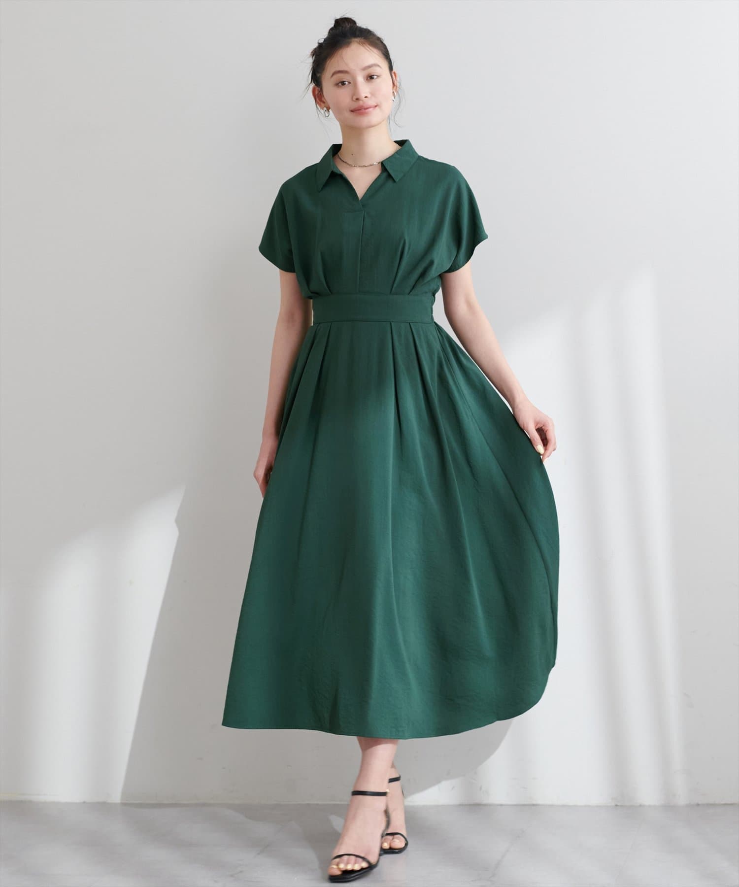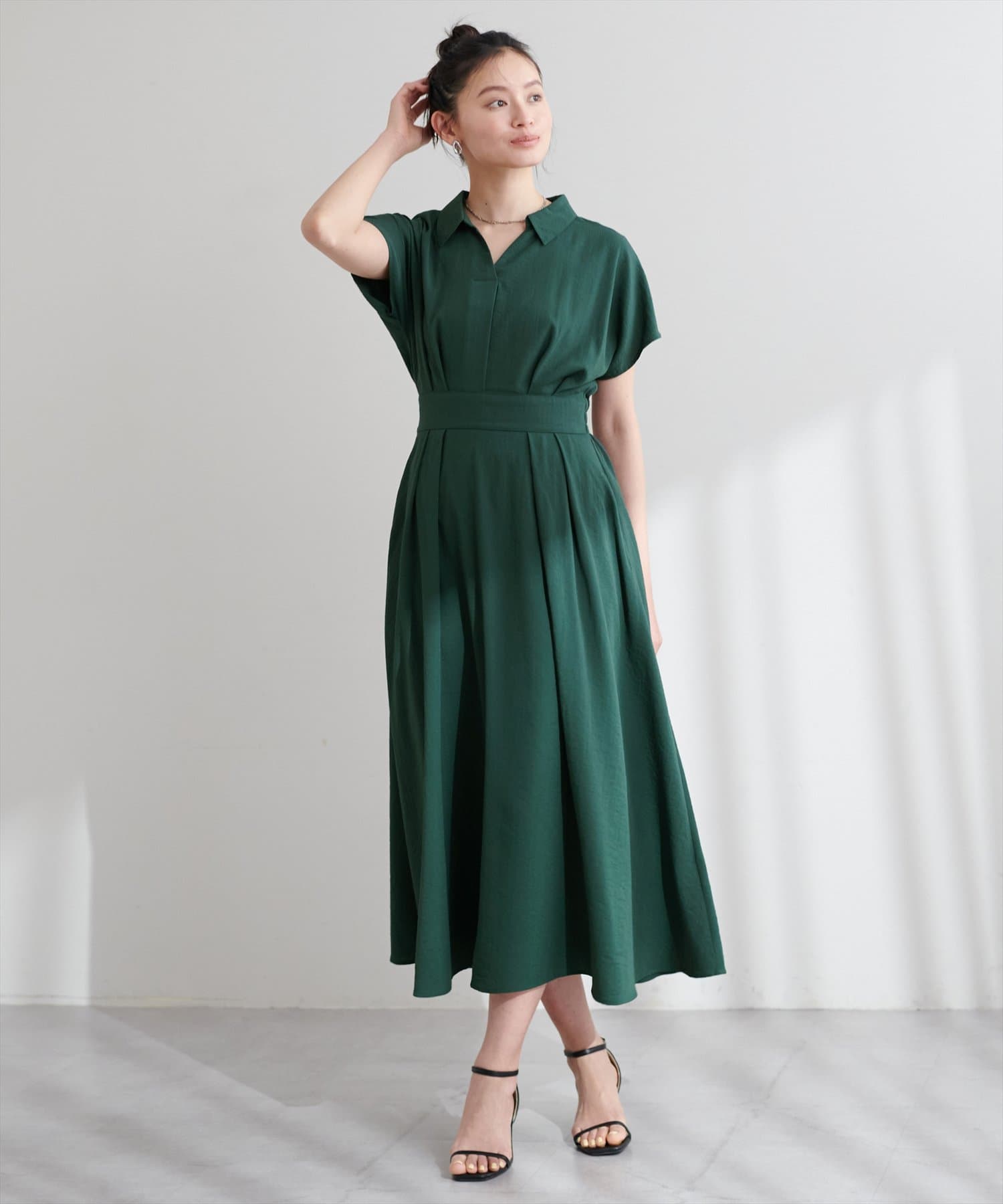 【大人気リバイバル】涼しげスキッパー衿お上品ワンピース