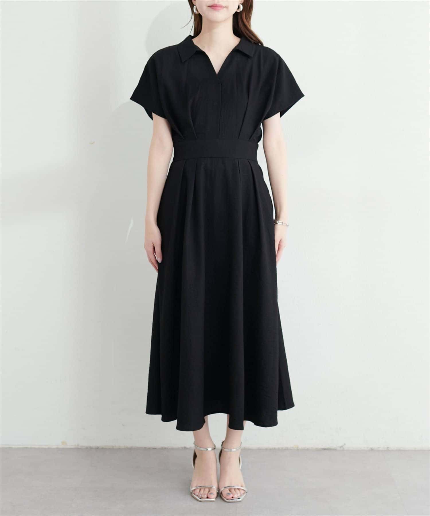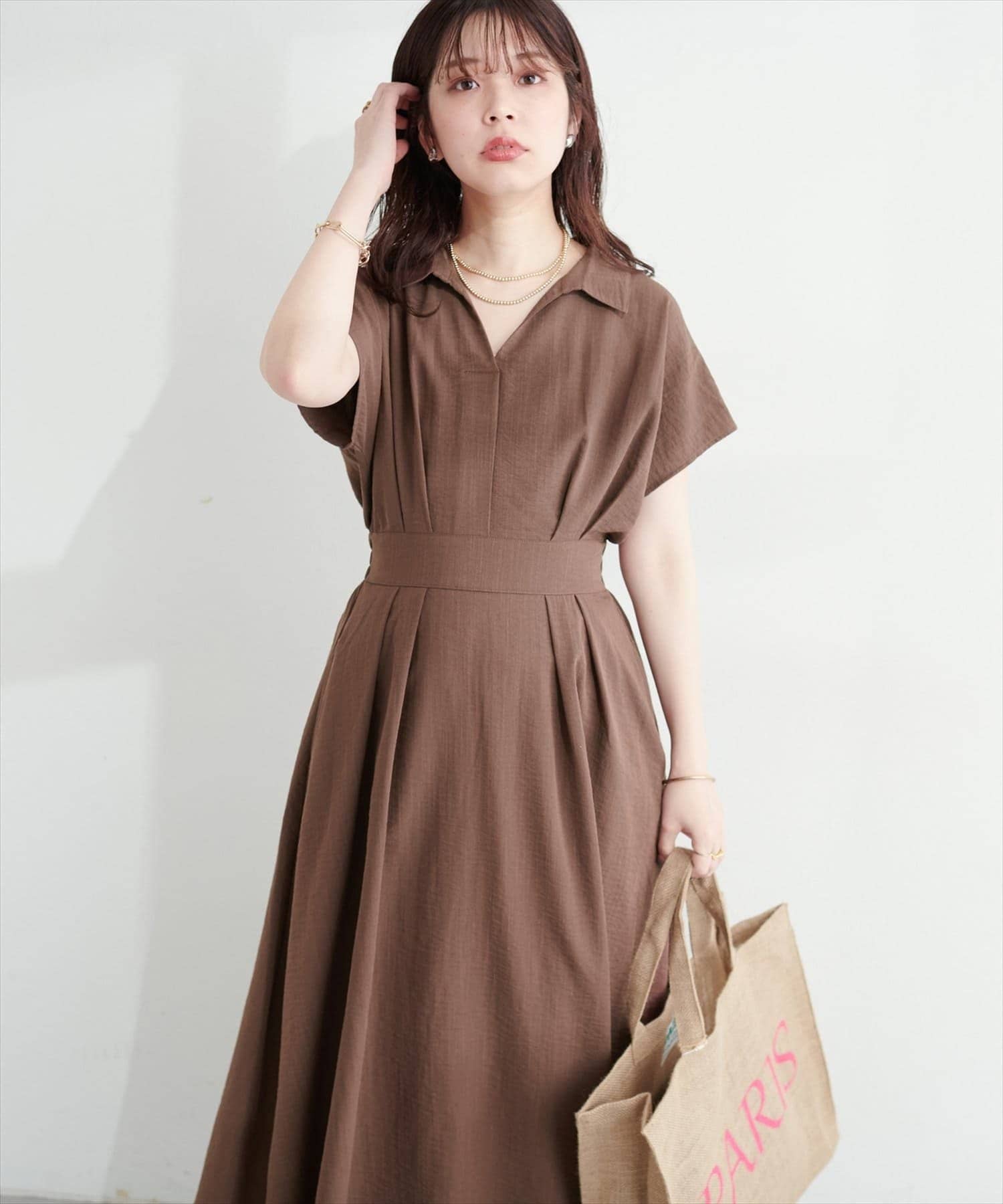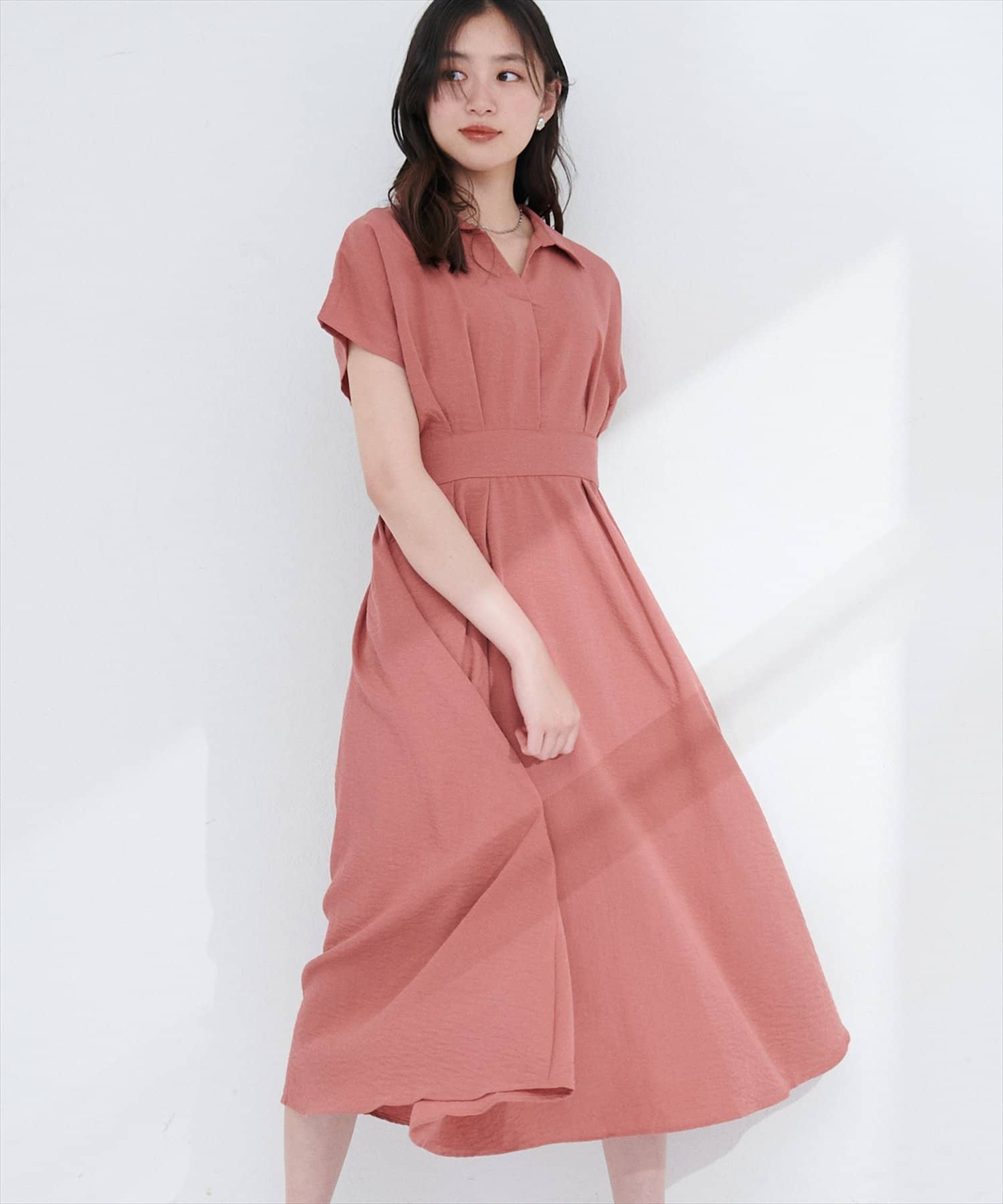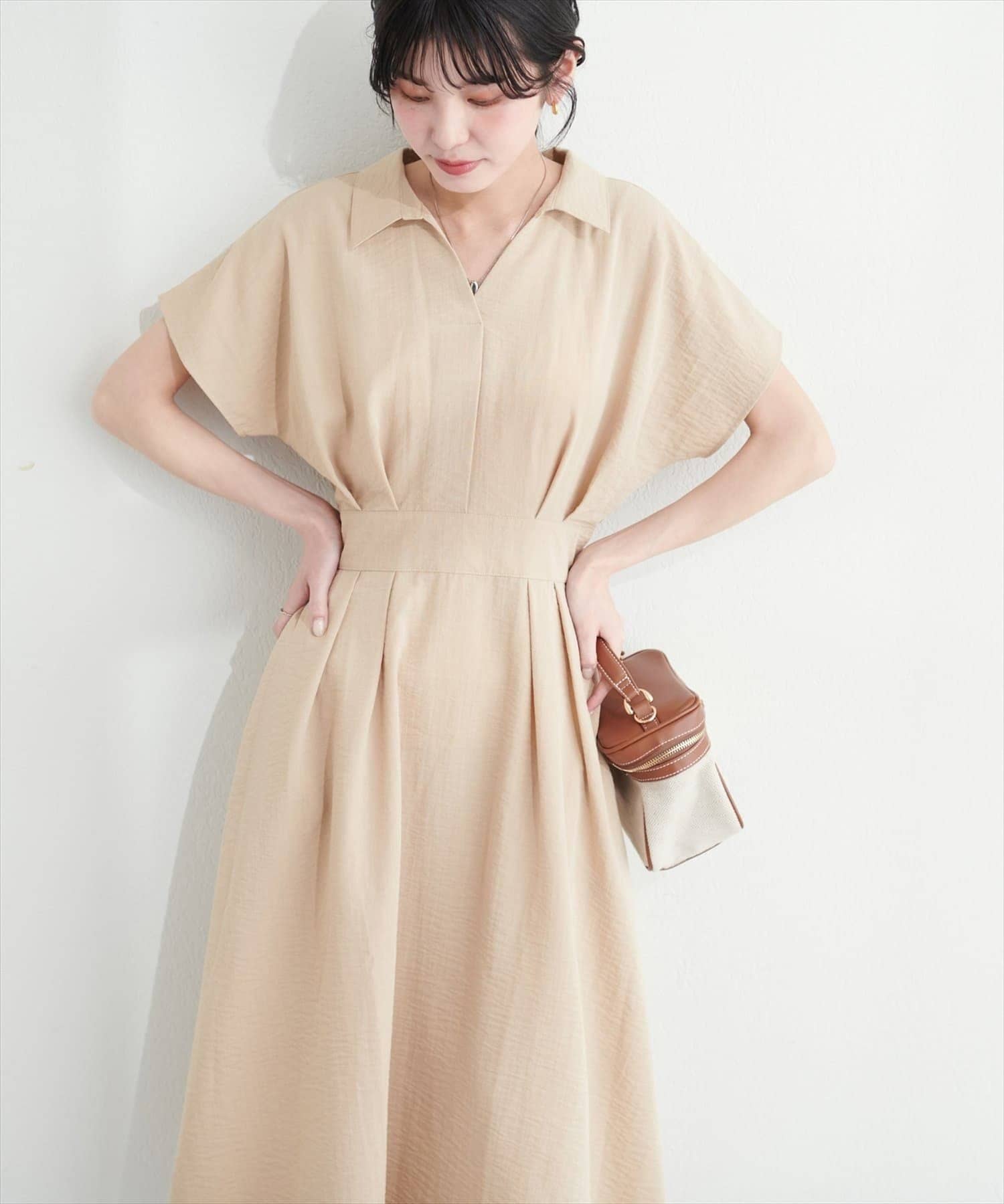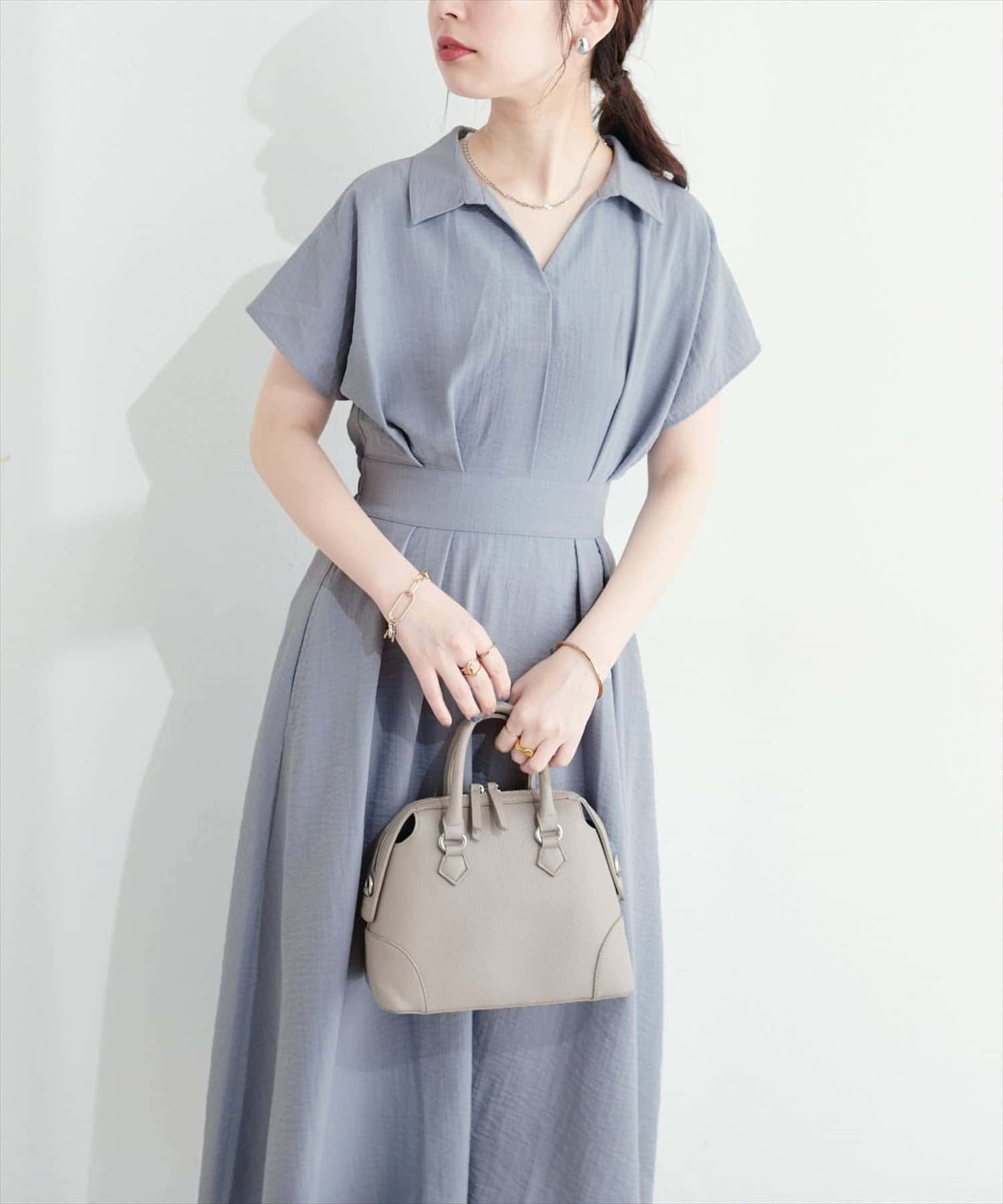 【大人気リバイバル】涼しげスキッパー衿お上品ワンピース