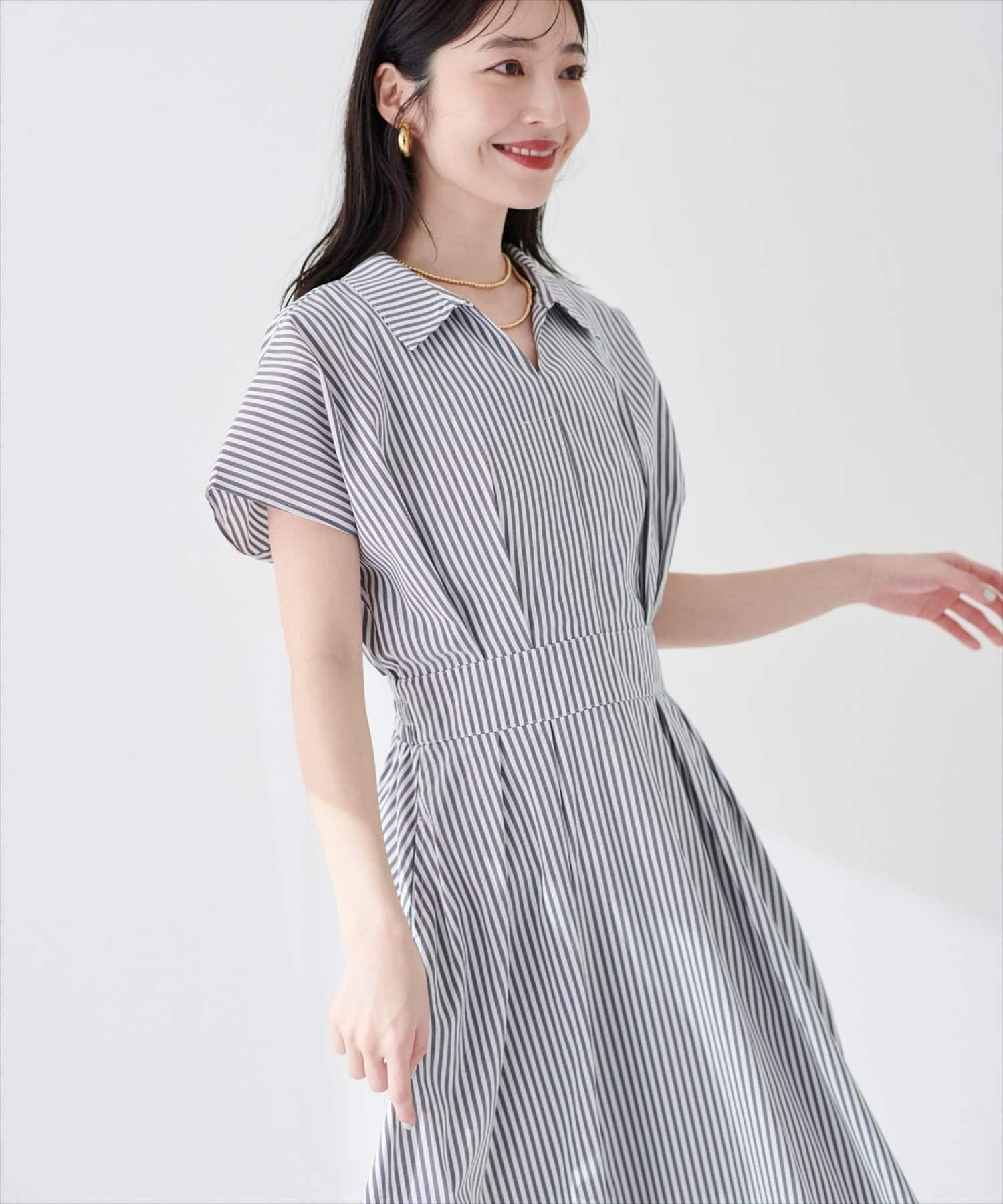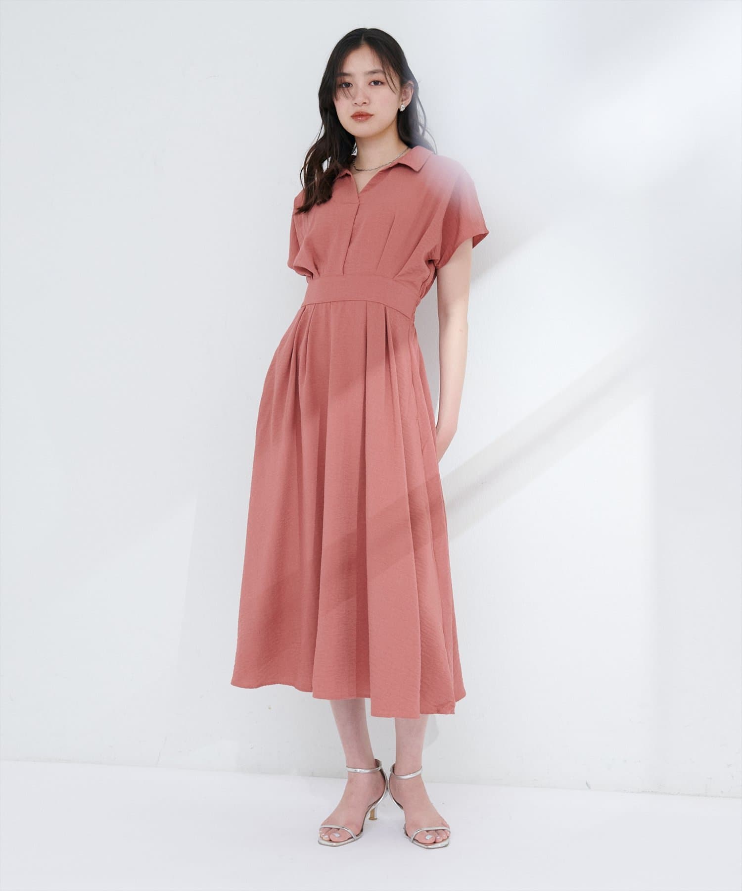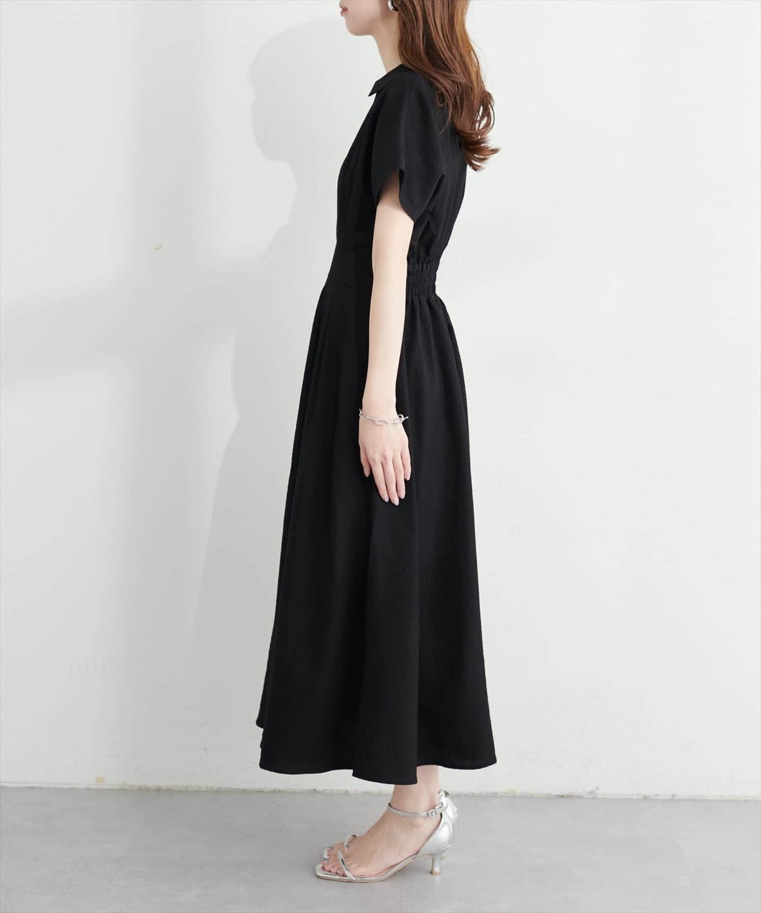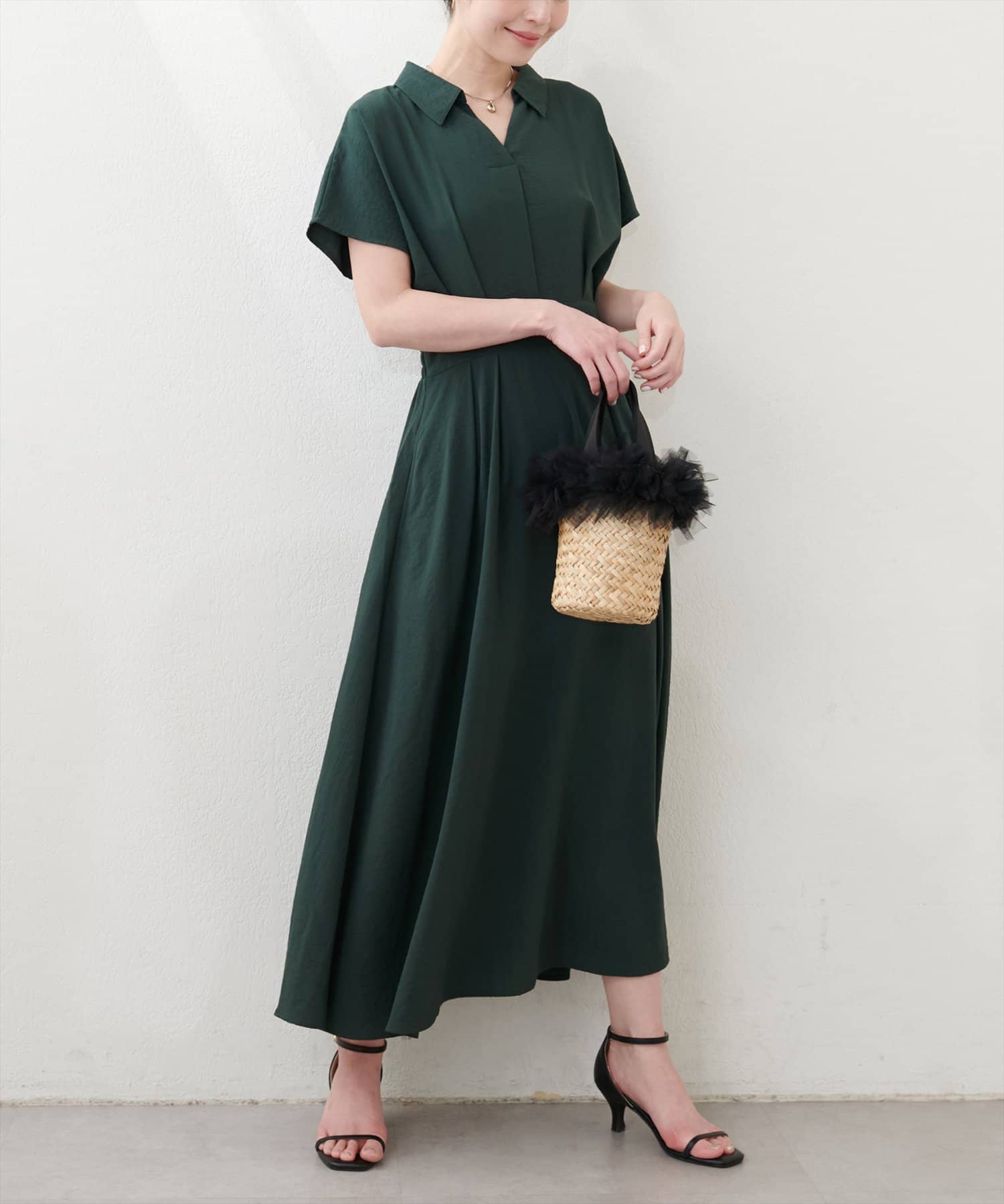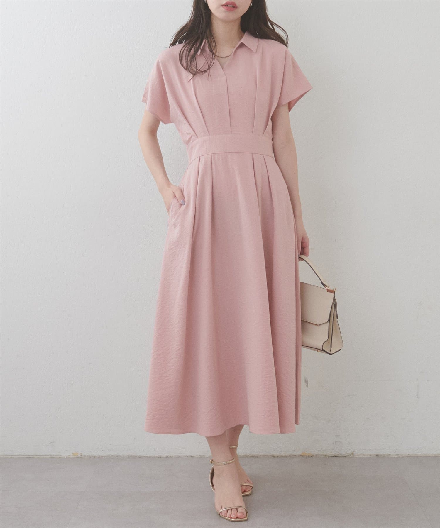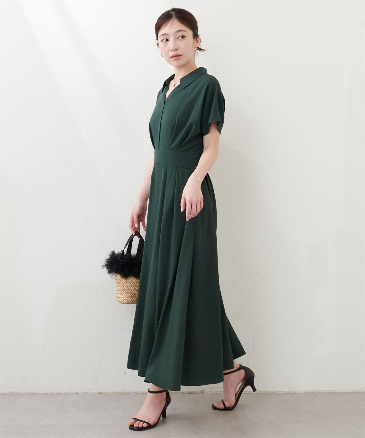 【大人気リバイバル】涼しげスキッパー衿お上品ワンピース