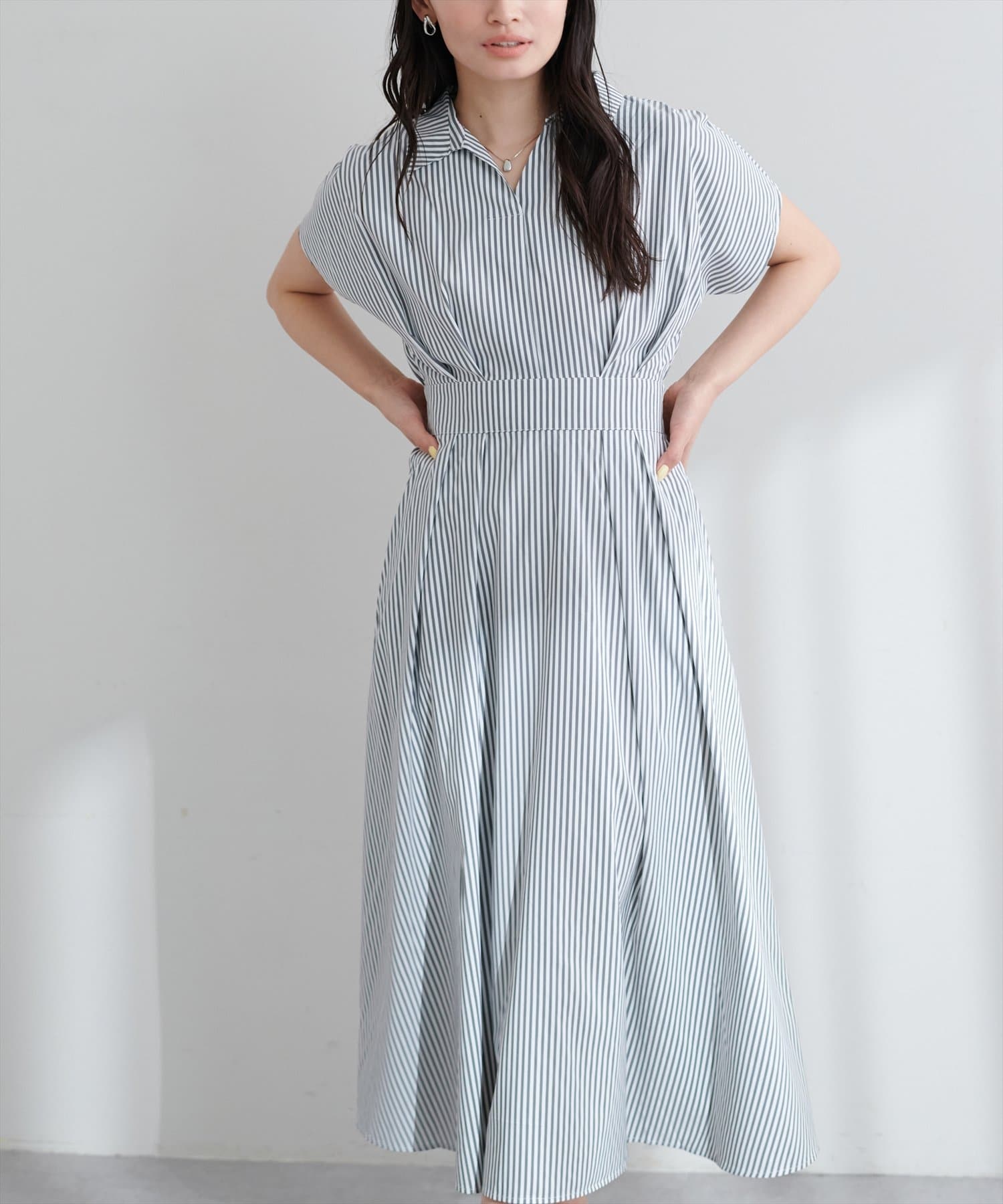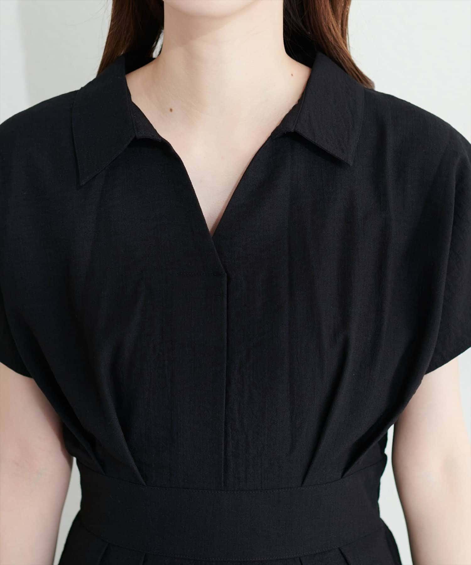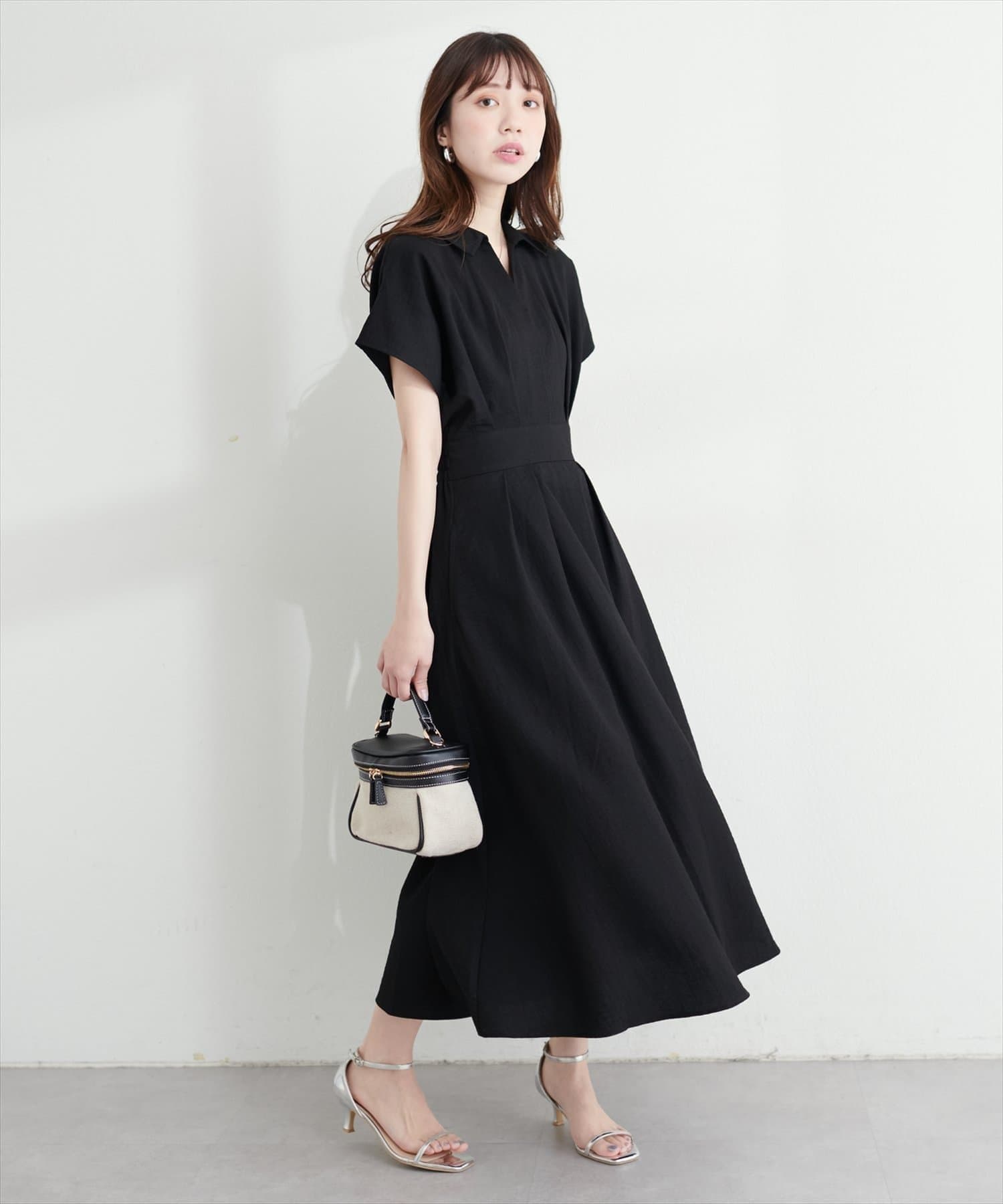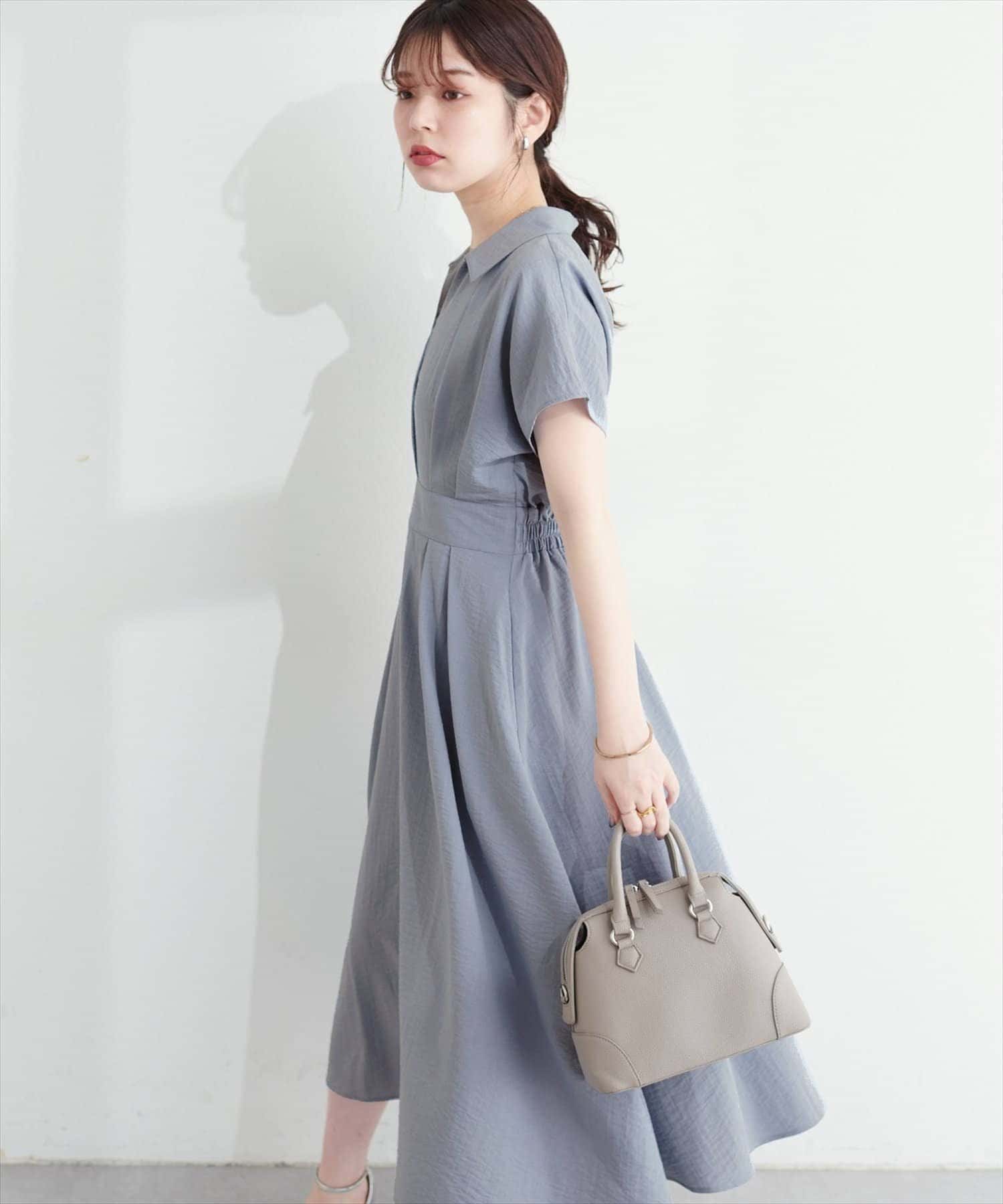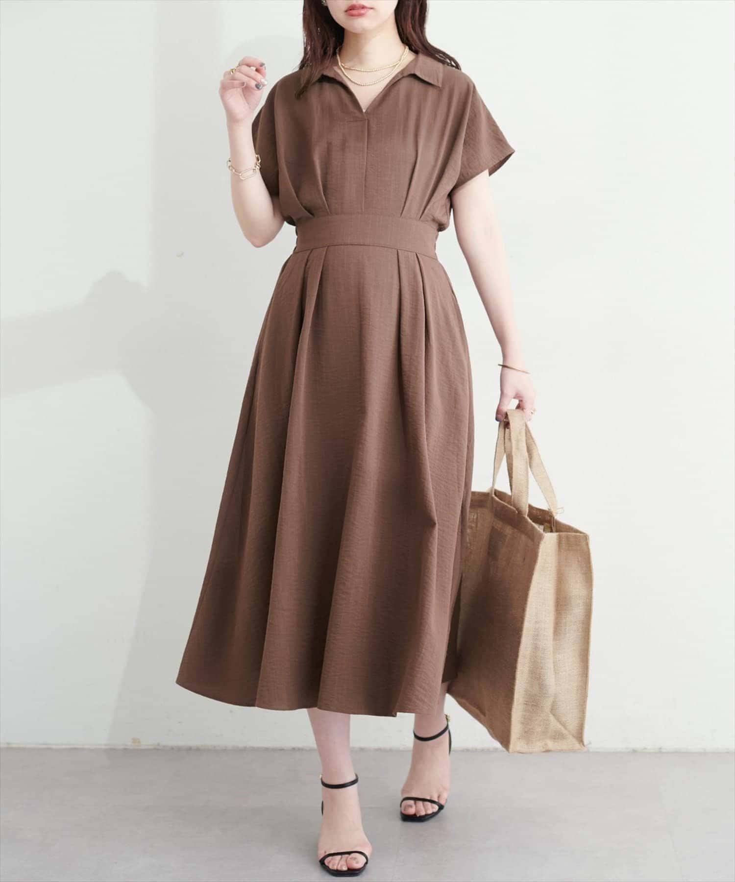 【大人気リバイバル】涼しげスキッパー衿お上品ワンピース