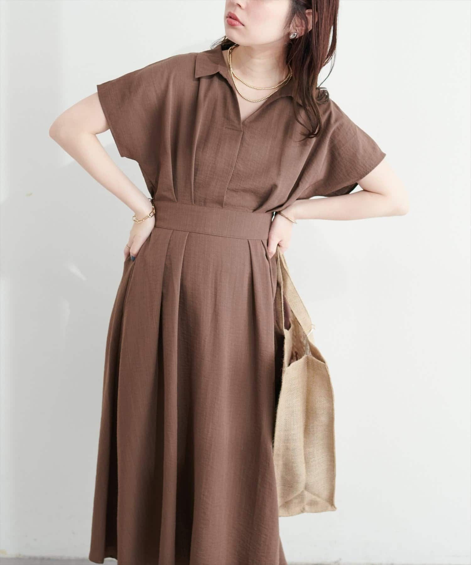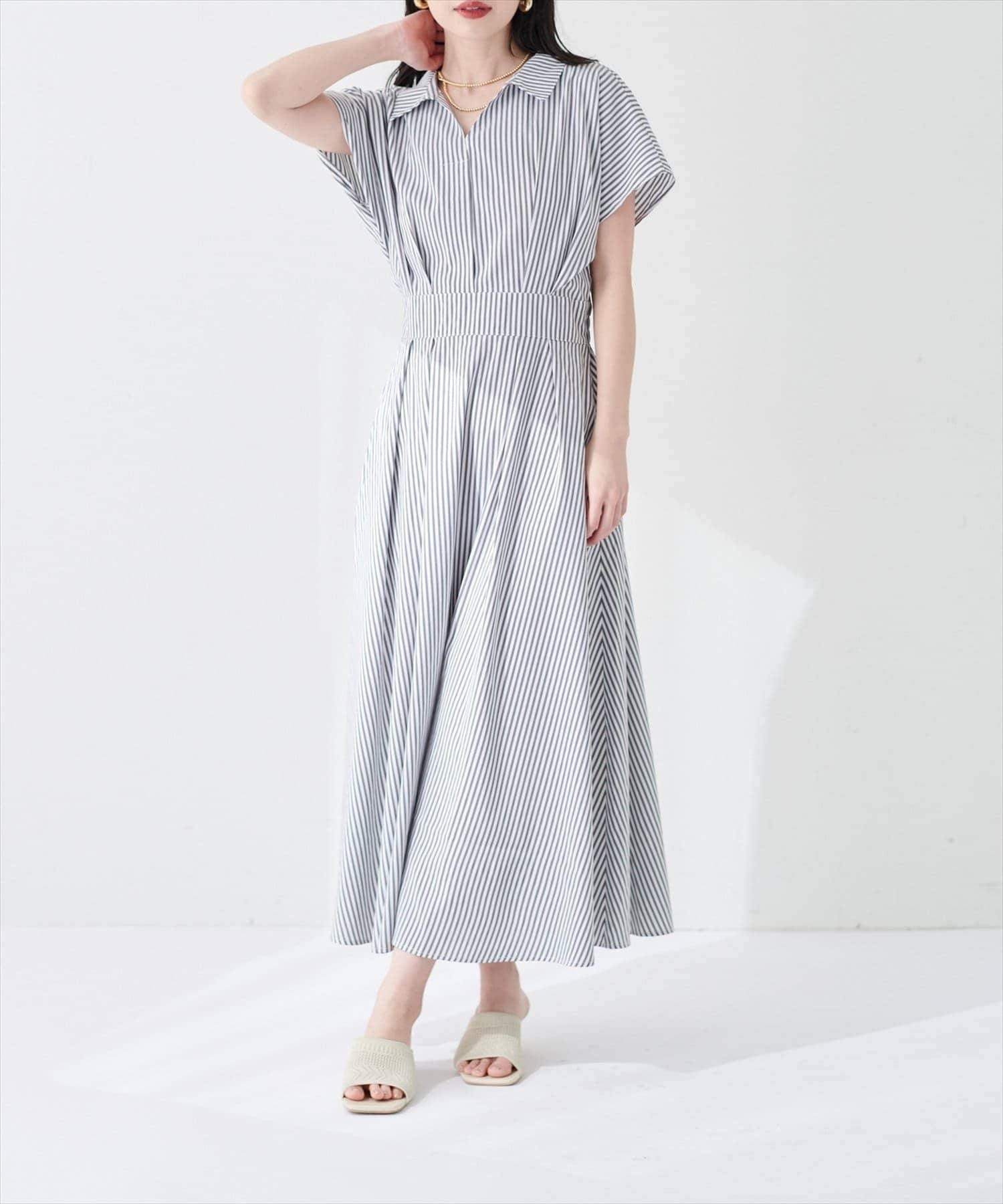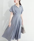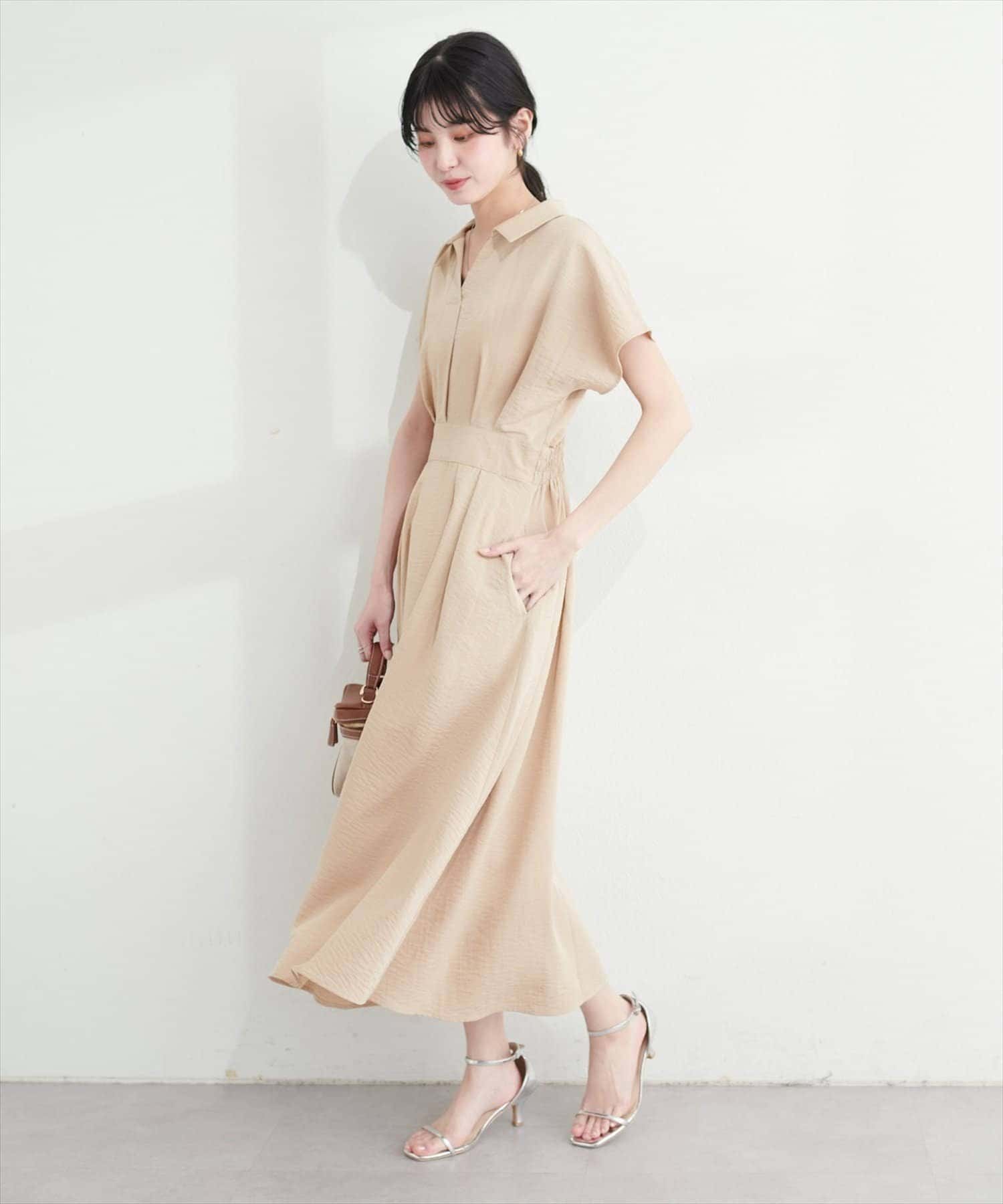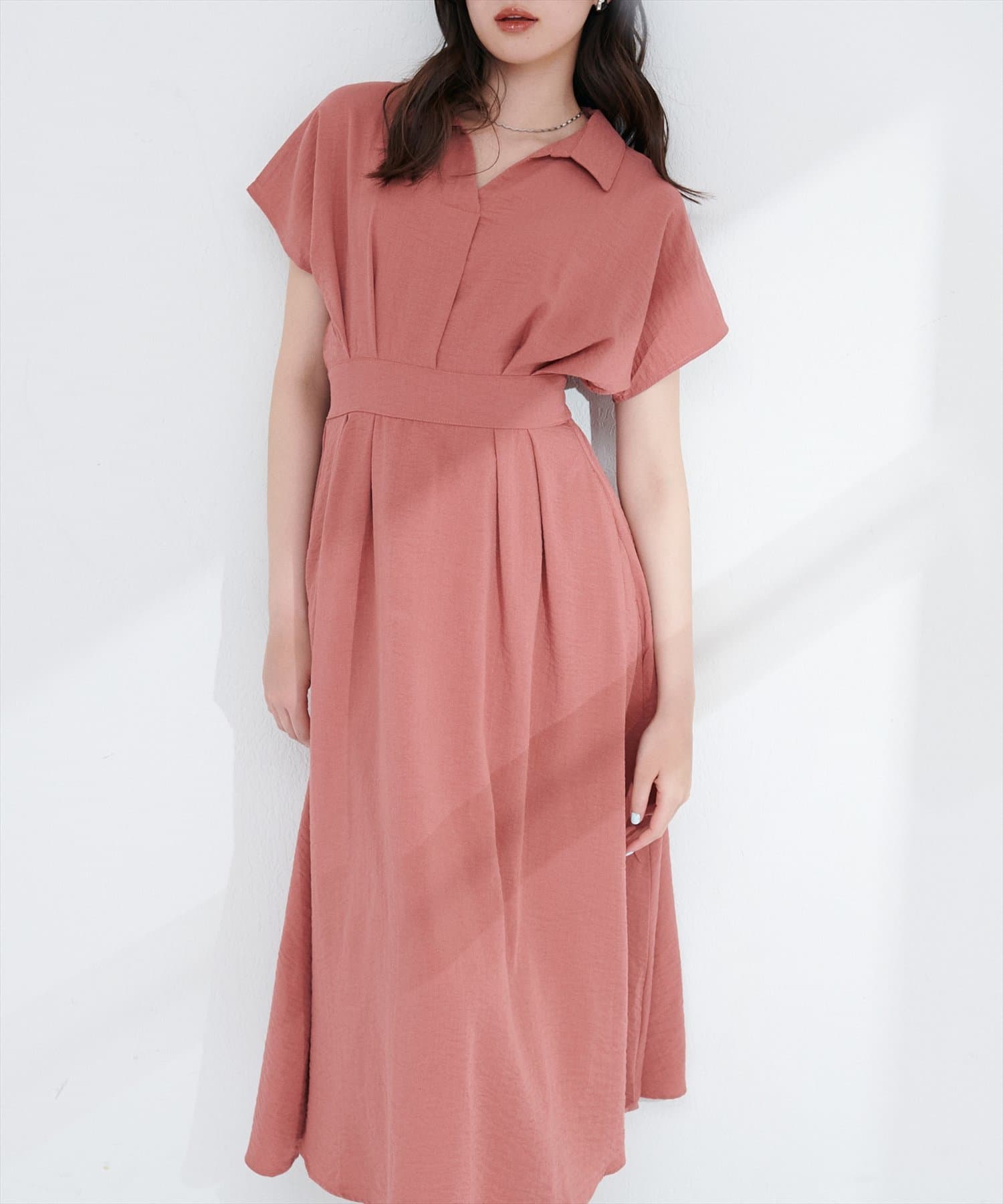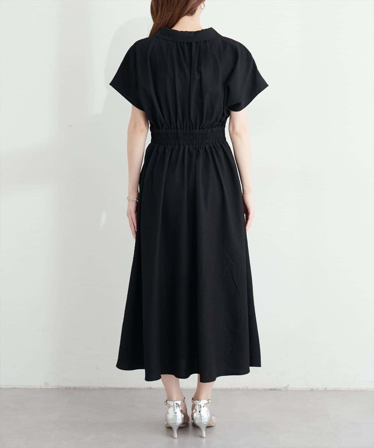 【大人気リバイバル】涼しげスキッパー衿お上品ワンピース