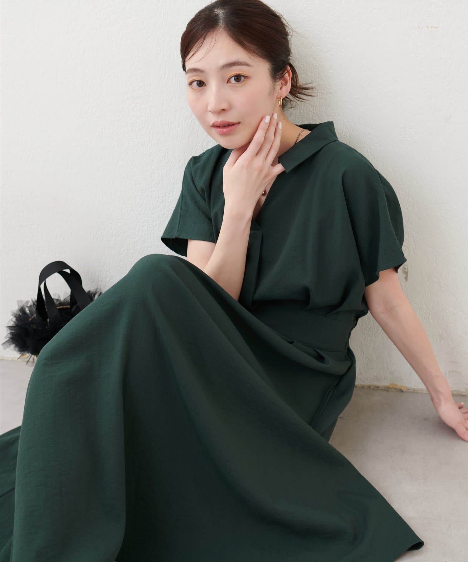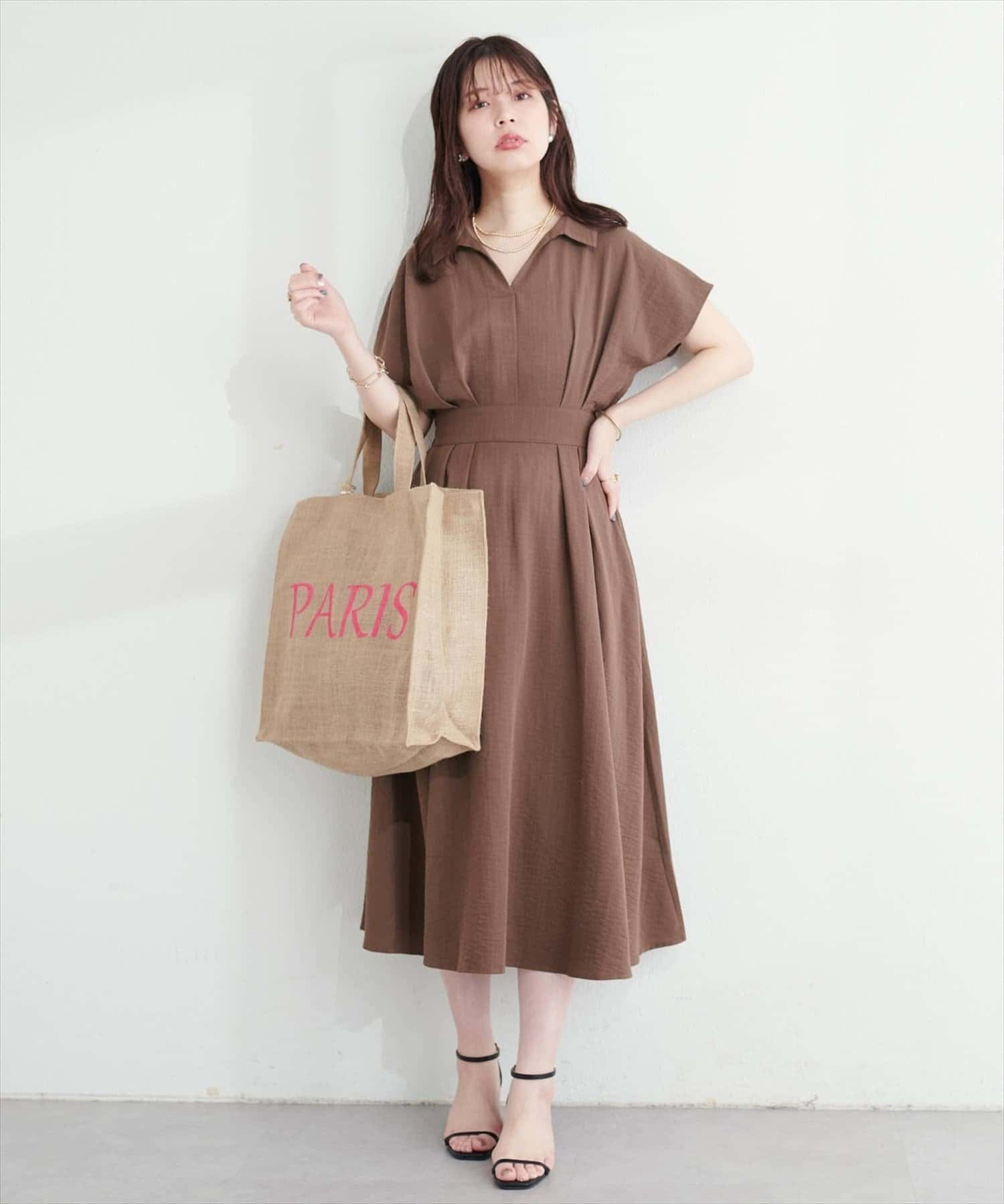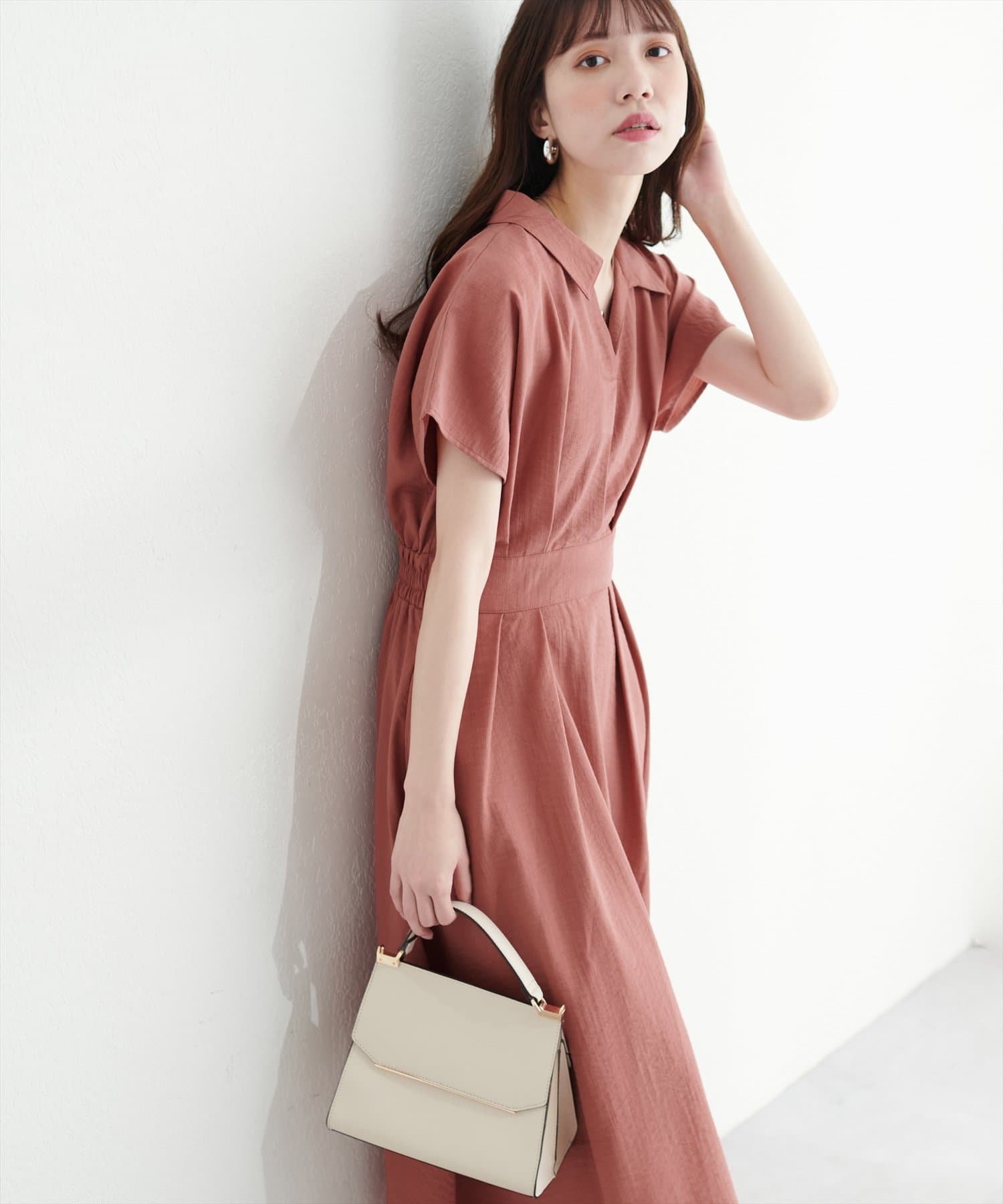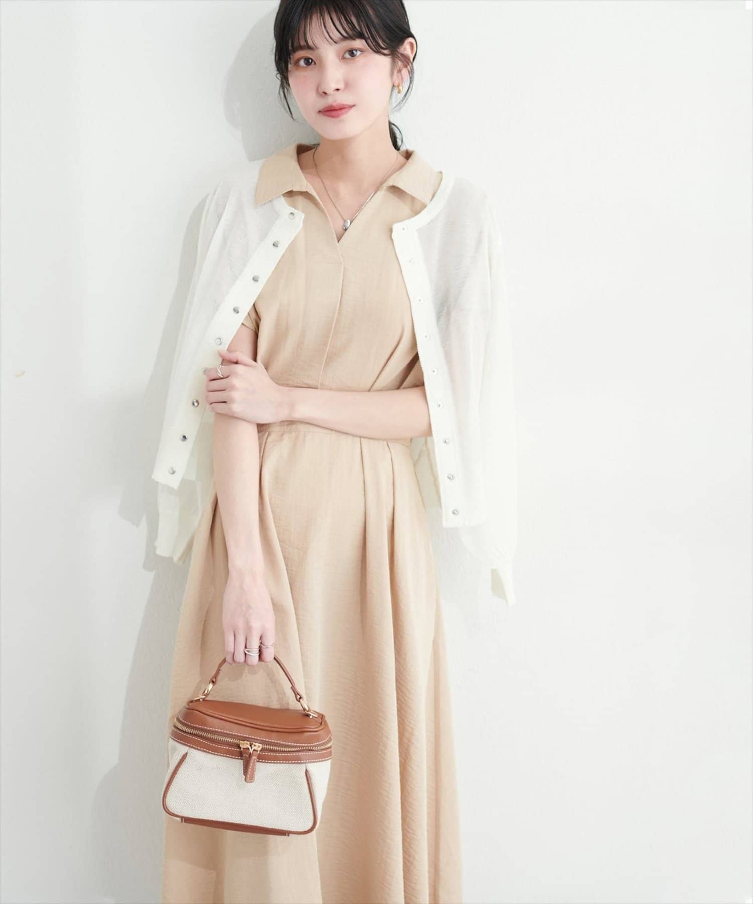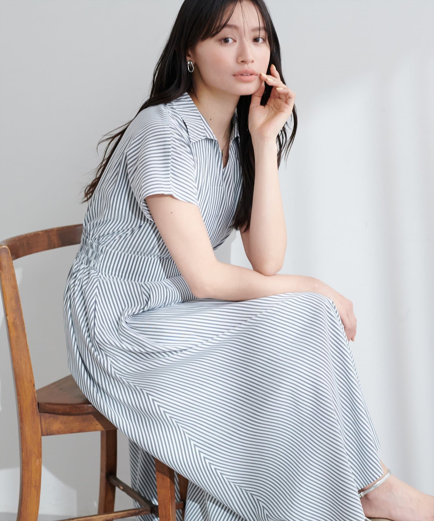 【大人気リバイバル】涼しげスキッパー衿お上品ワンピース