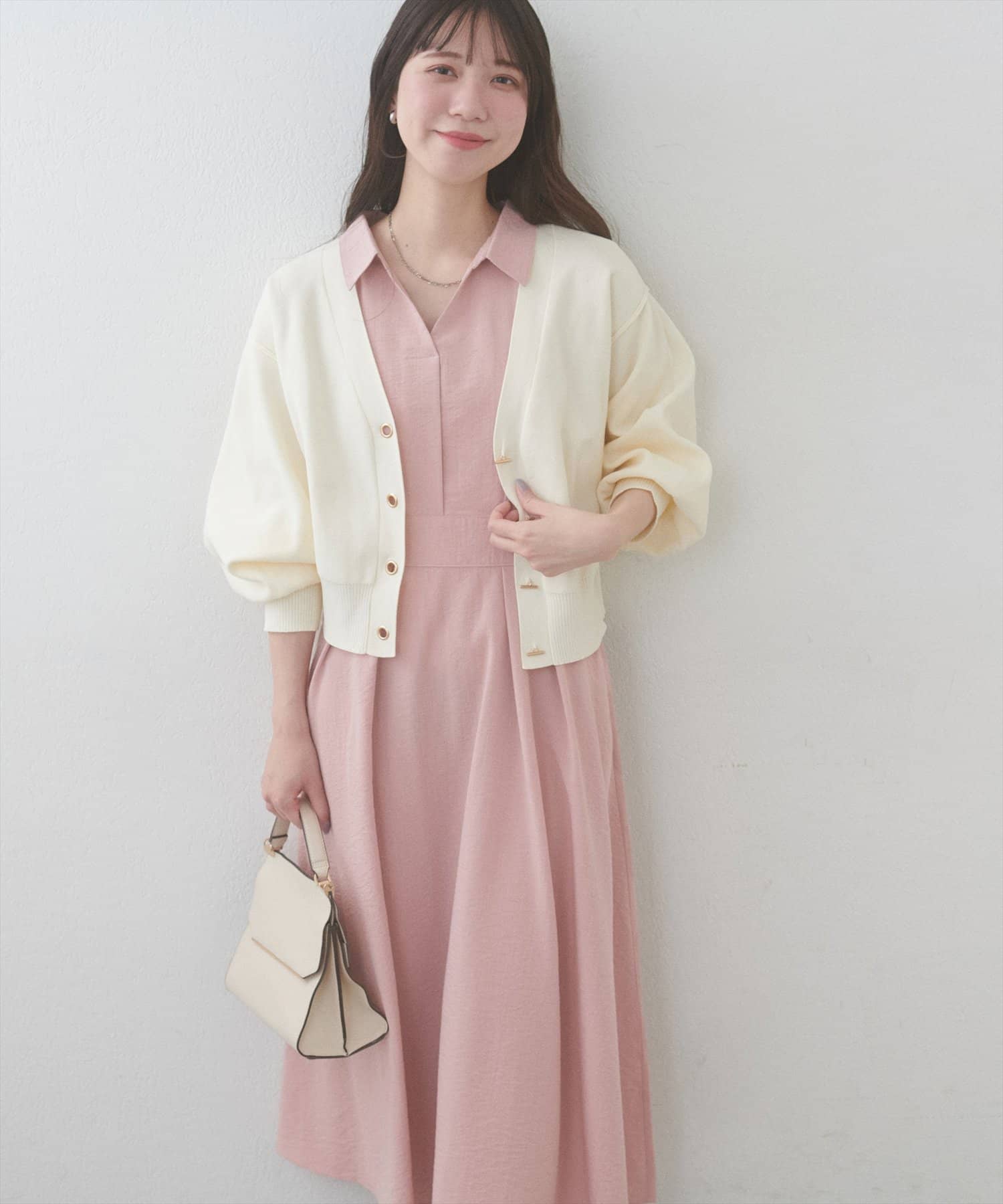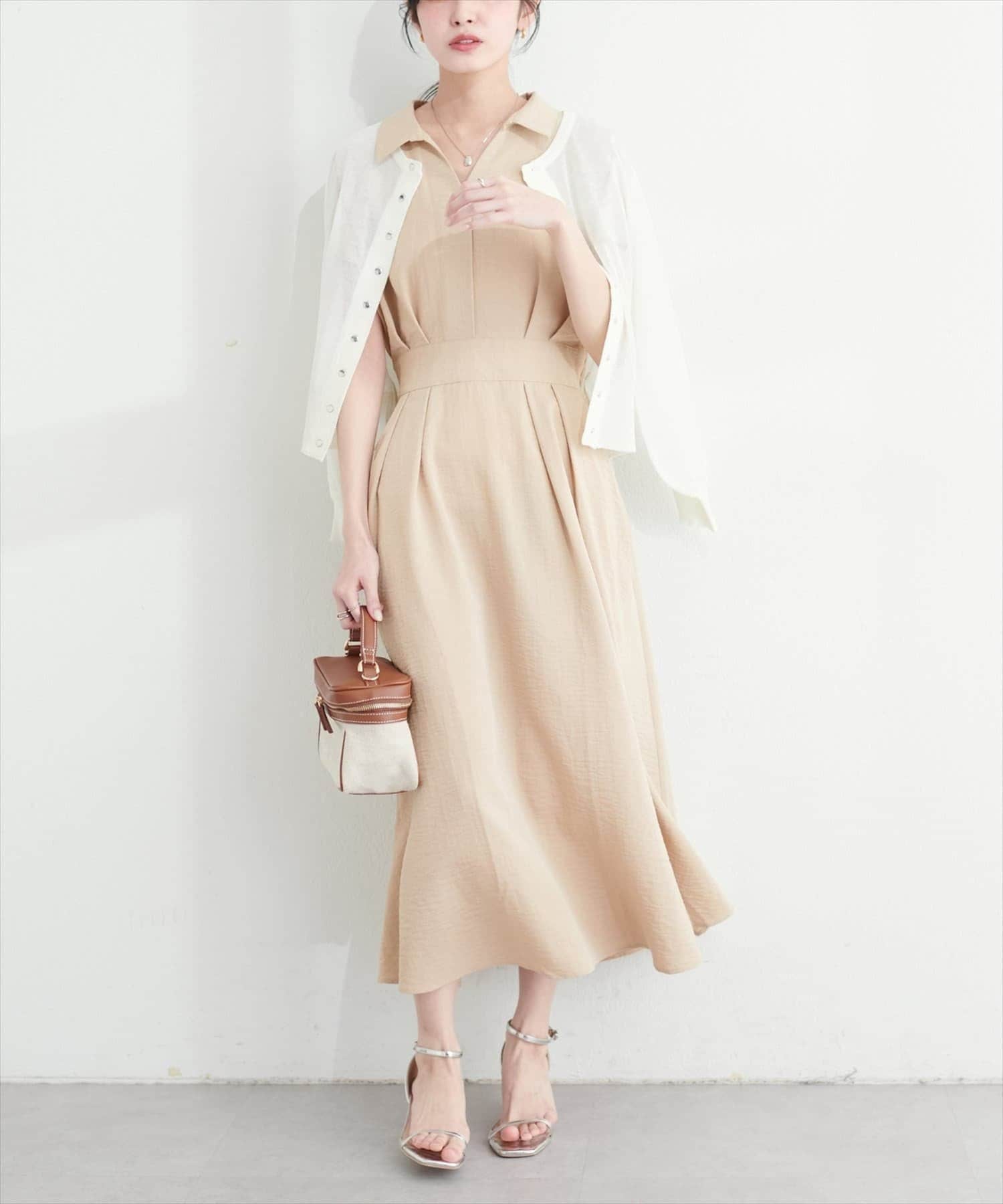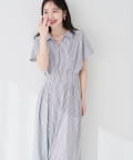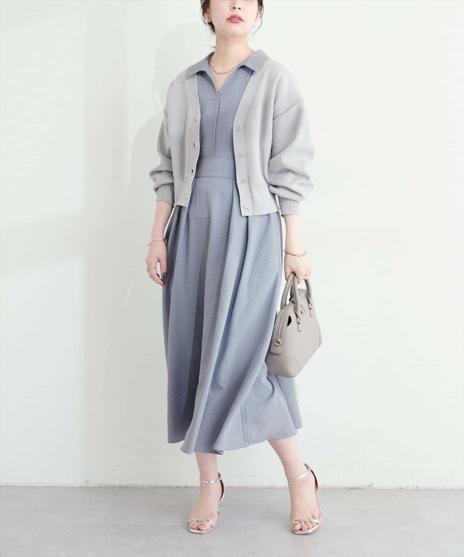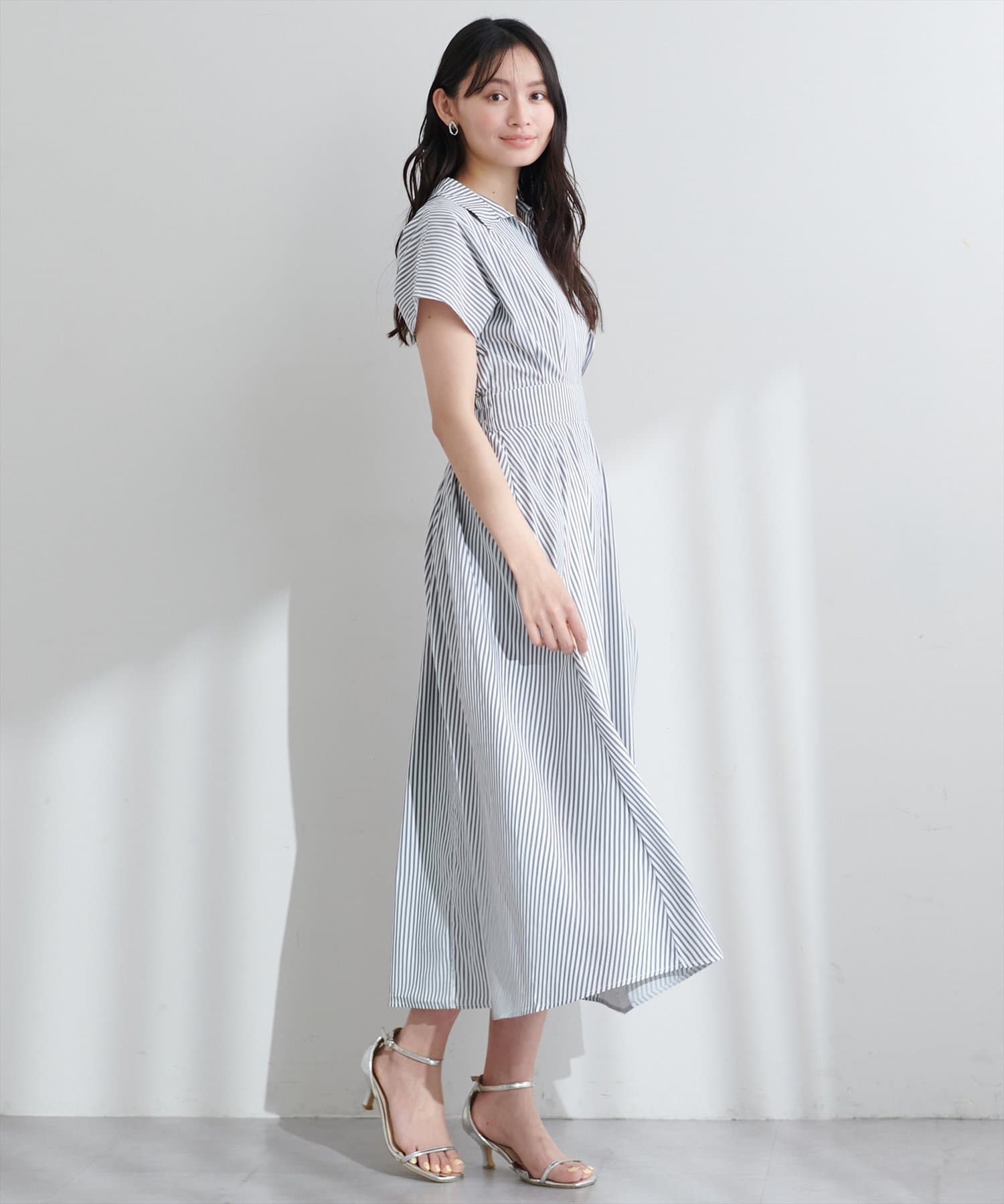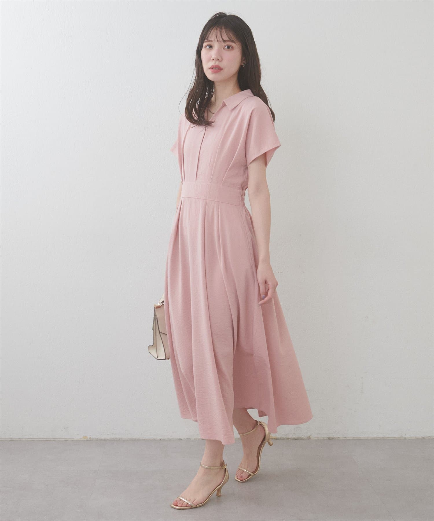 【大人気リバイバル】涼しげスキッパー衿お上品ワンピース
