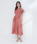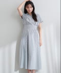 ウエストラインをやや高めにデザインしスタイルアップ効果も期待できる、大人上品なワンピース。
