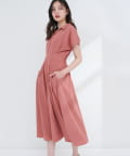 購入場所:パルクローゼット首元がVネックなのと、ウエストのゴムが結構キツめで細見えします!が、ウエストのゴムが少しキツいので着脱しにくいっていう点がマイナス点です。