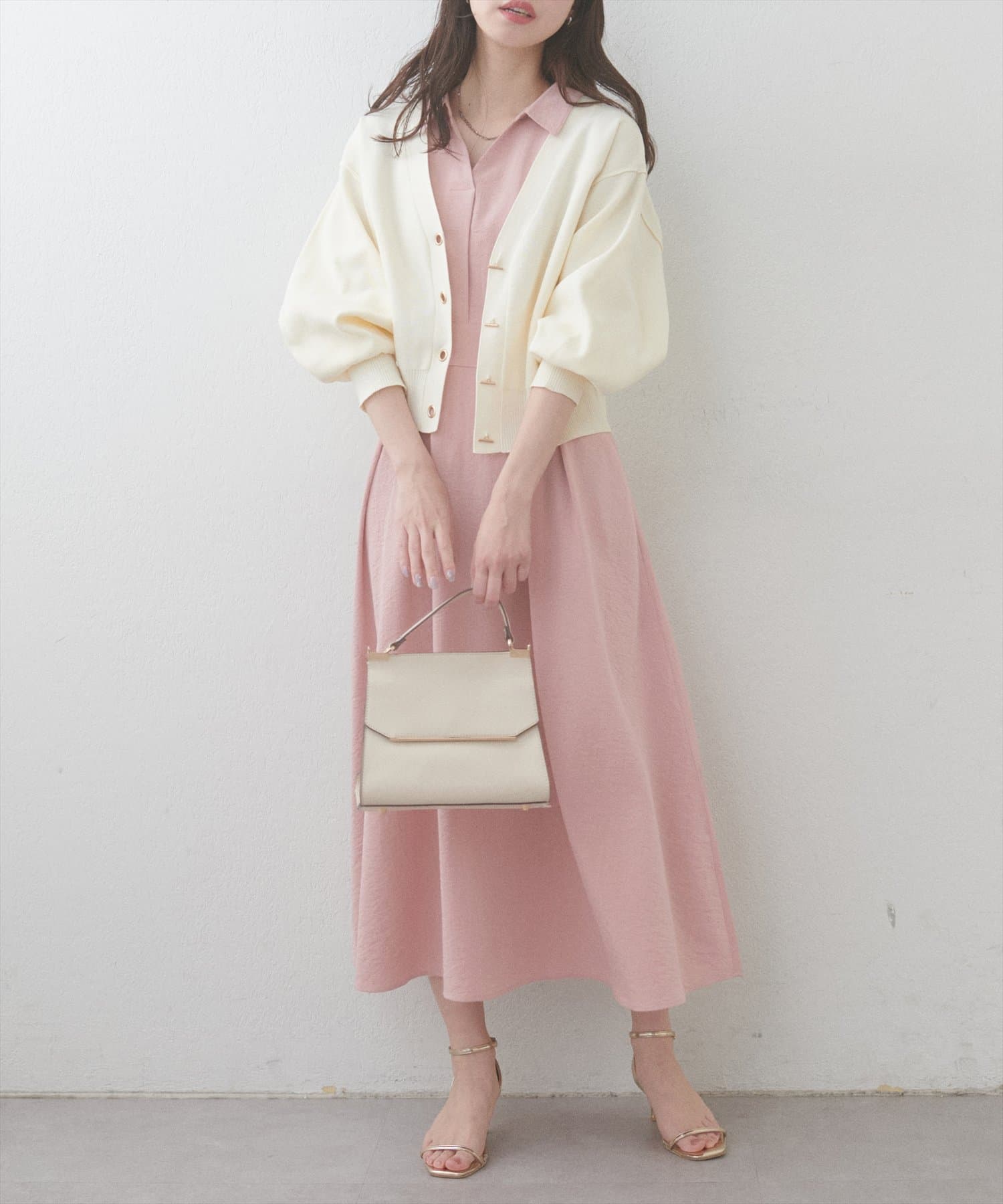 お好みで、シアー素材のカーディガンを羽織ったり、肩がけでポイント見せして頂くと、