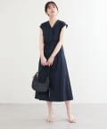 程よくハリのある生地は、体のラインを拾いすぎず、体型カバーにも効果的。