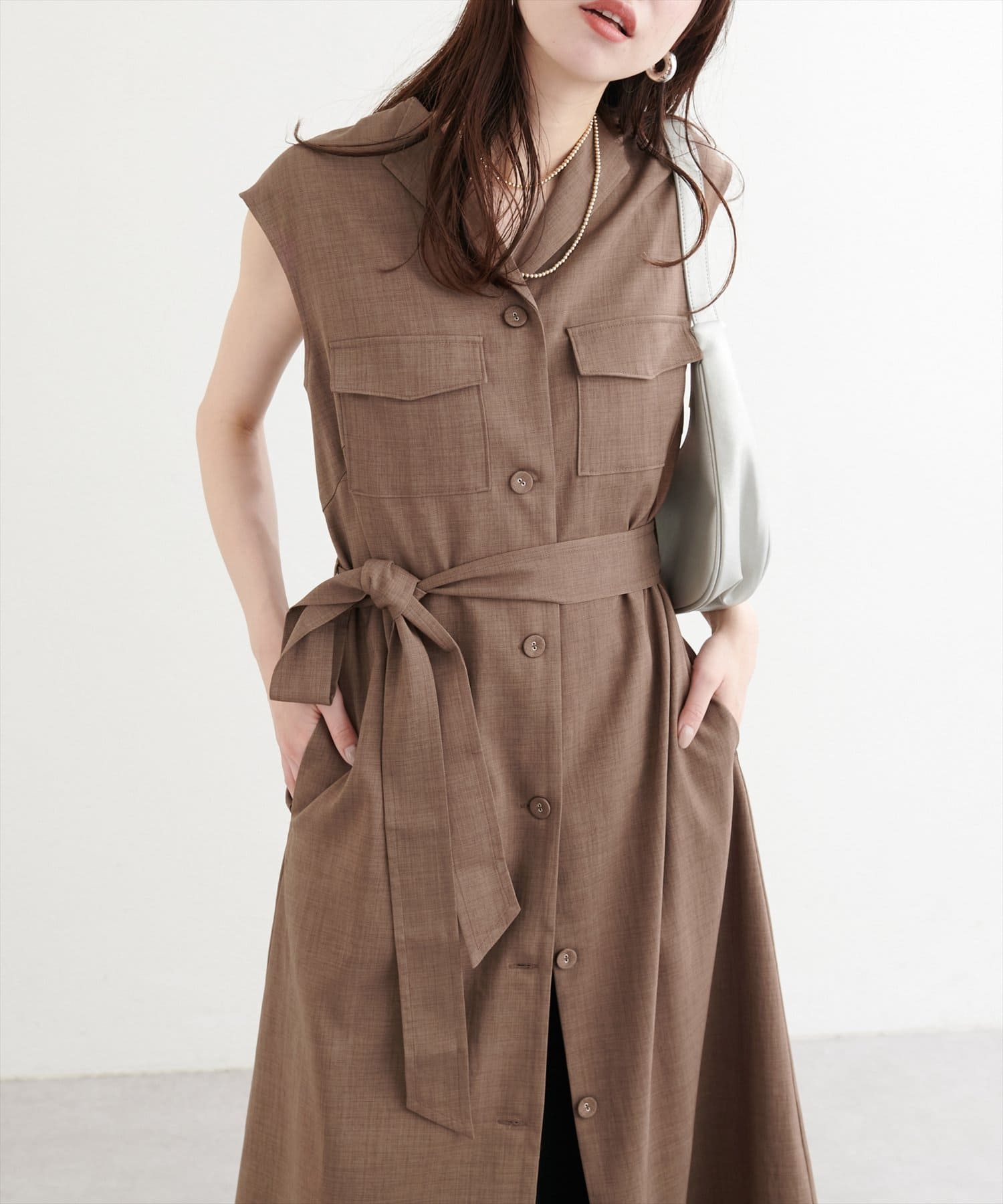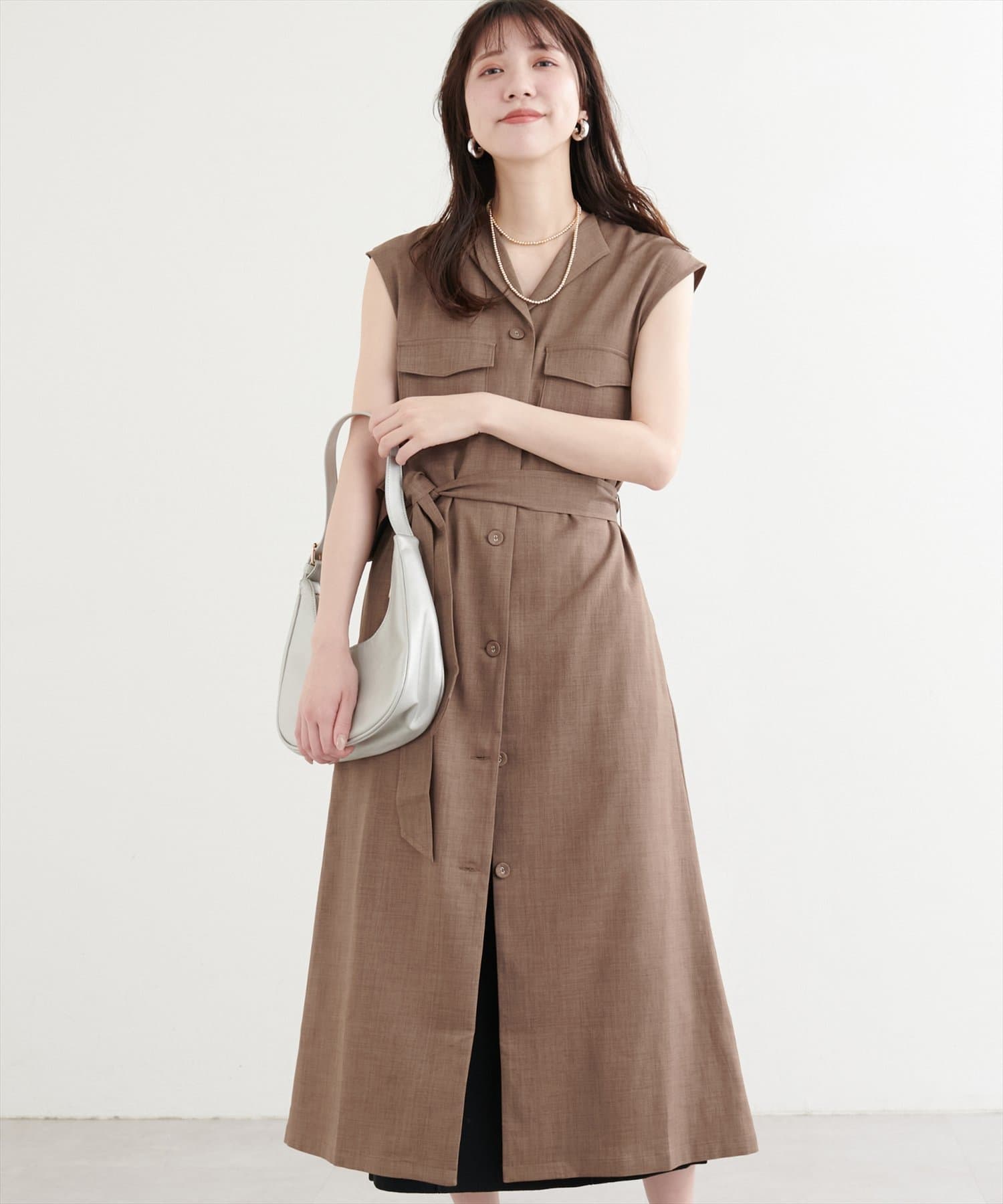 一枚でサマになる、着回し力抜群のノースリーブシャツワンピース。