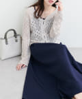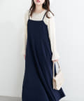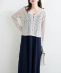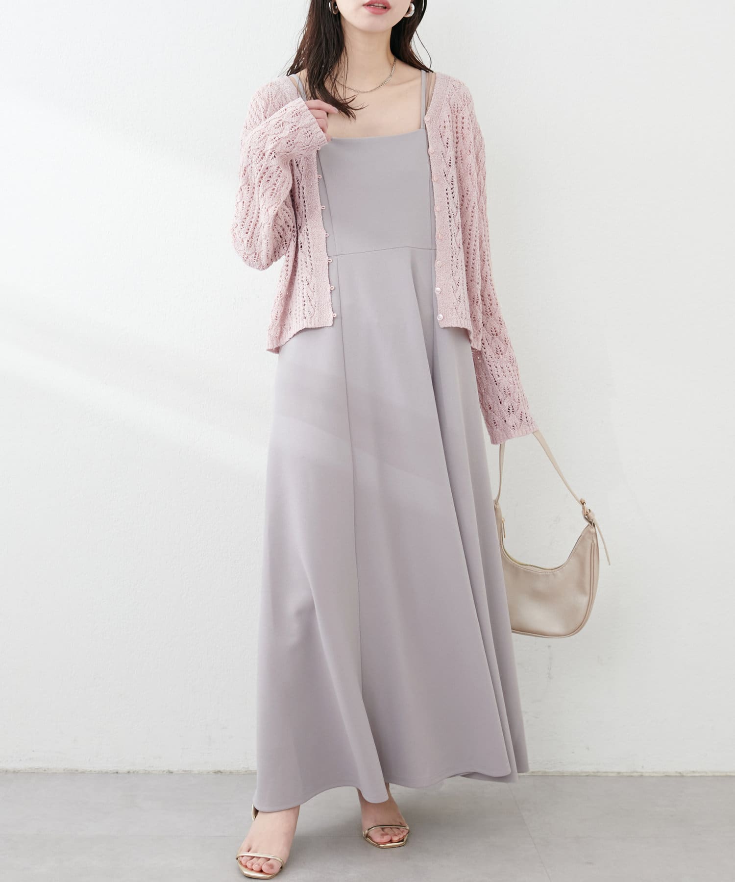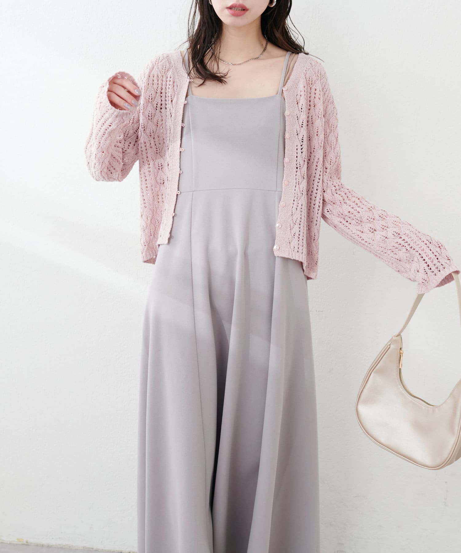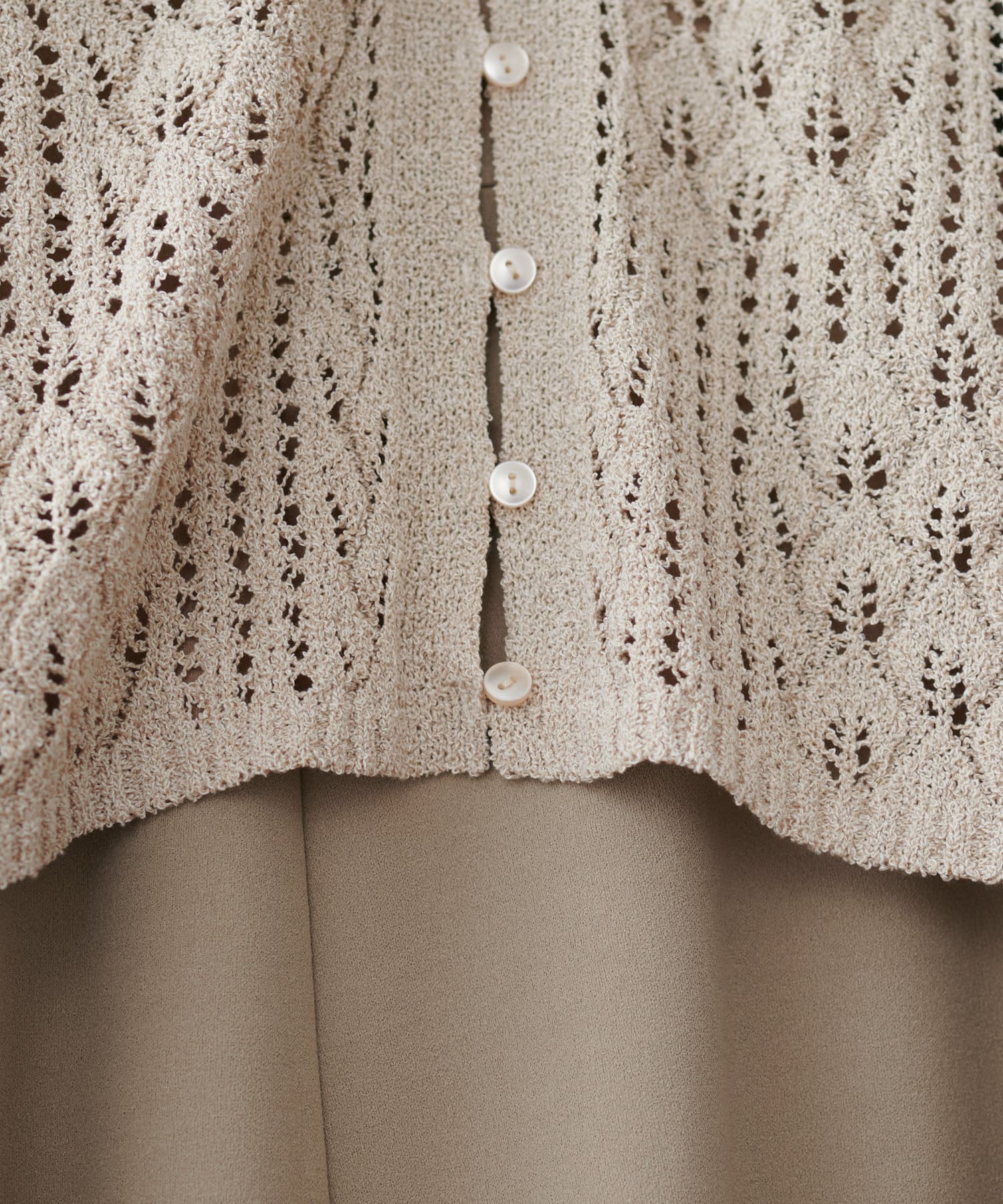 透かし編みニットカーディガンとキャミワンピースがセットになったアイテム。