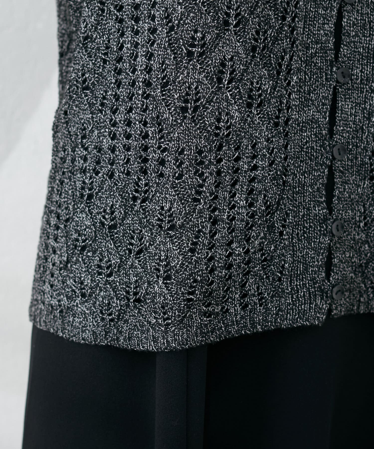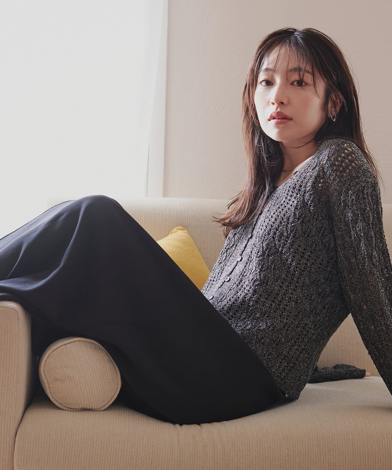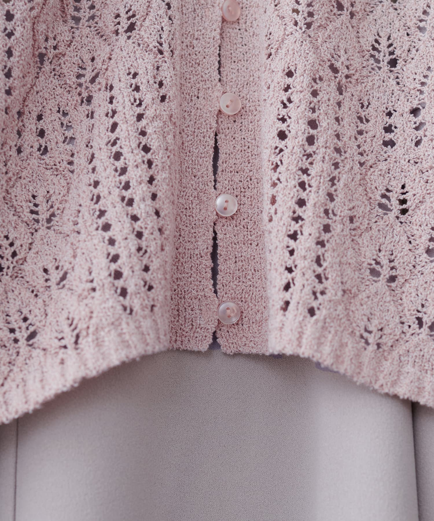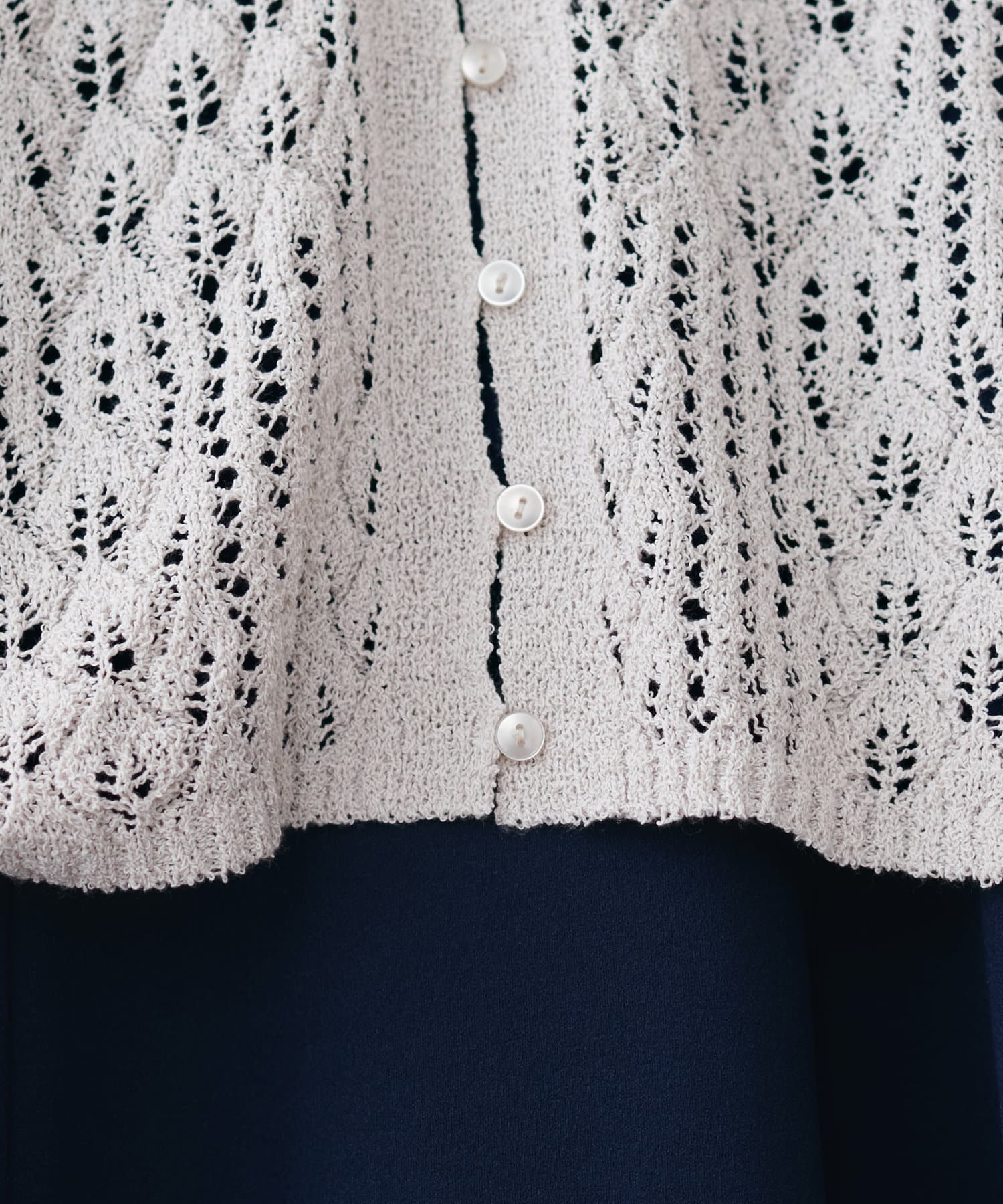 カーディガンは透かし編みで重たくならず抜け感のあるデザイン。