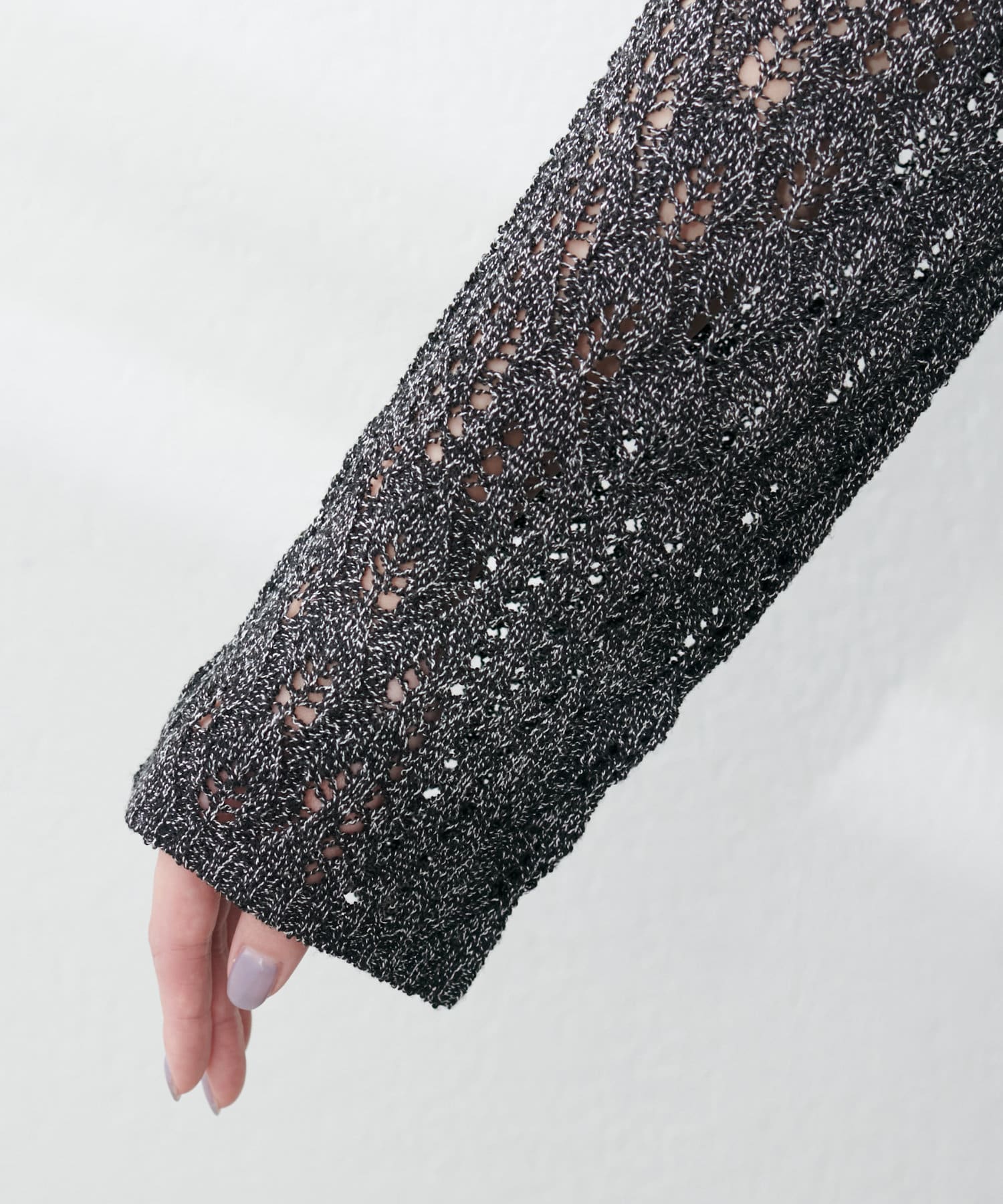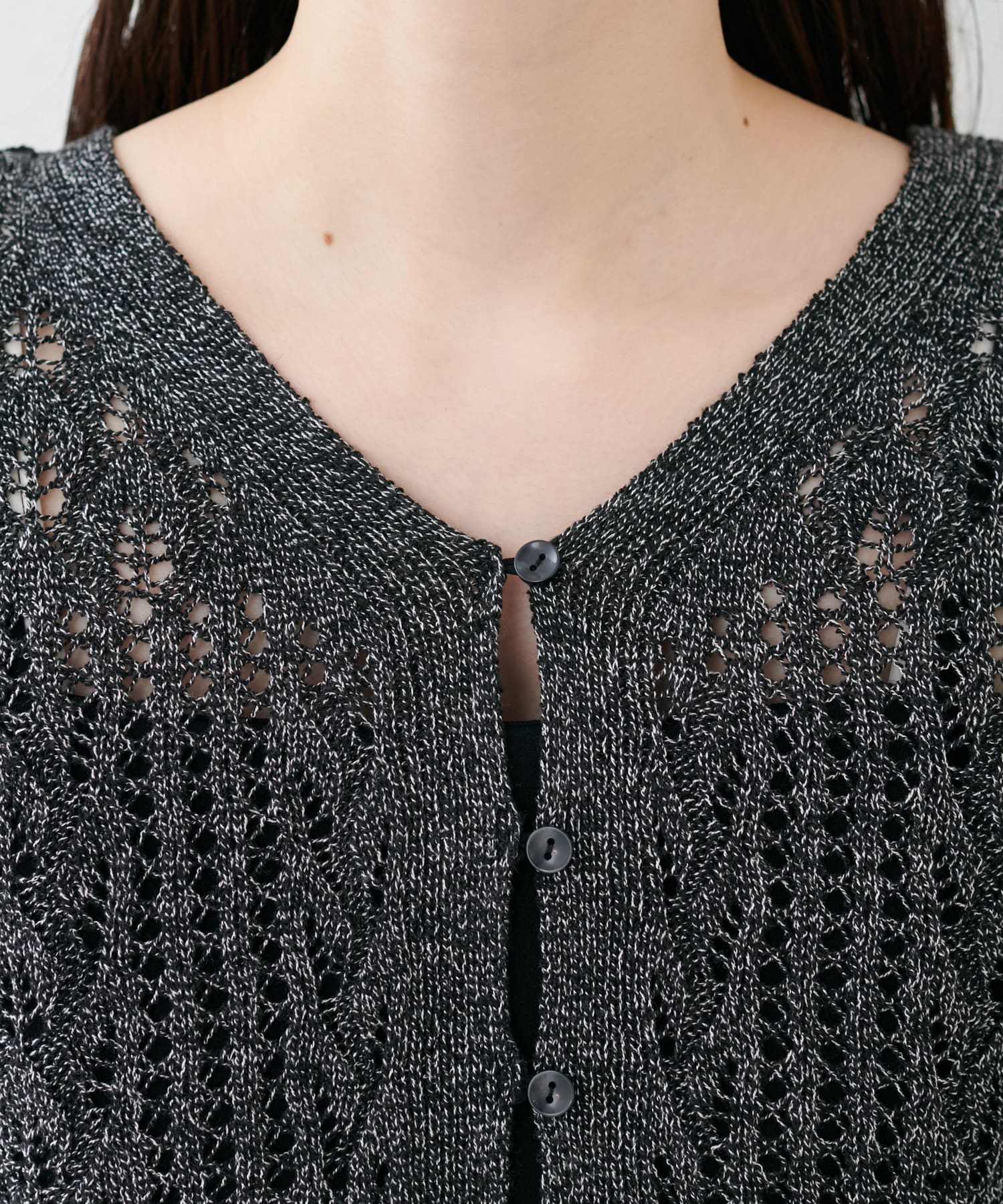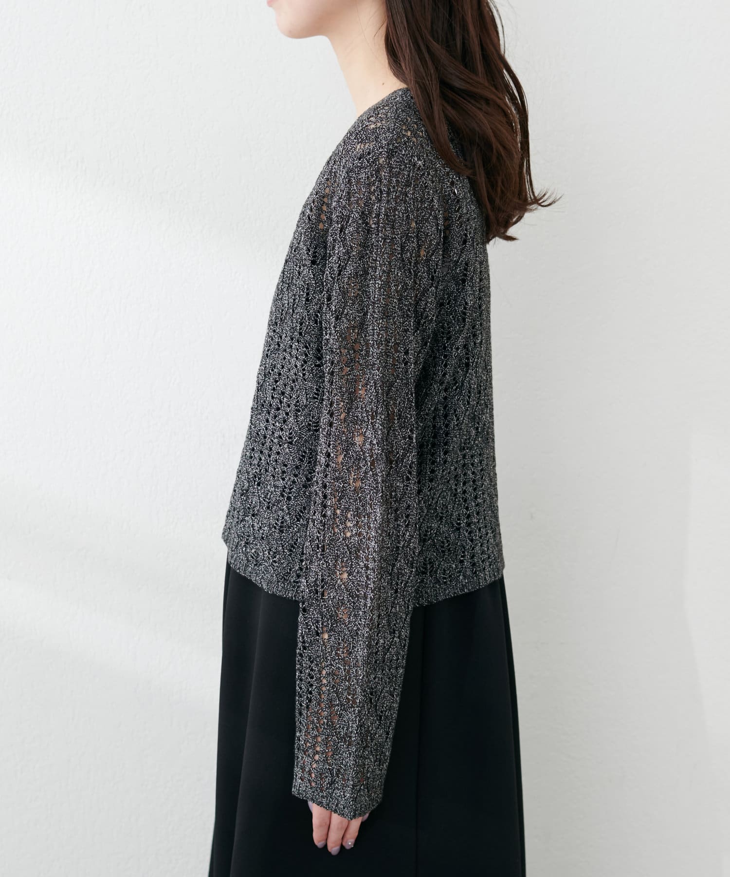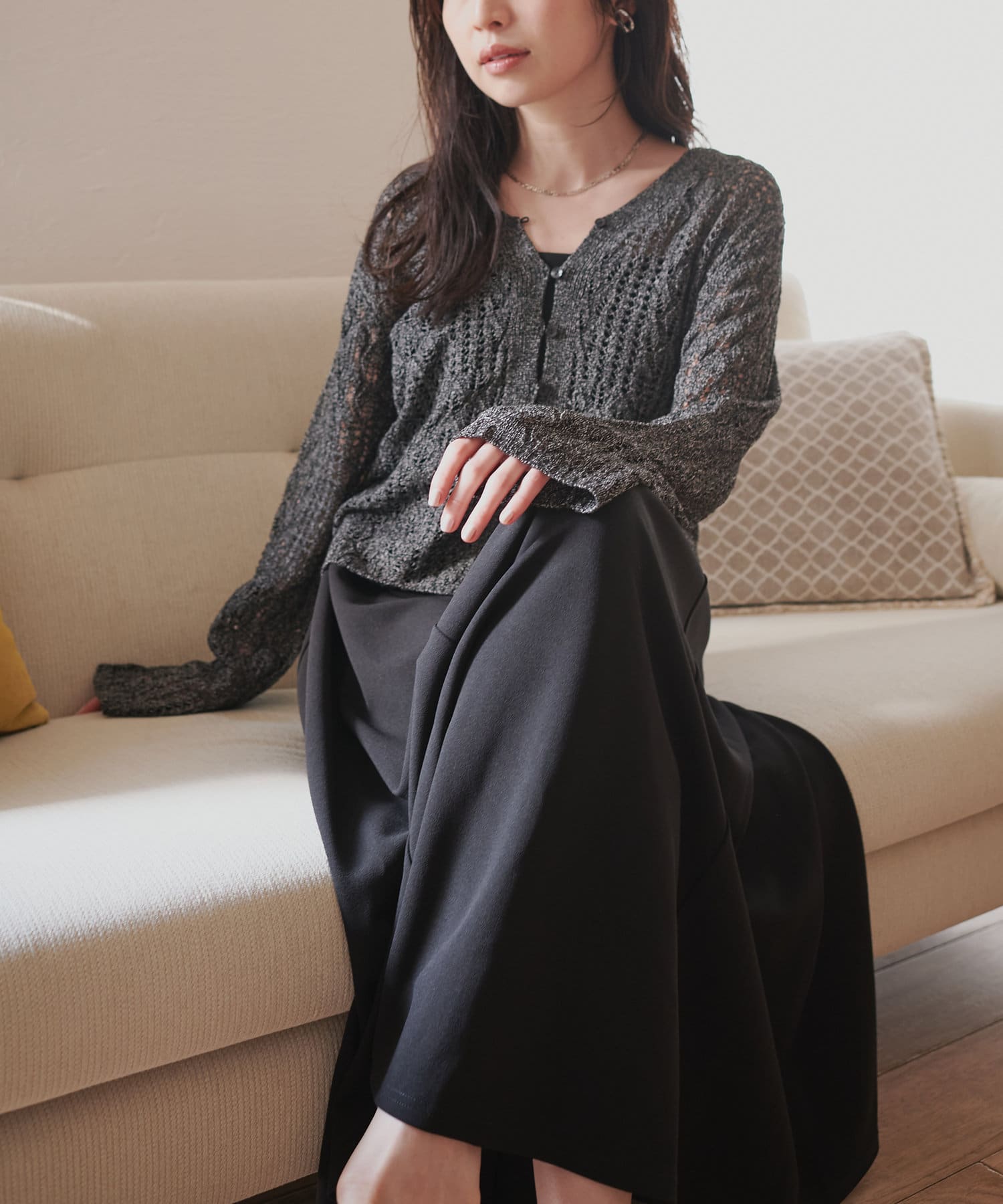カーディガンは透かし編みで重たくならず抜け感のあるデザイン。