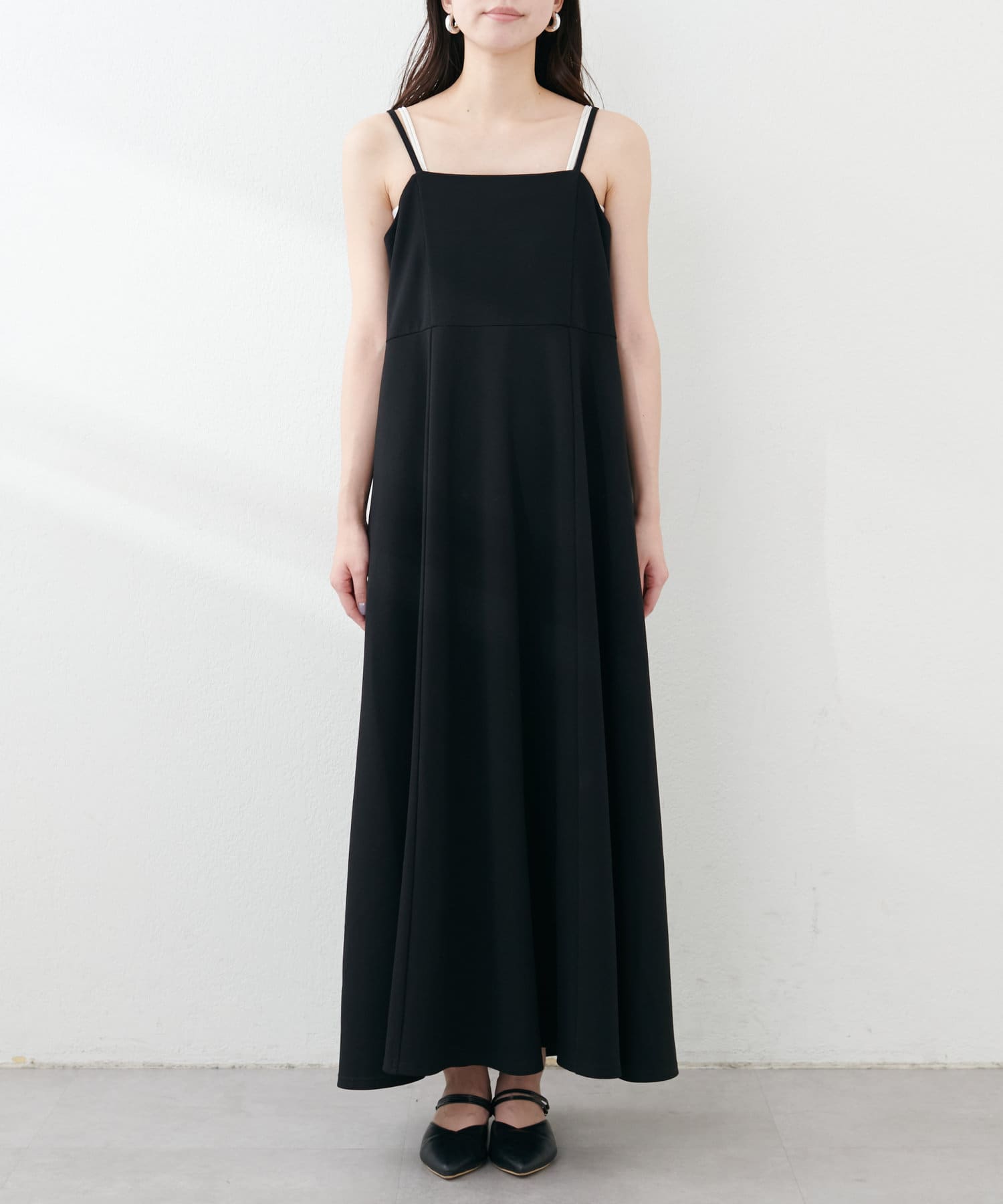 キャミワンピースはカットジョーゼットのような肌なじみのいい素材感で