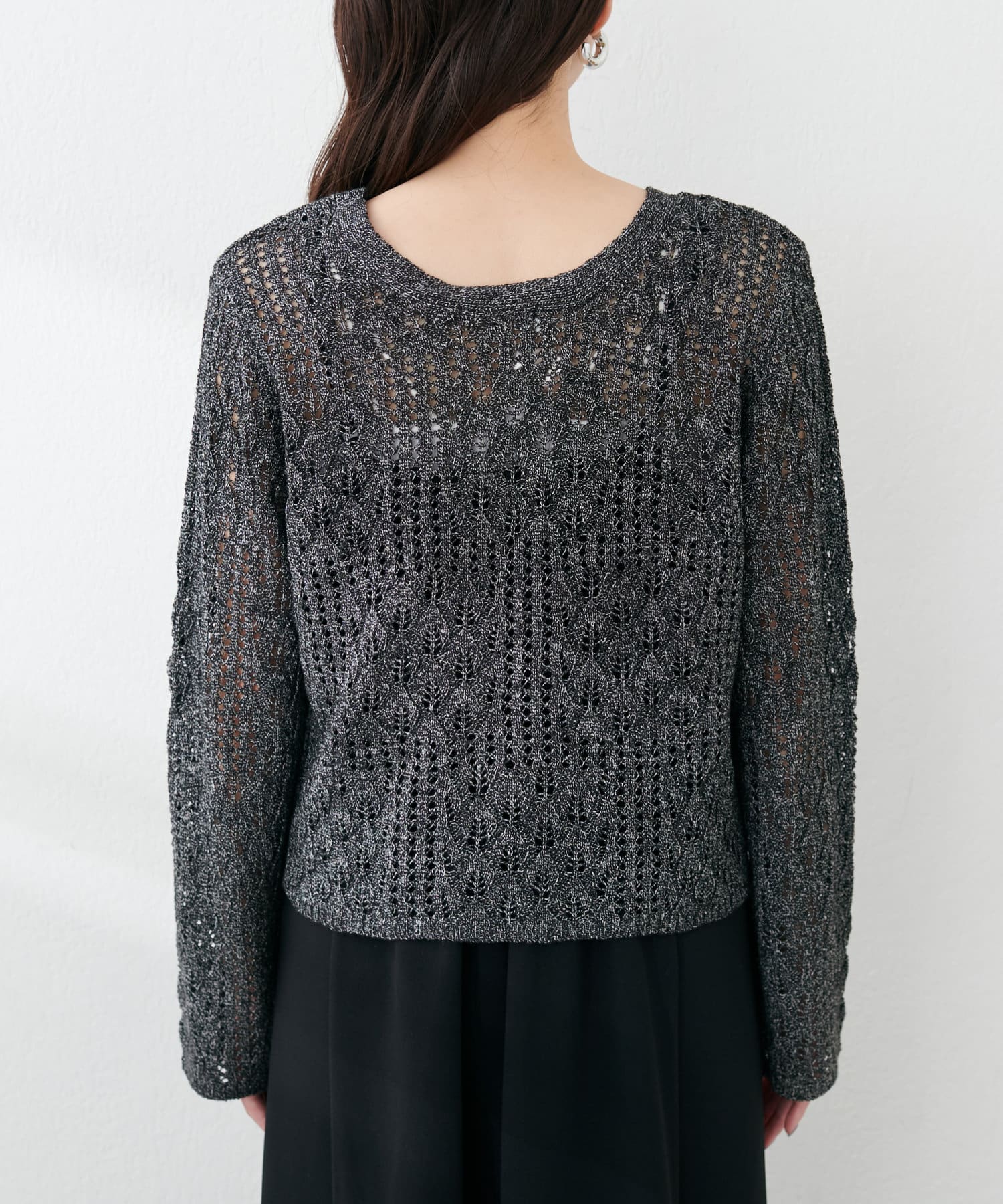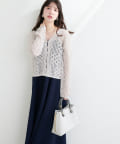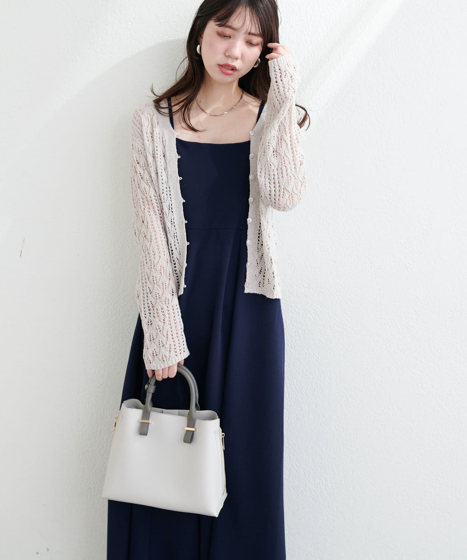 カーディガンは透かし編みで重たくならず抜け感のあるデザイン。