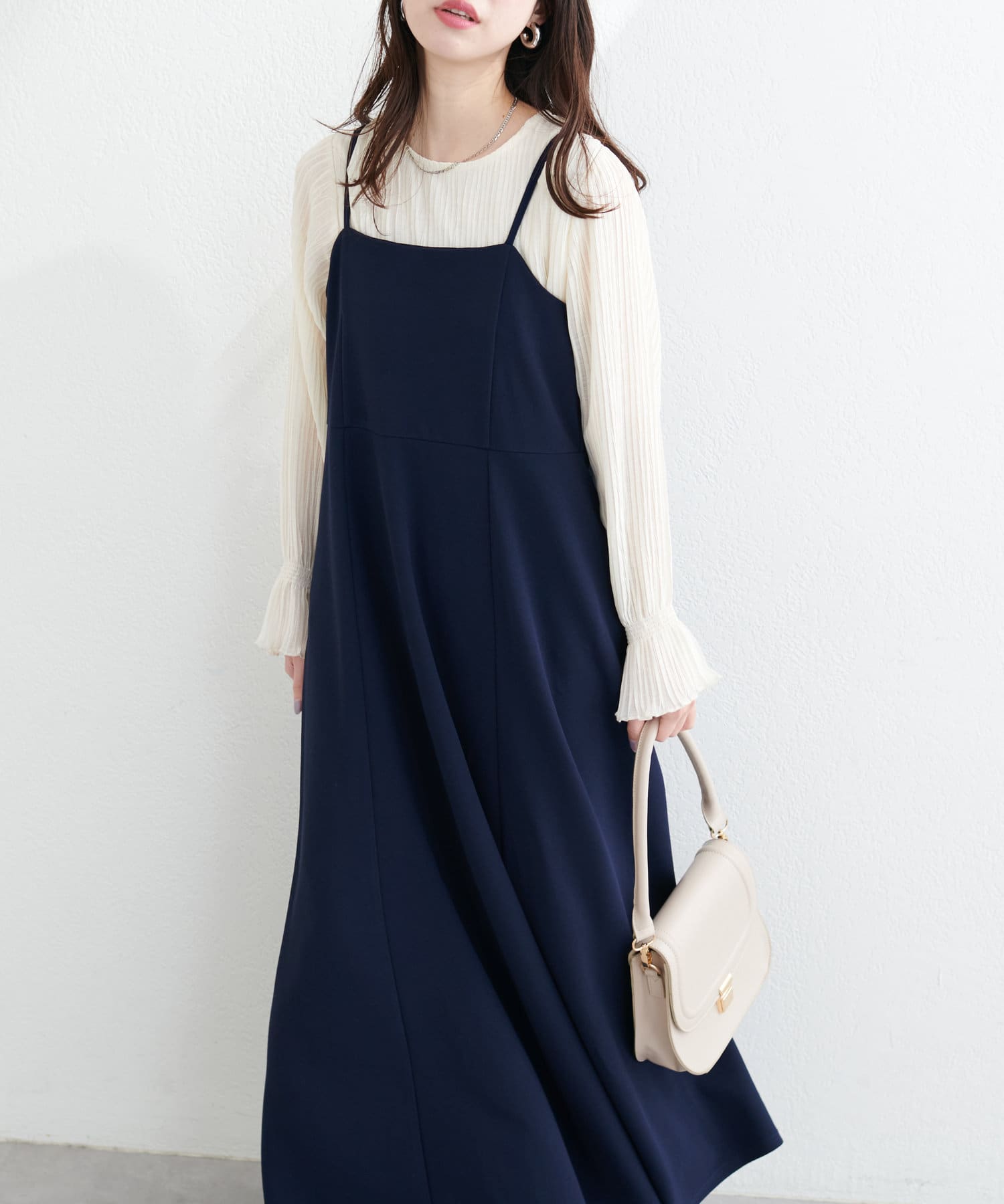 キャミワンピースは、Tシャツやシアーインナーと合わせたり、
