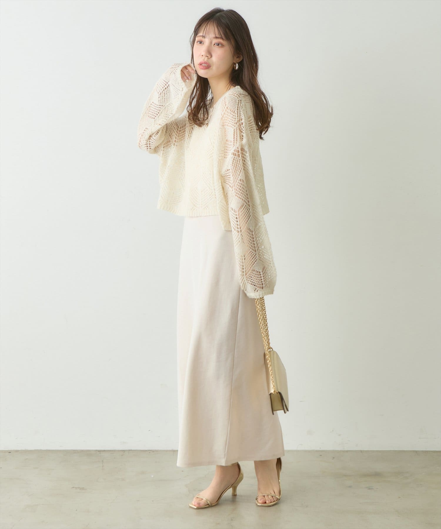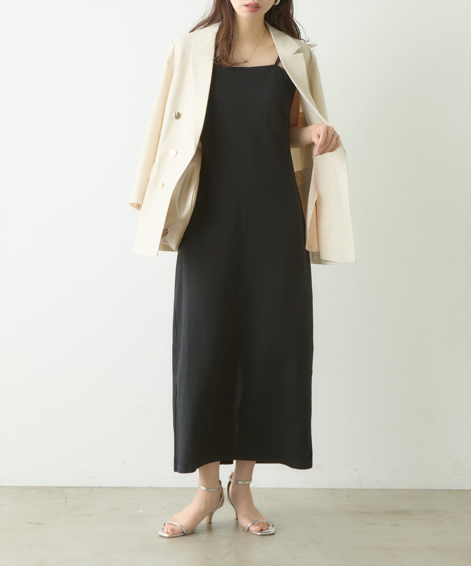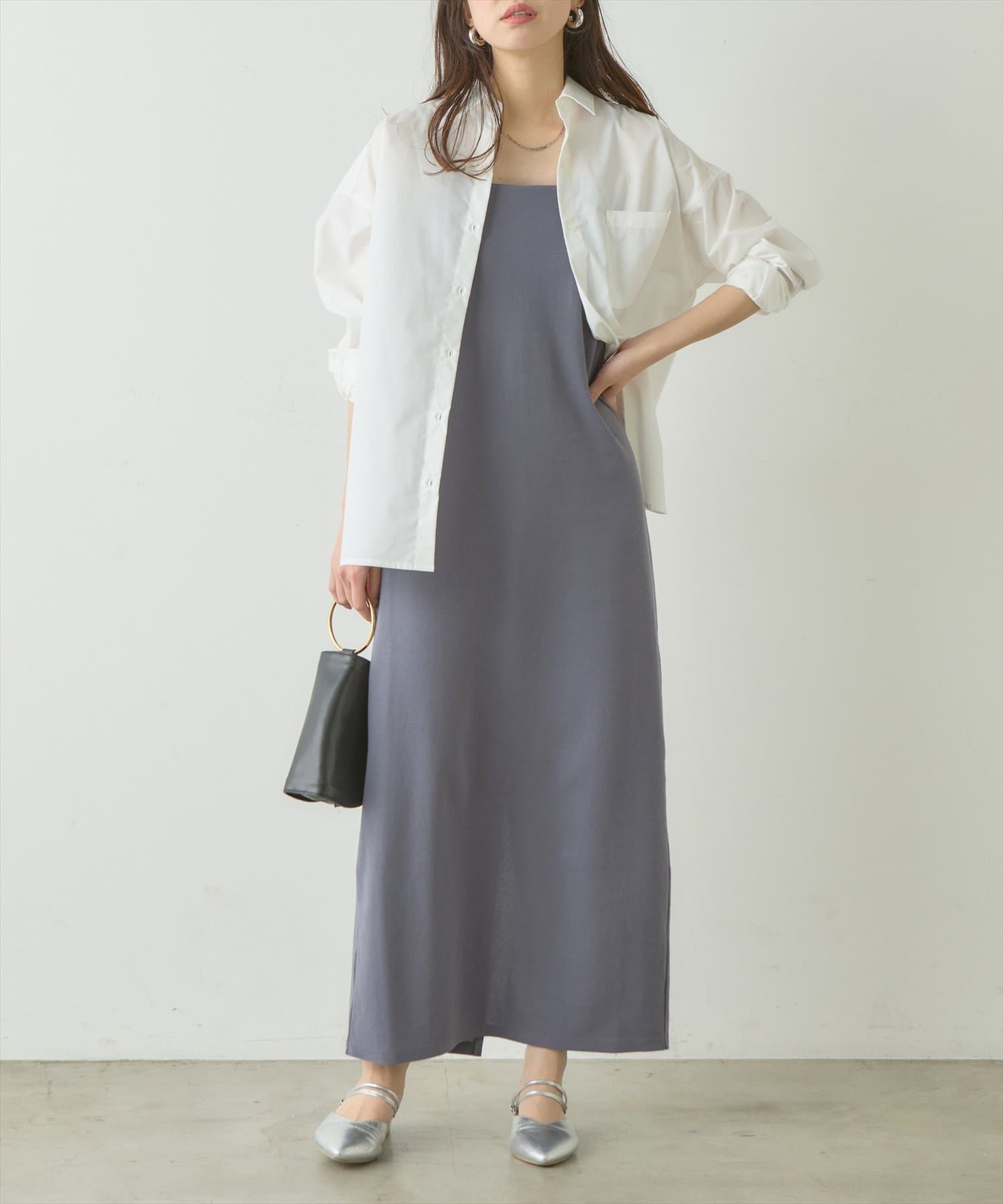 お手持ちのカーディガンやシャツワンピースとレイヤードしても◎