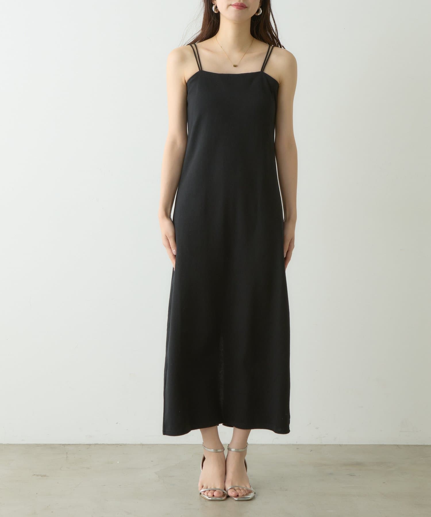 シンプルで使い勝手の良いカップ付きキャミワンピース。