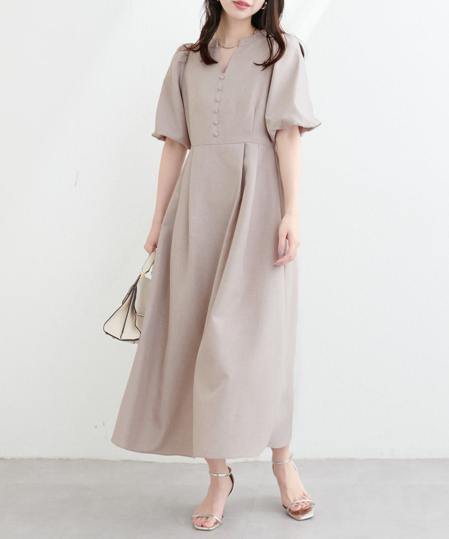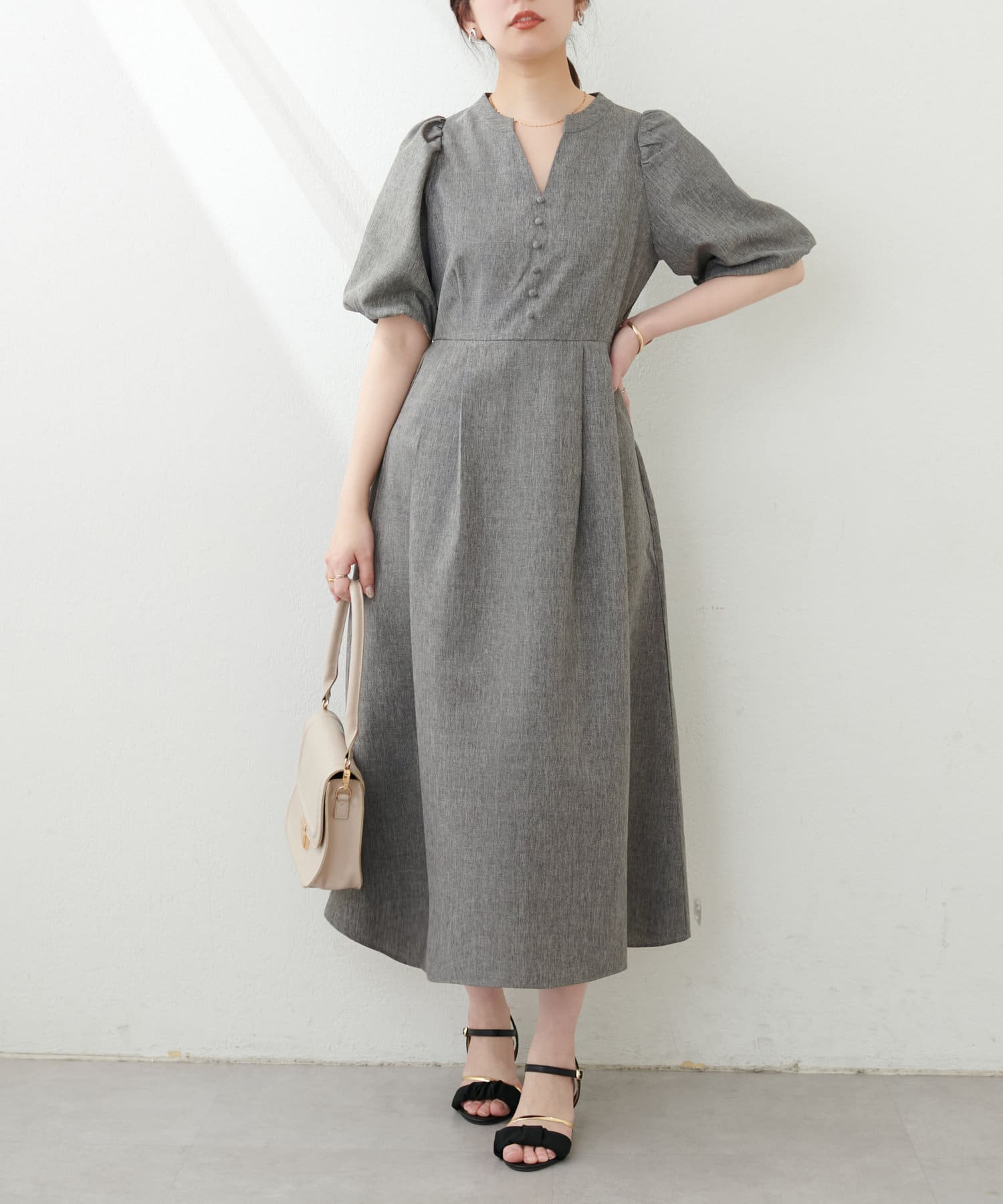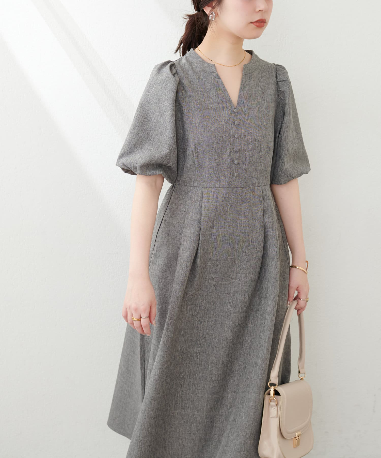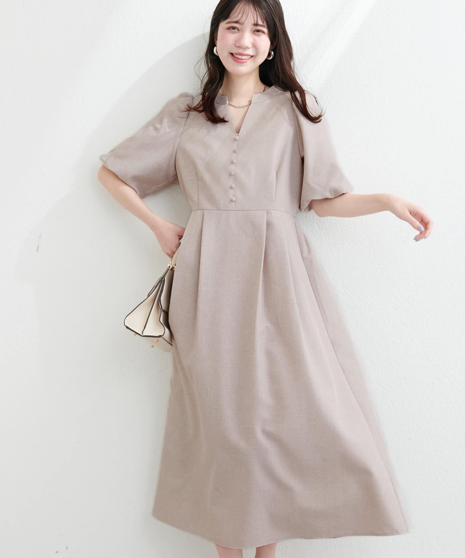 【WEB限定】キーネックパフスリーブワンピース