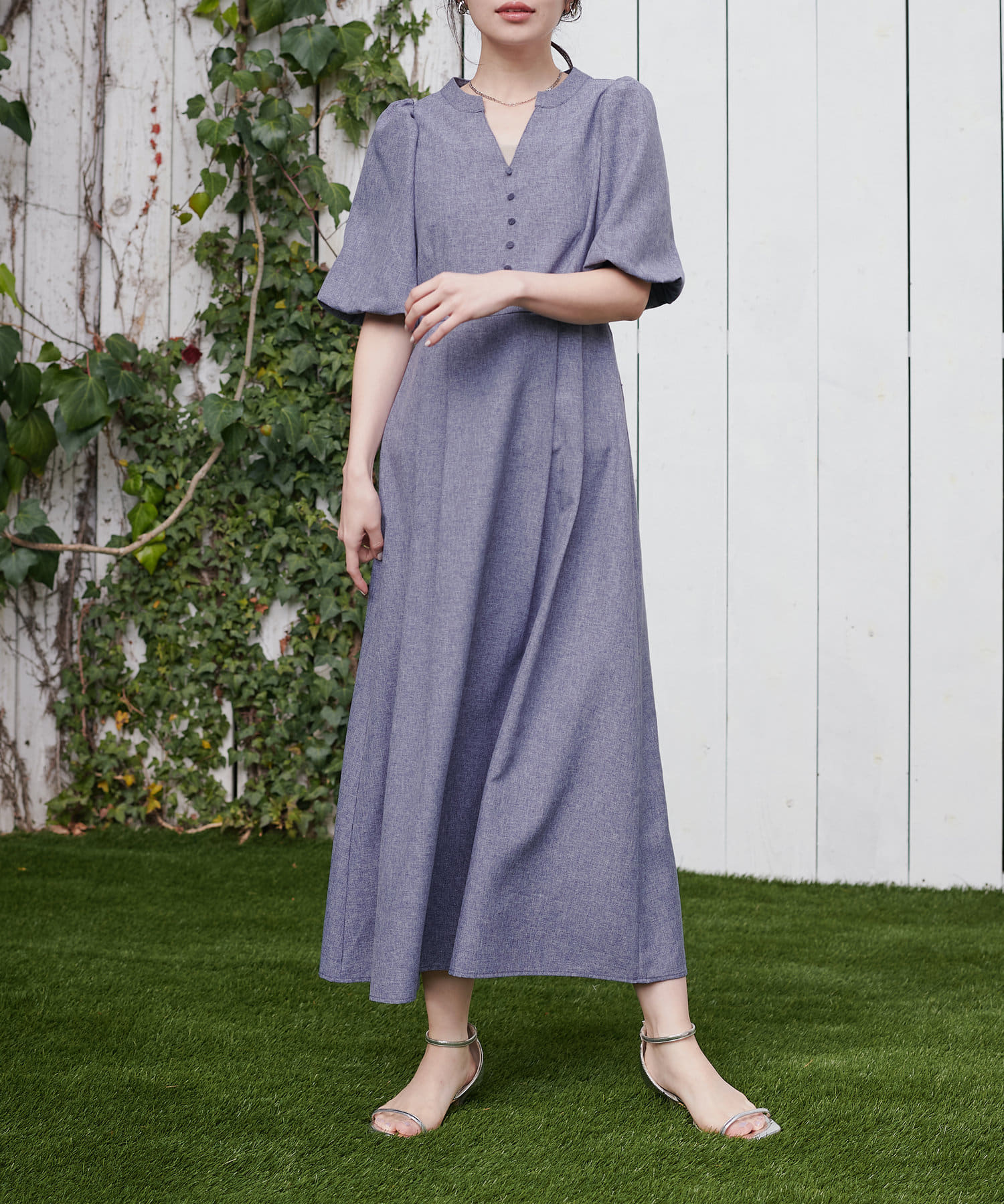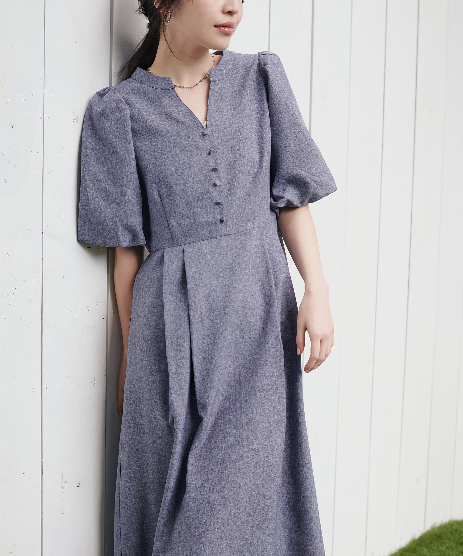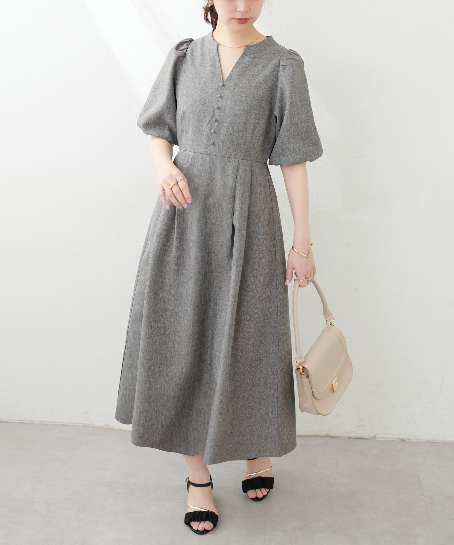 【WEB限定】キーネックパフスリーブワンピース