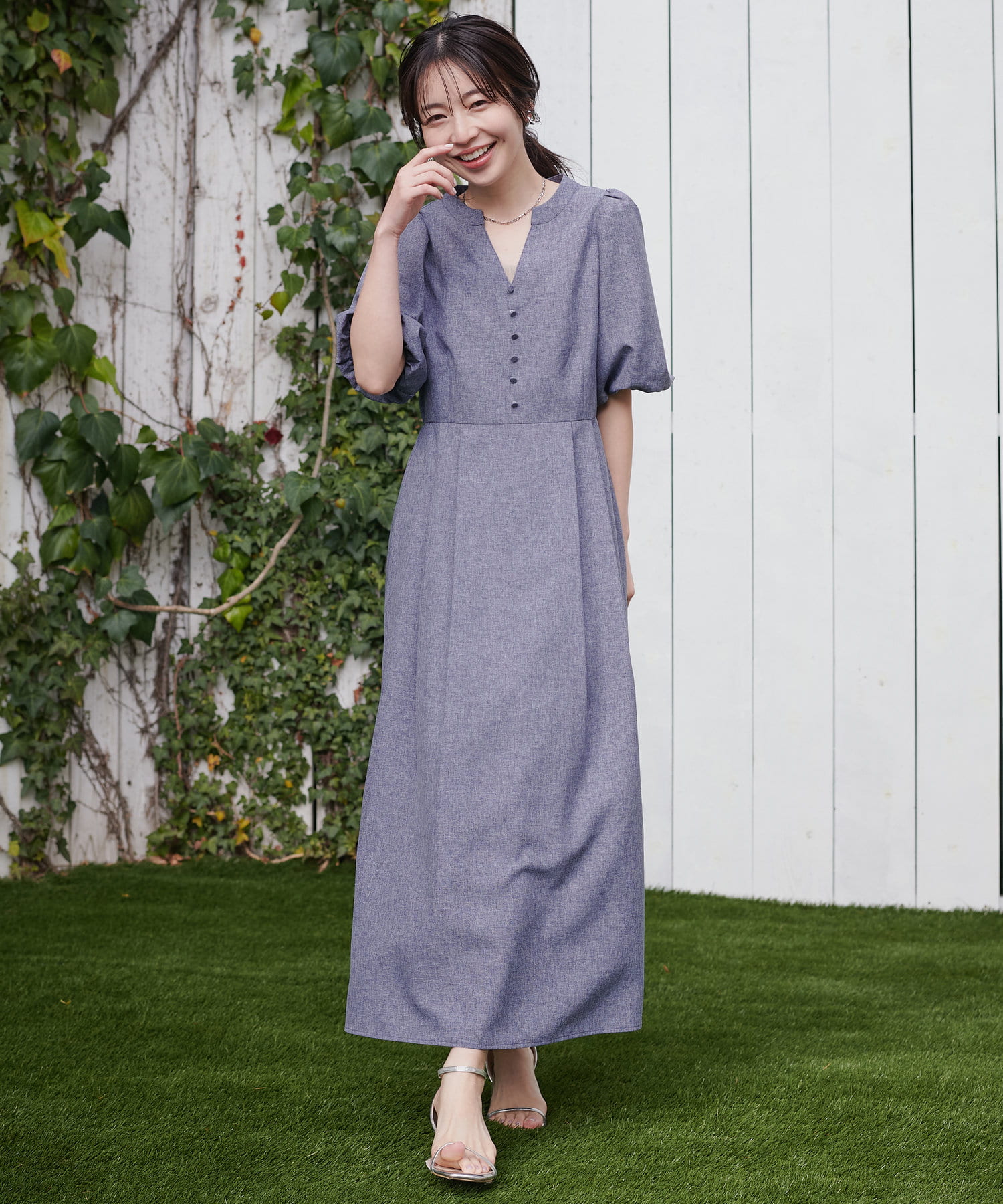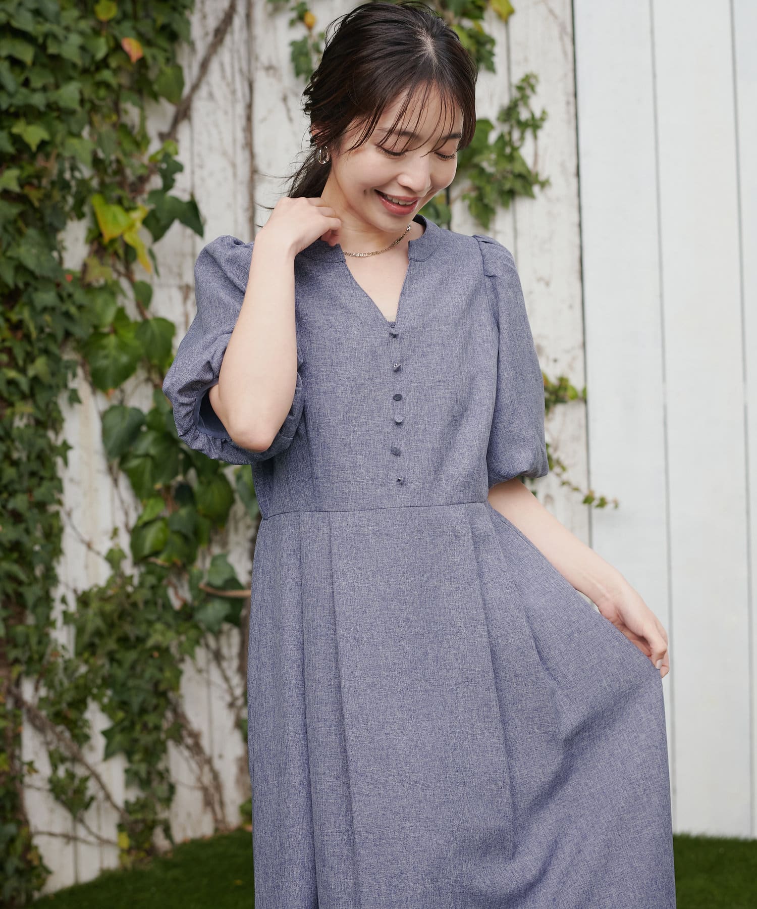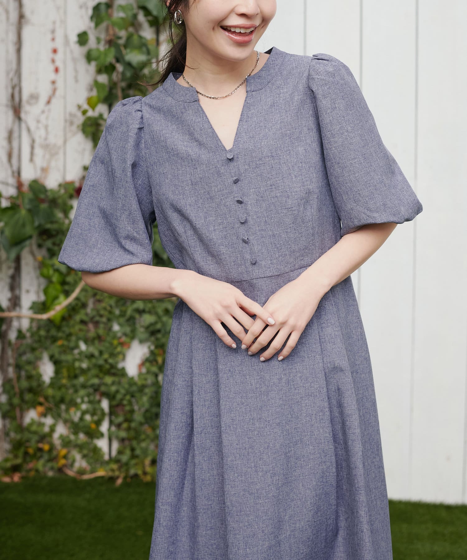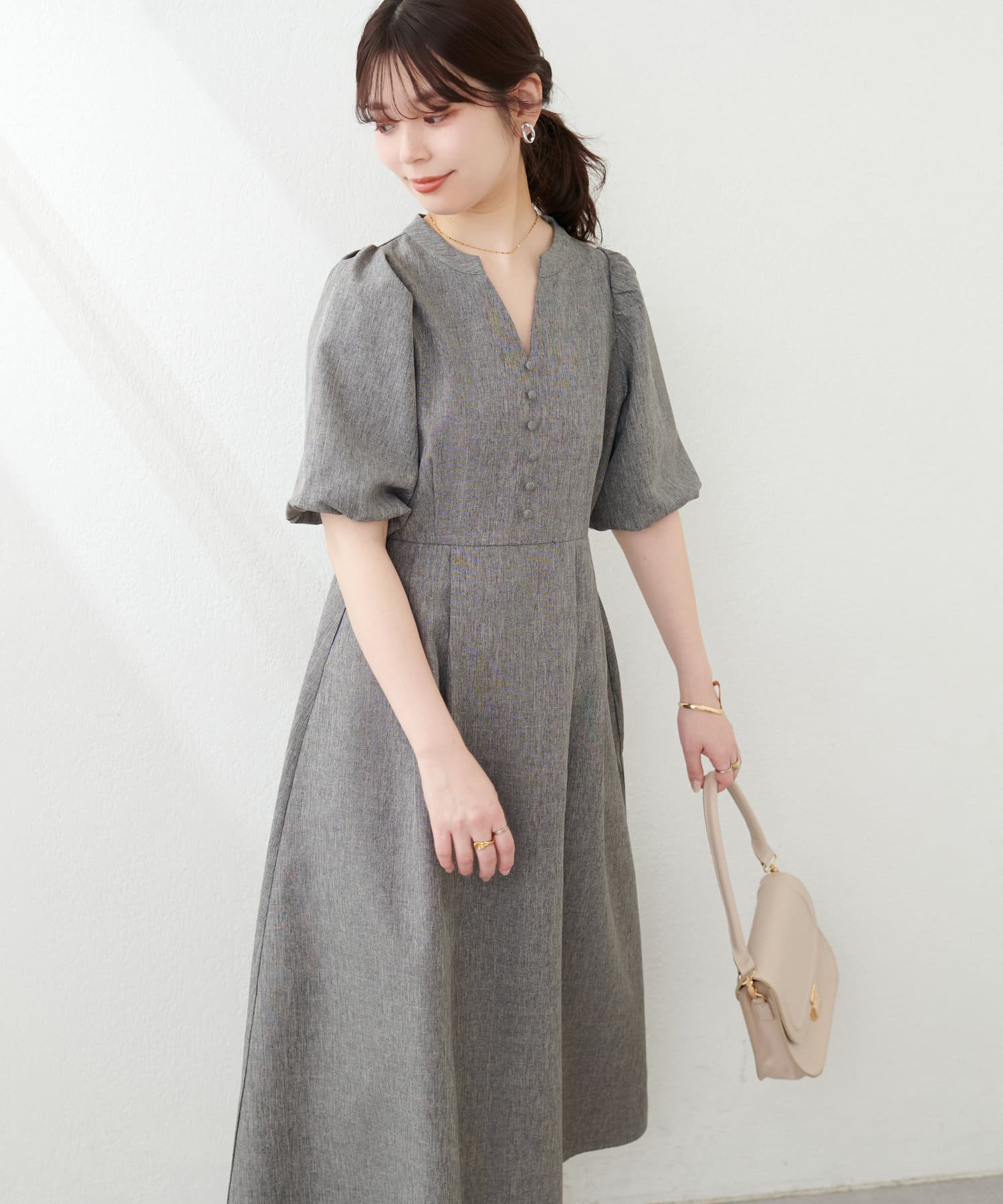 【WEB限定】キーネックパフスリーブワンピース