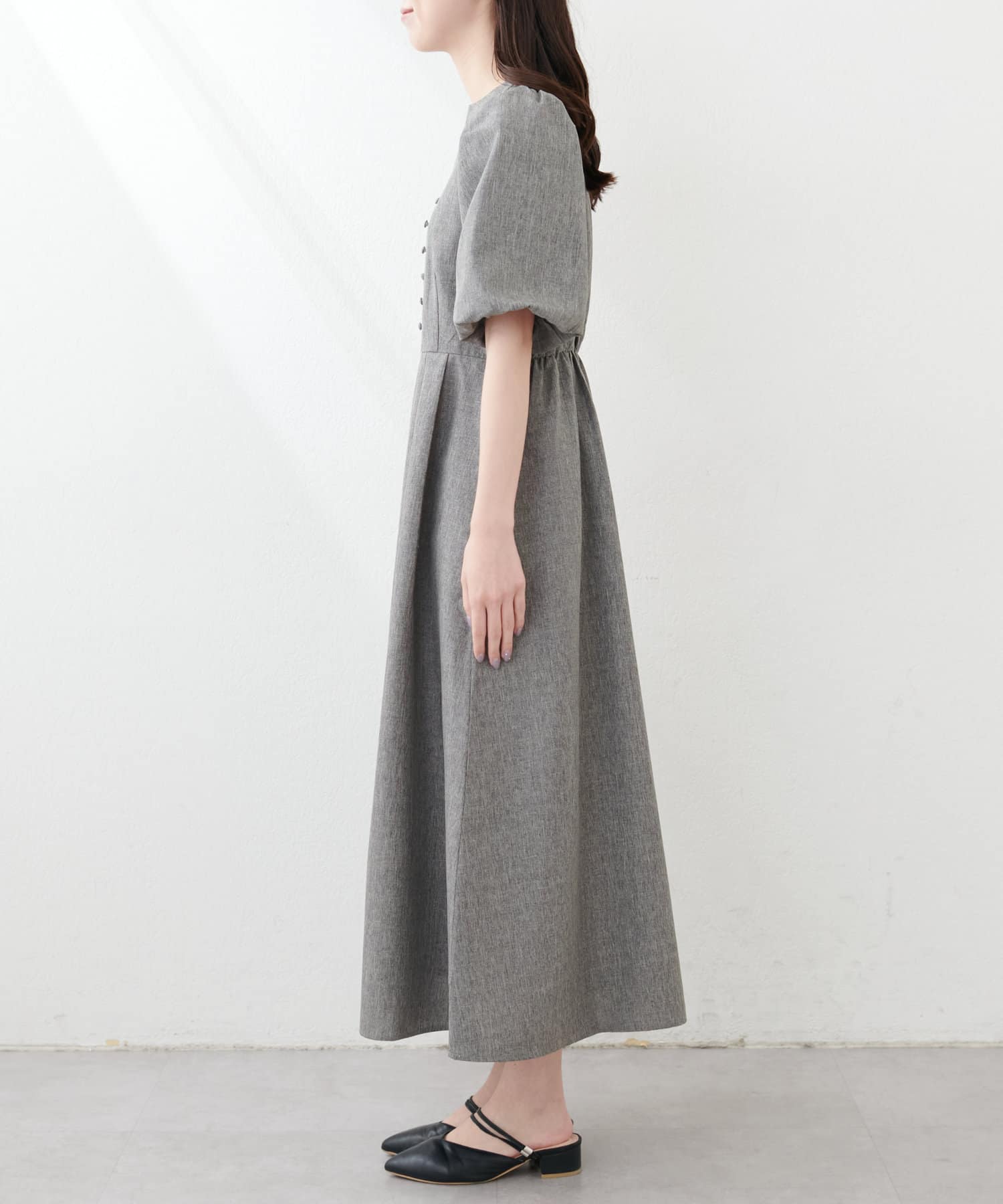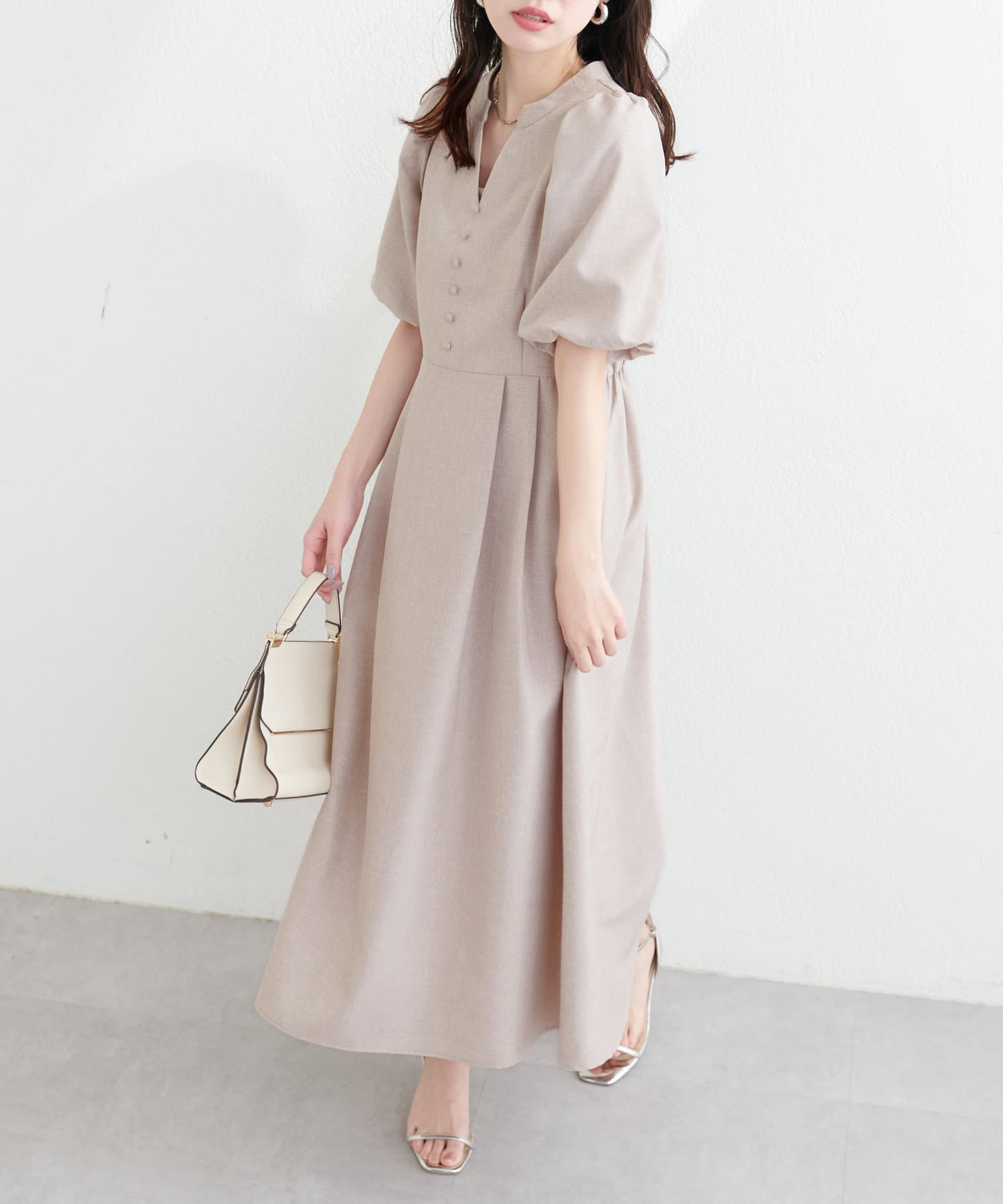 美シルエットのパフスリーブワンピース