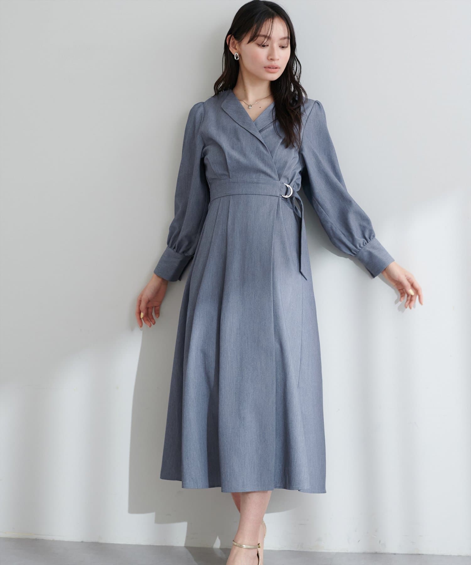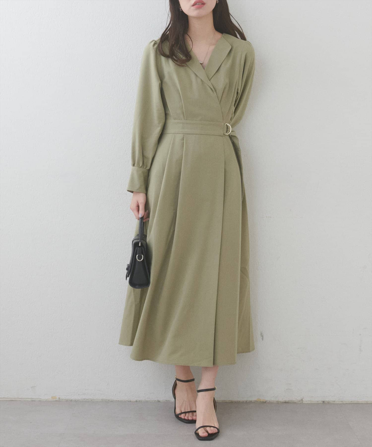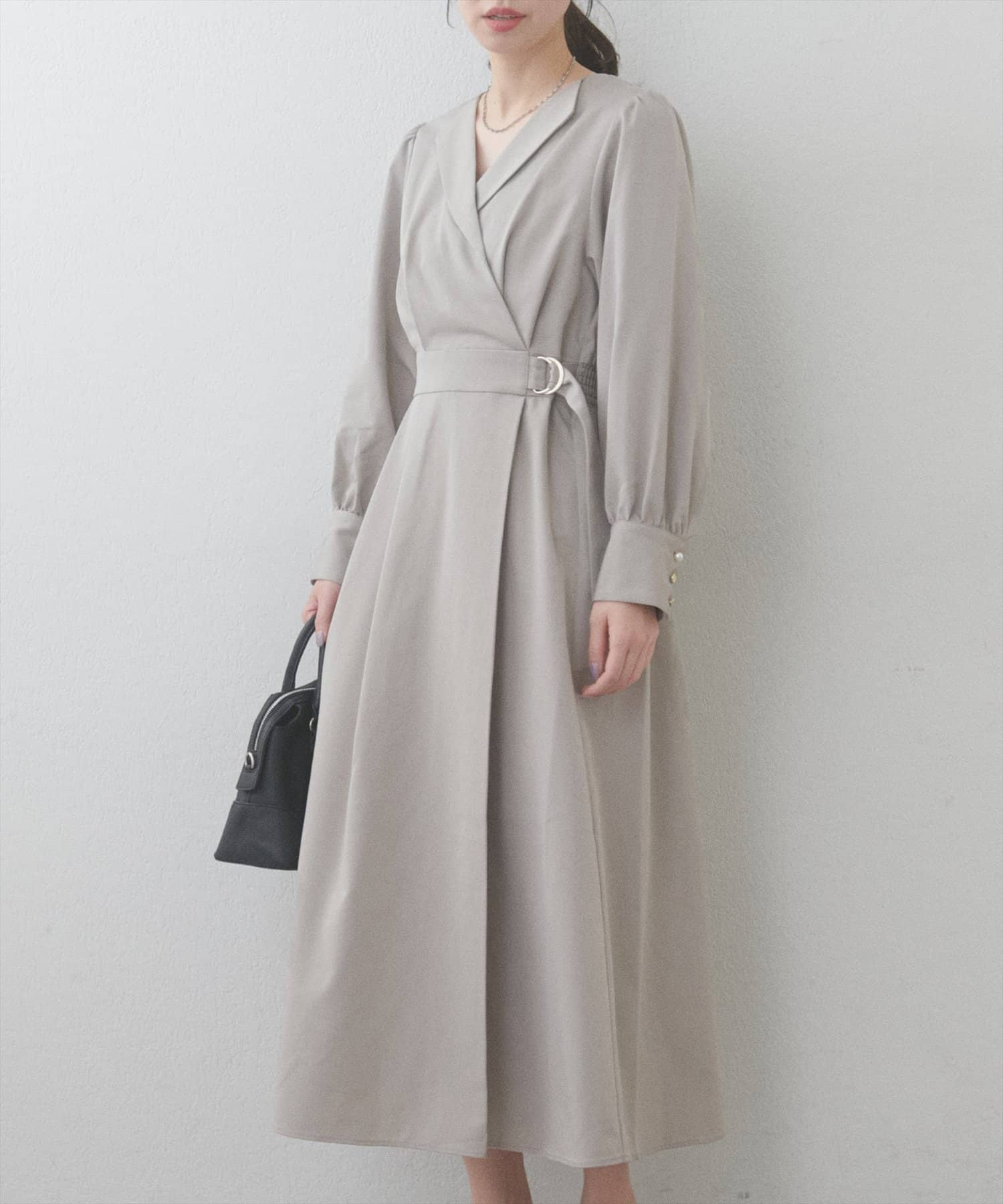 まるでガウンのようなオープンネックが大人の余裕を漂わせるレディワンピース。