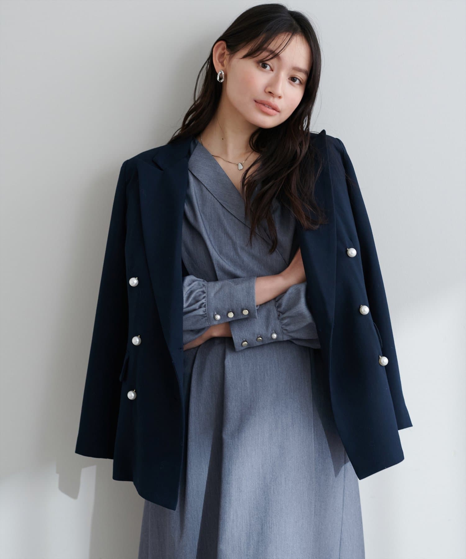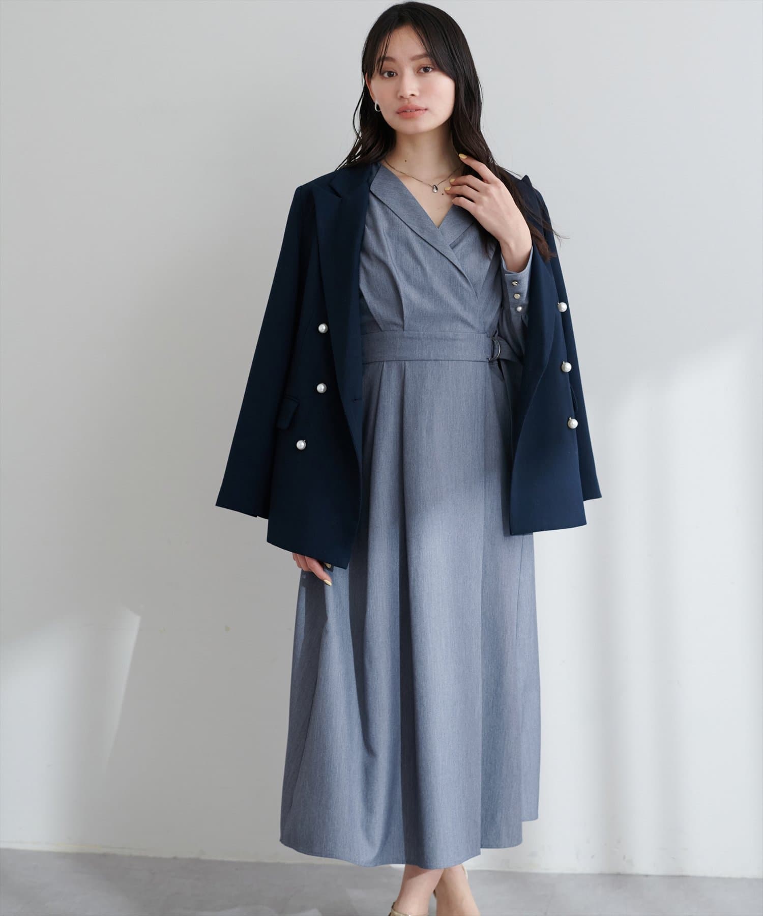 パールネックレスやパンプスを合わせればドレスライクに仕上がり、二次会やディナーなどにも重宝するアイテムです。