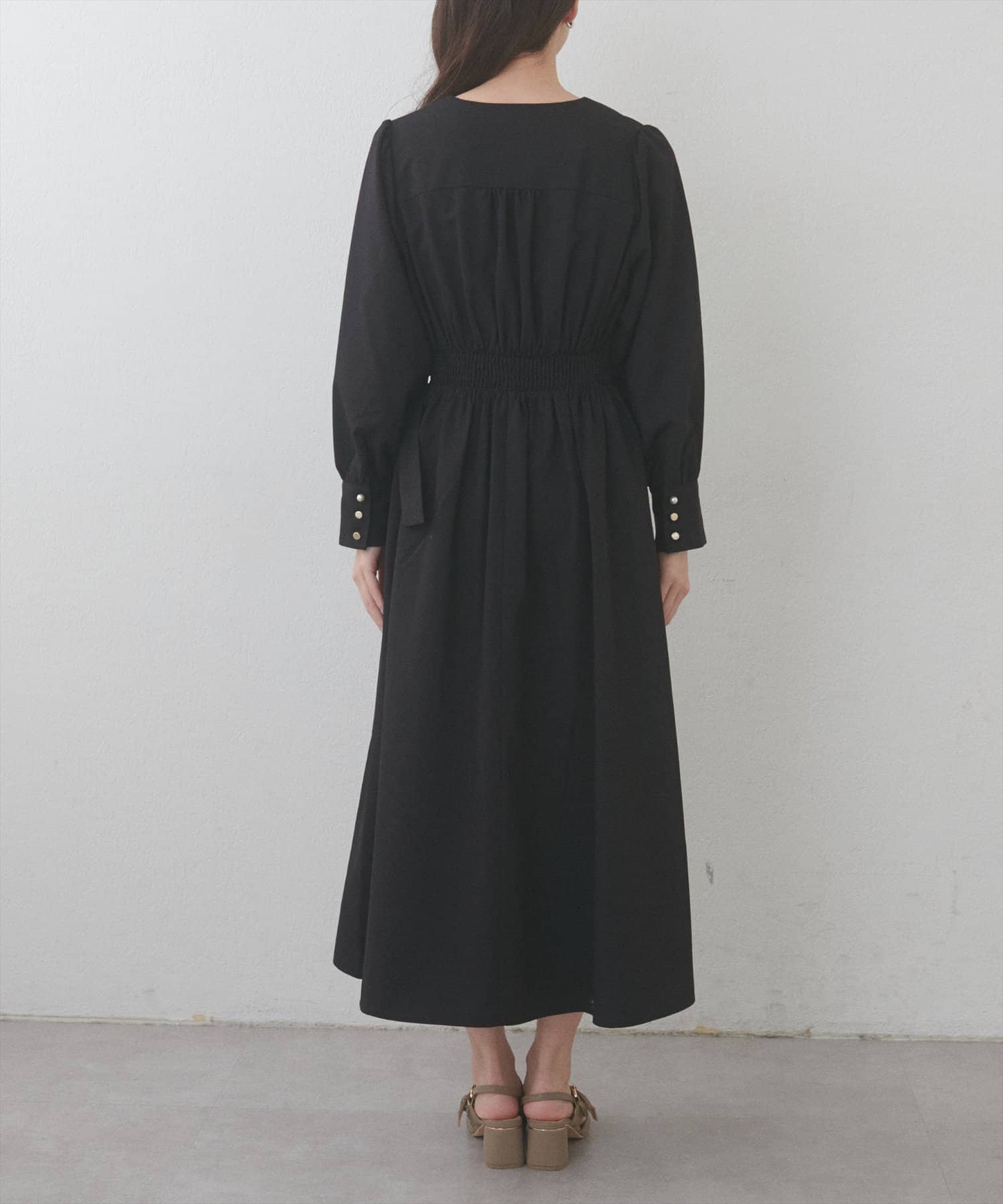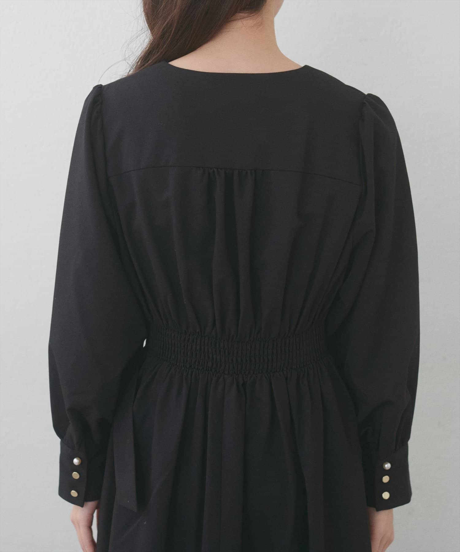 バックにはたっぷりとギャザーが施され、後姿にもこだわった1枚です。