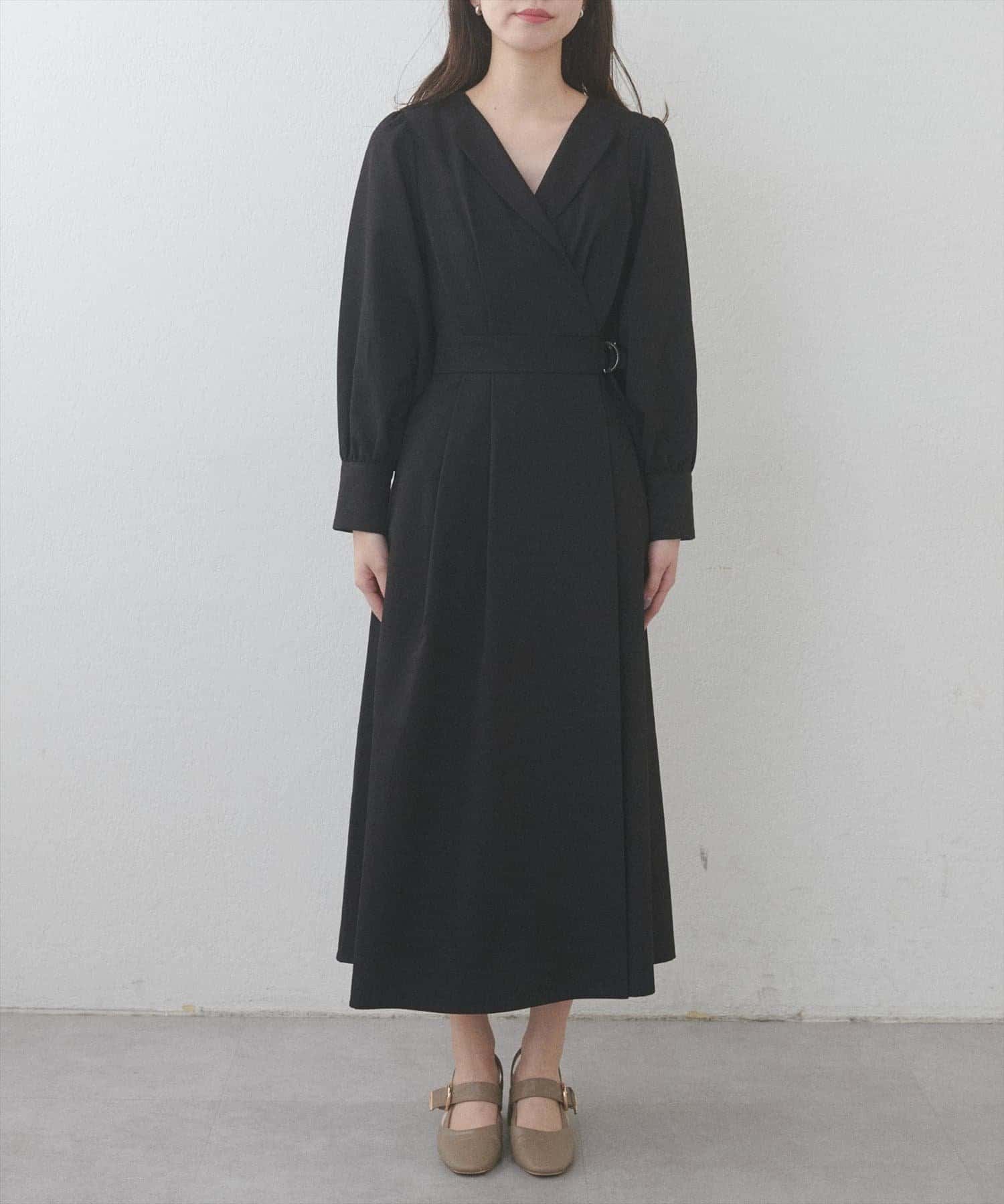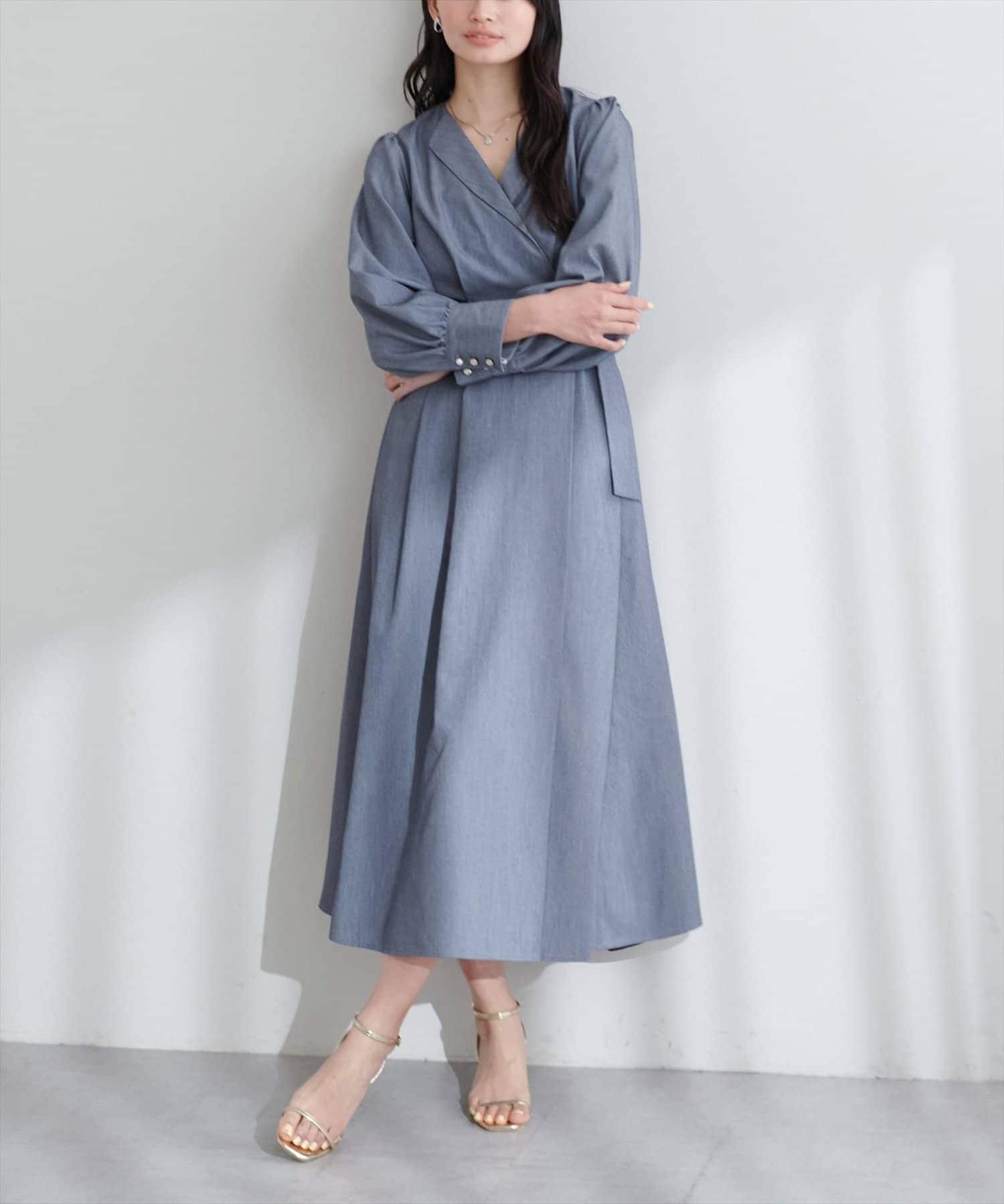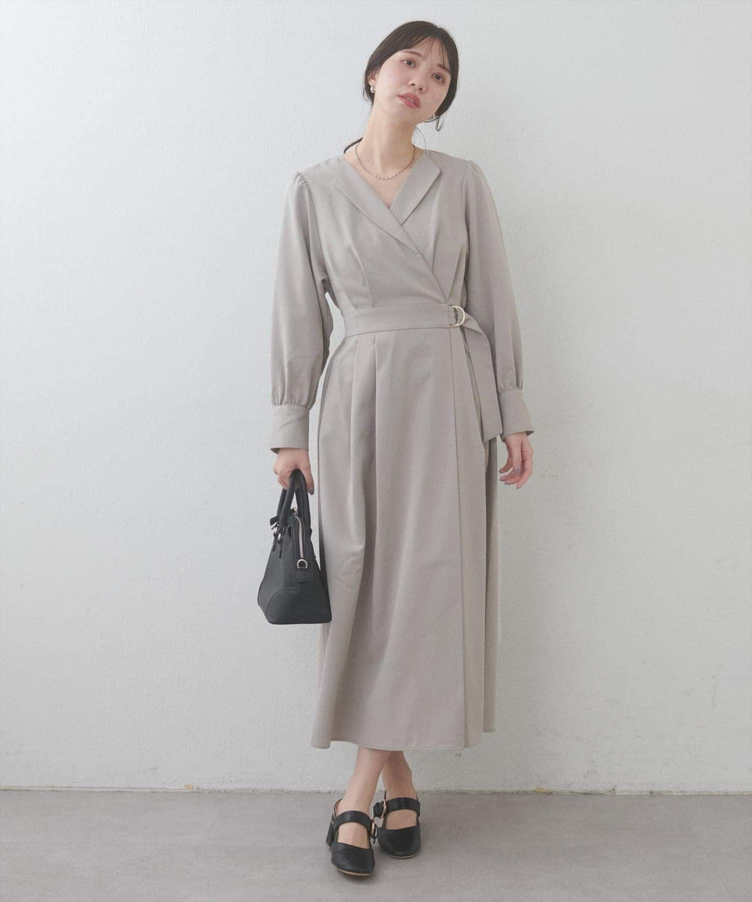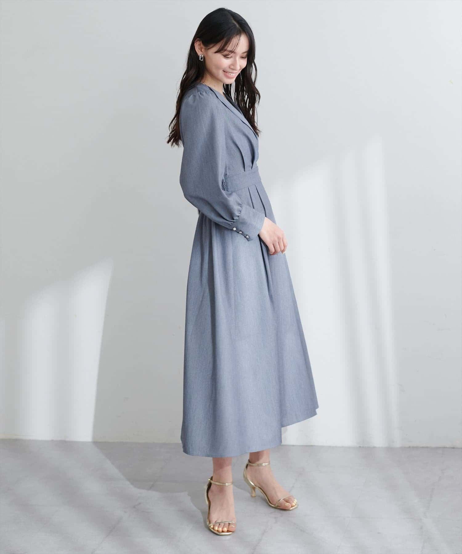 まるでガウンのようなオープンネックが大人の余裕を漂わせるレディワンピース。