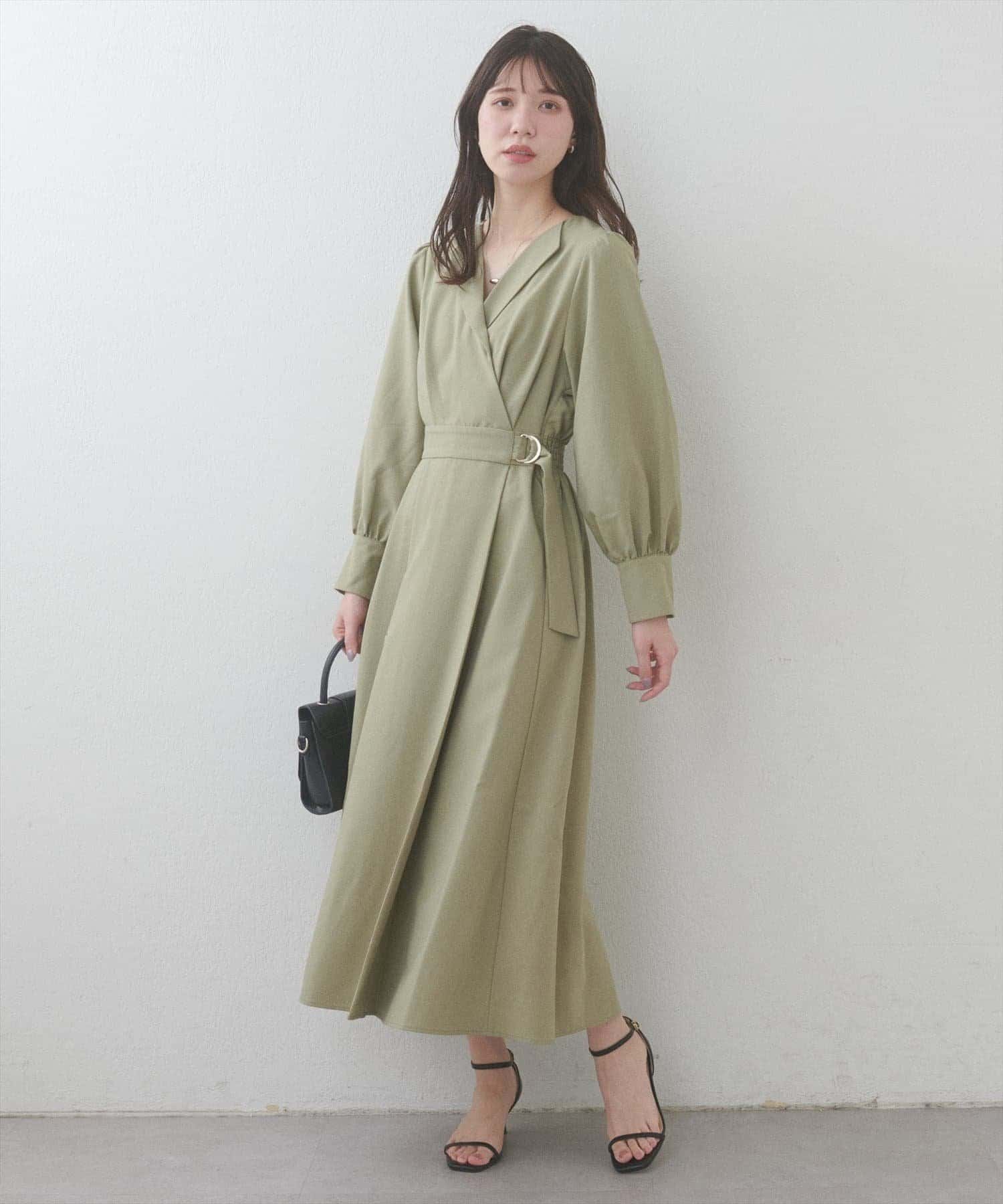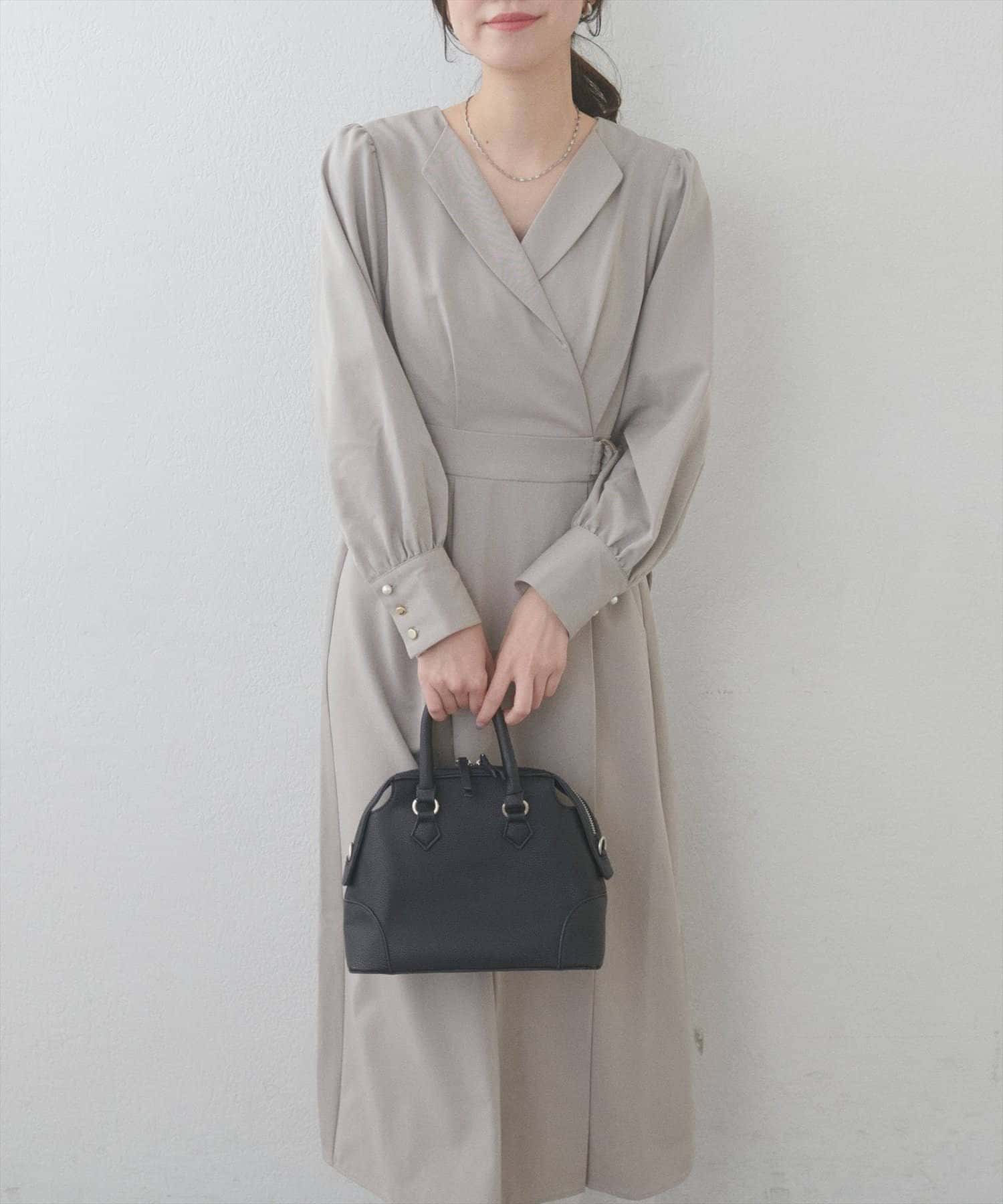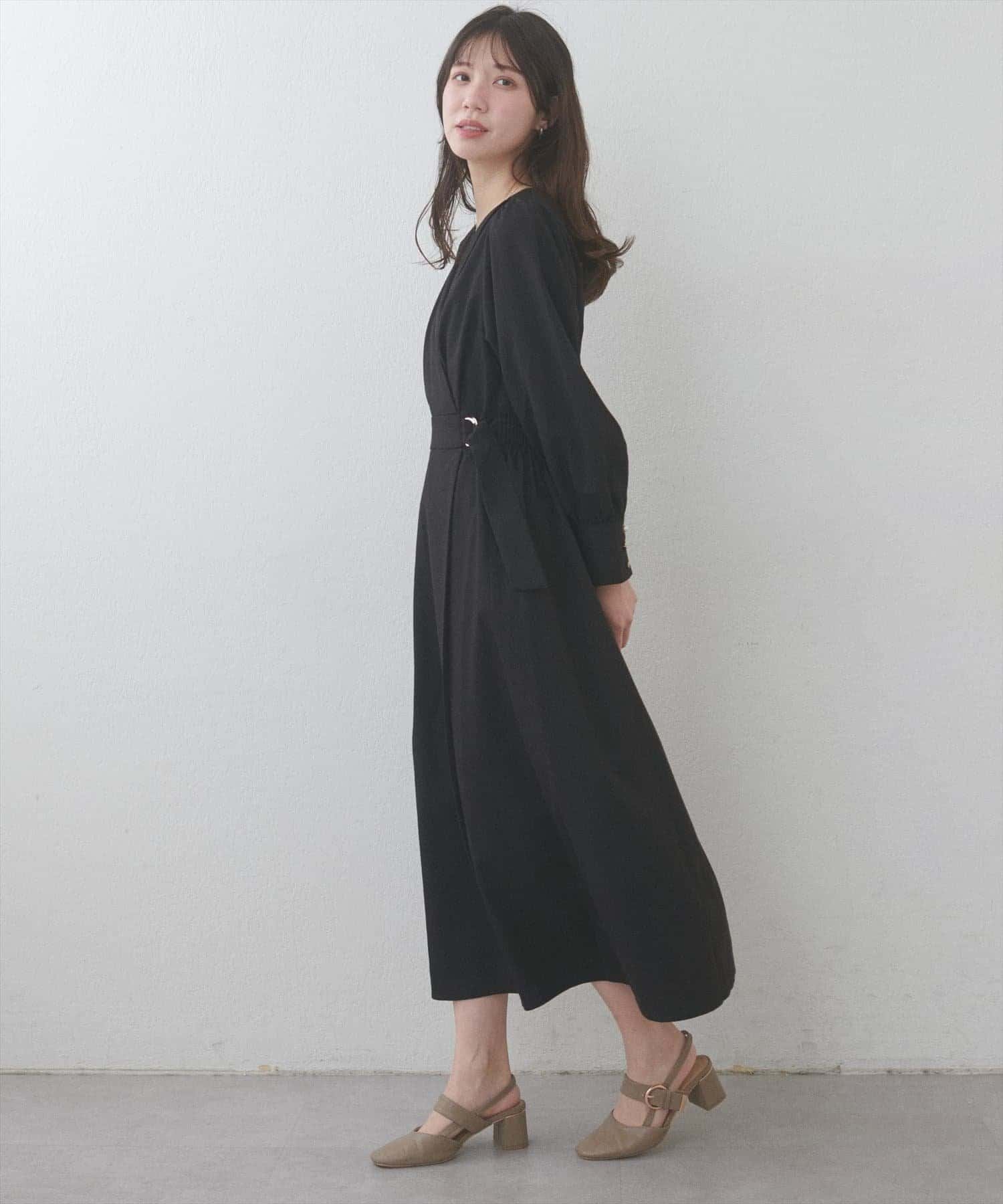 まるでガウンのようなオープンネックが大人の余裕を漂わせるレディワンピース。
