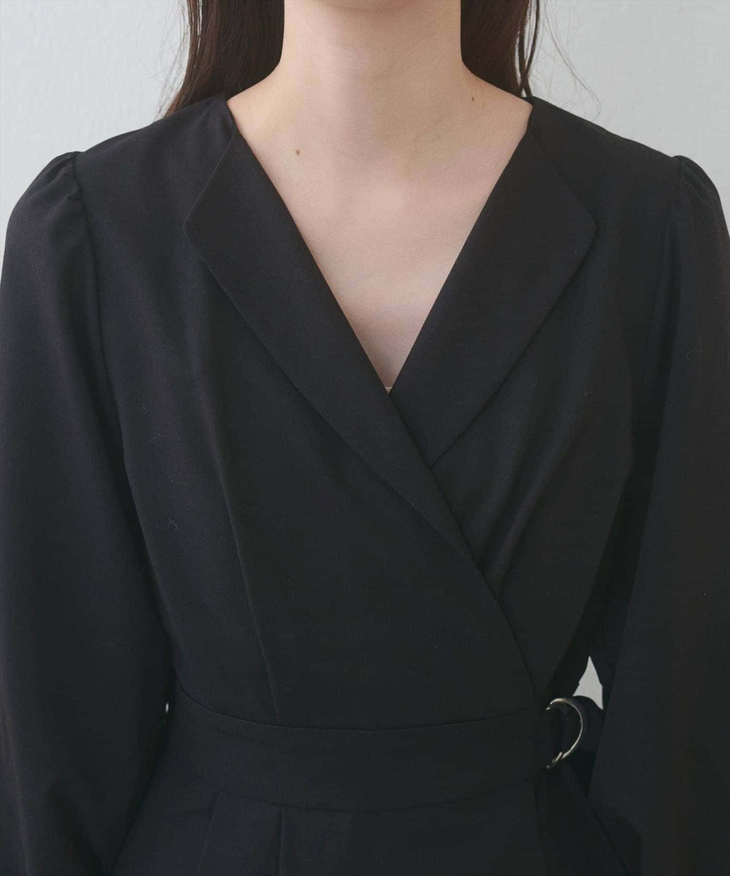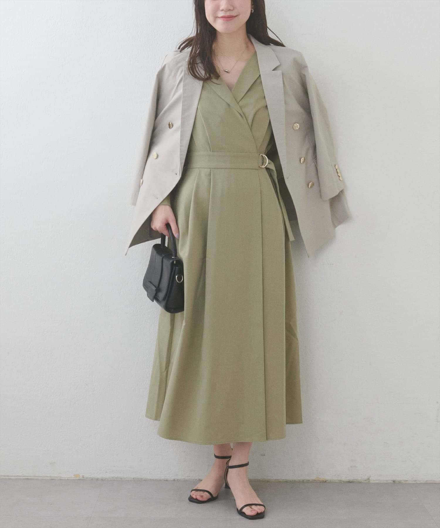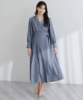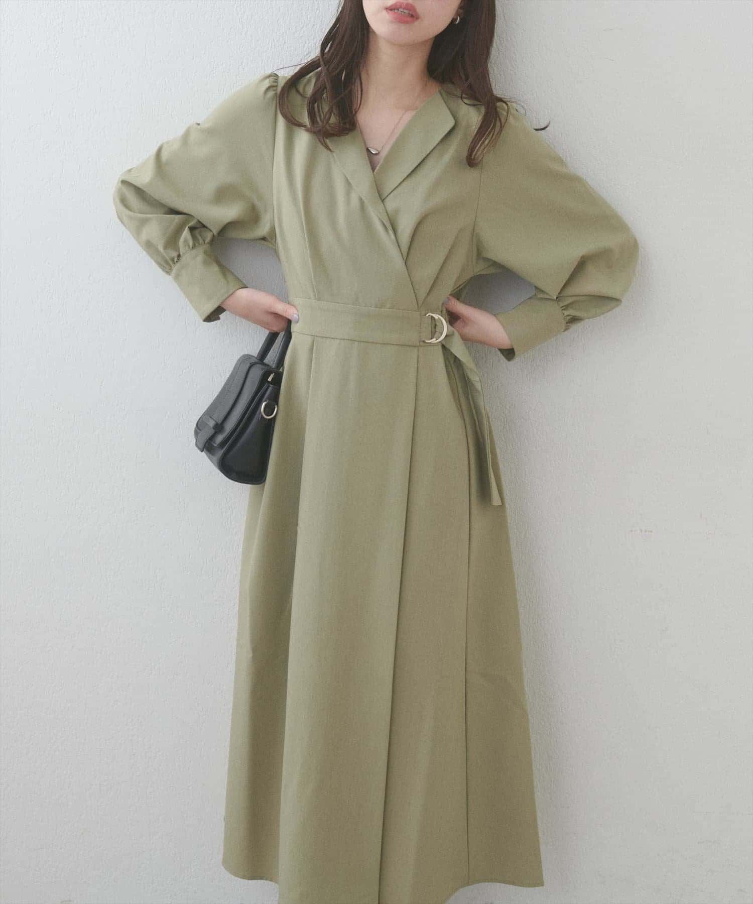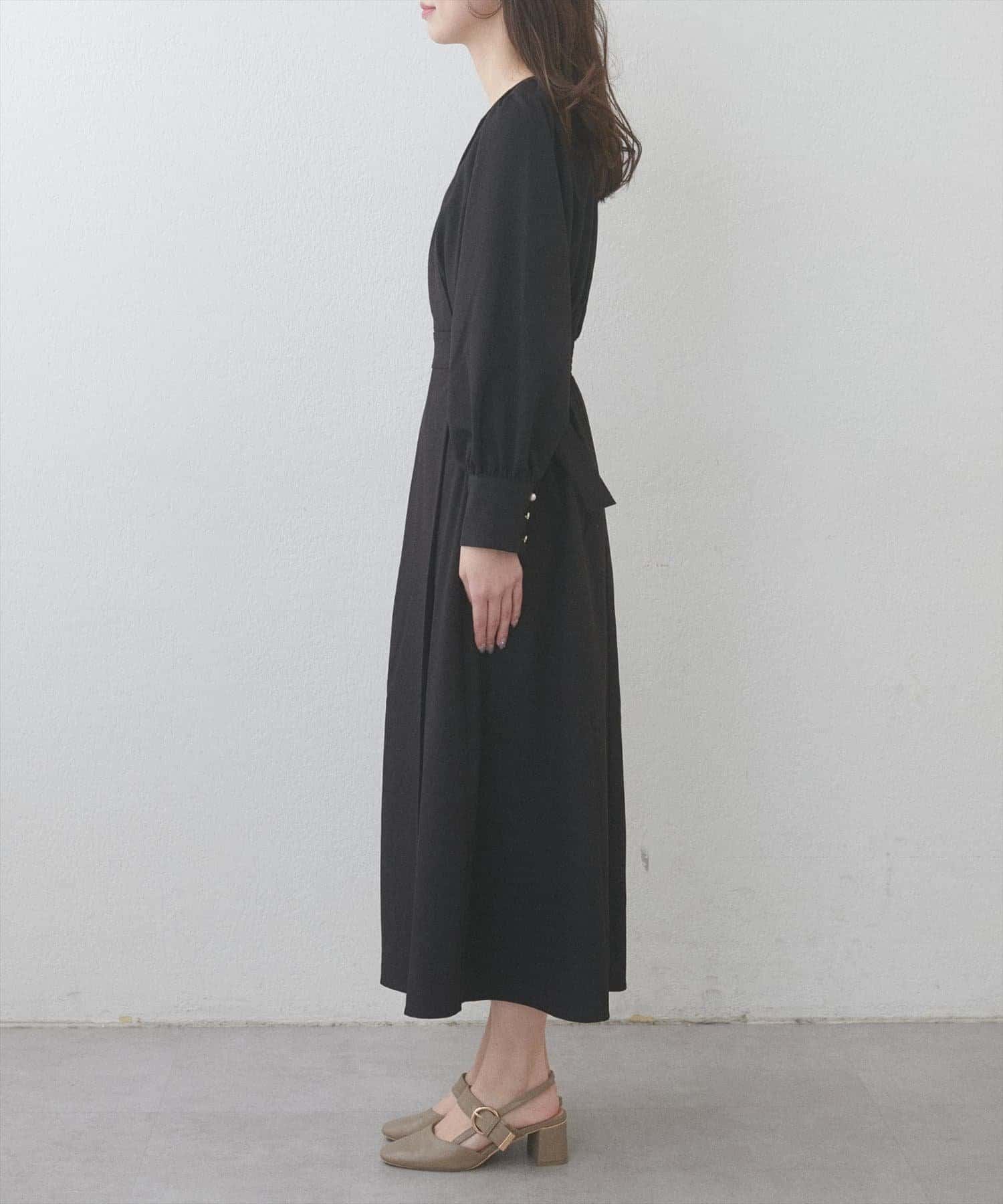 まるでガウンのようなオープンネックが大人の余裕を漂わせるレディワンピース。