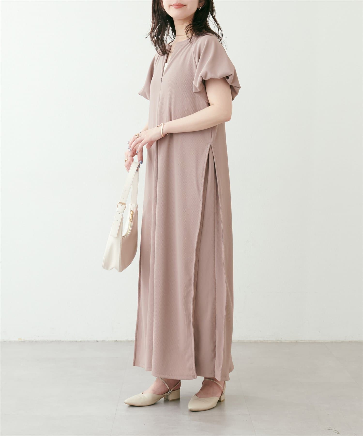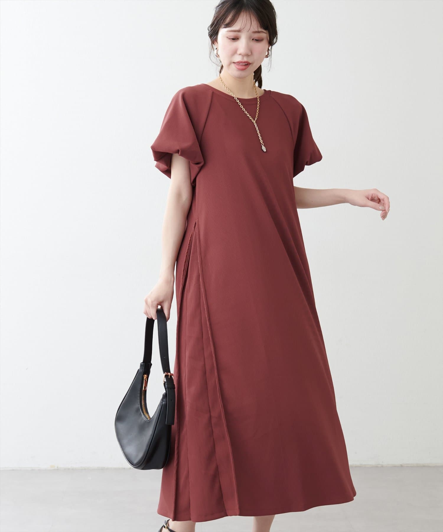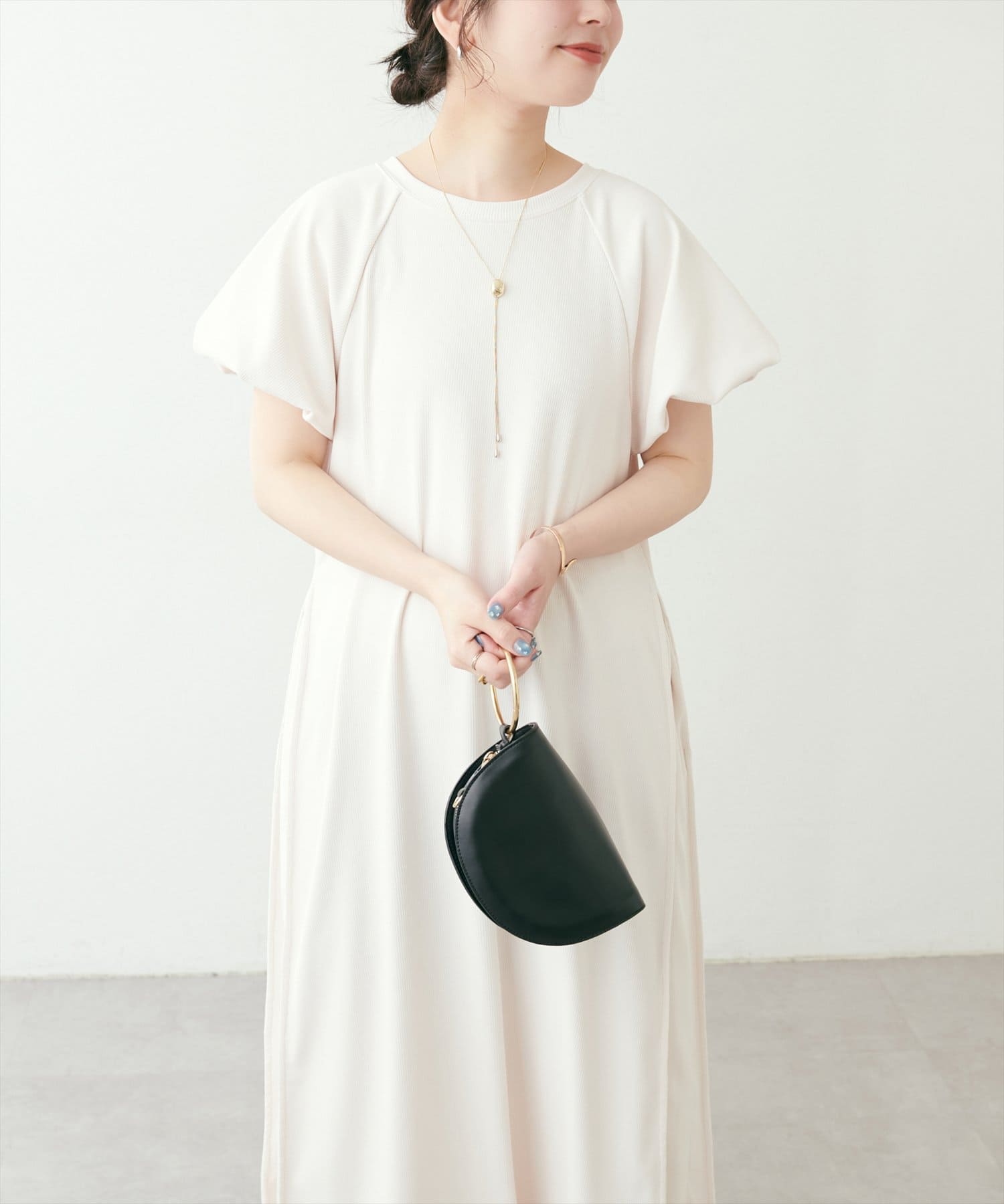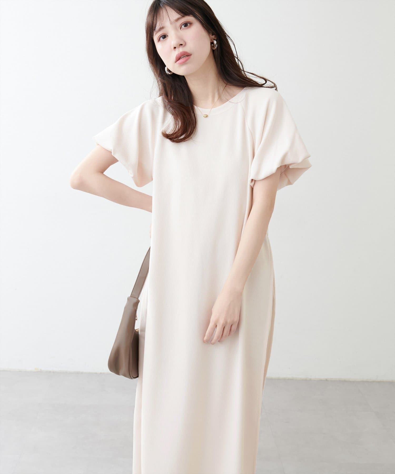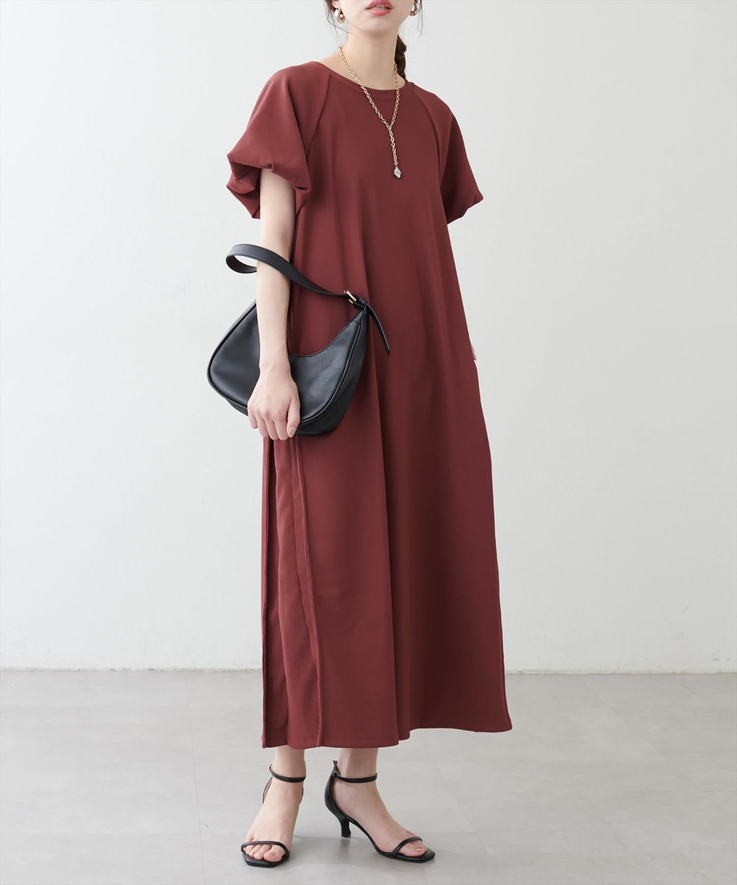 リップル素材で、楽チンに着れるのに身体の線が出にくいワンピースとなっております。