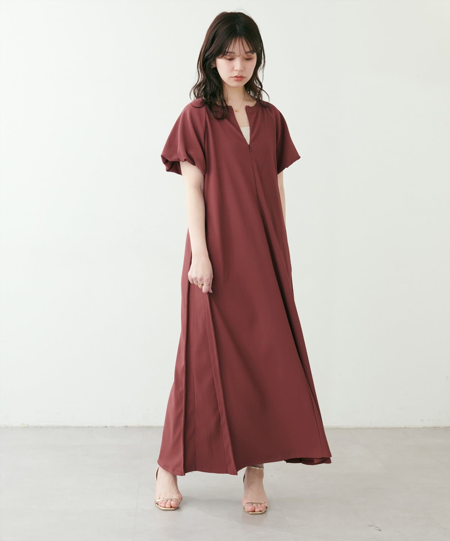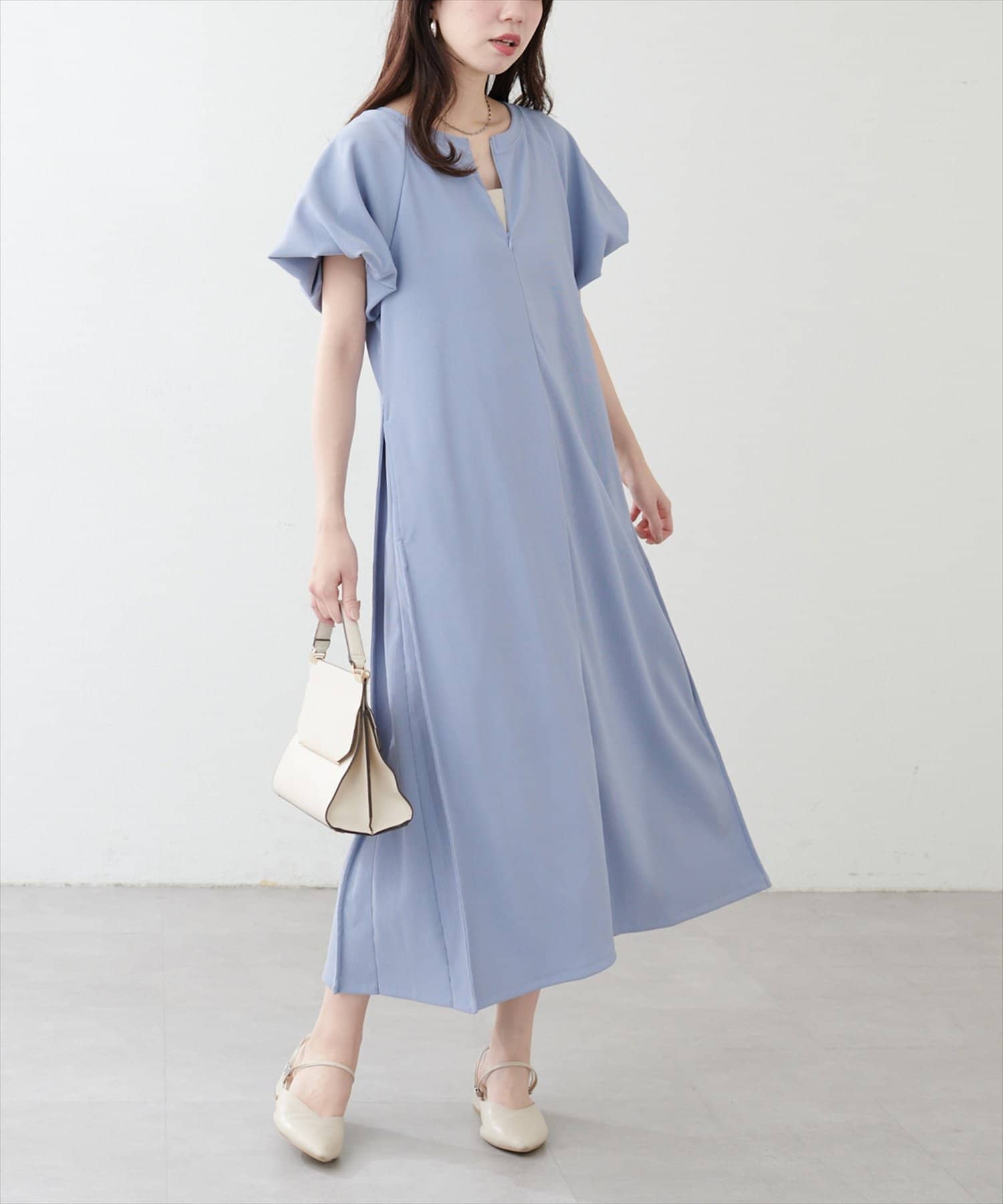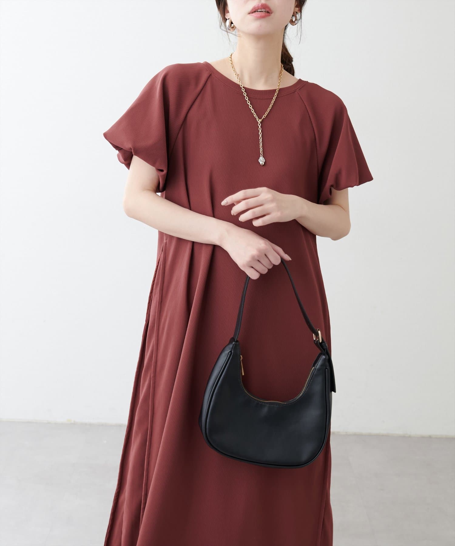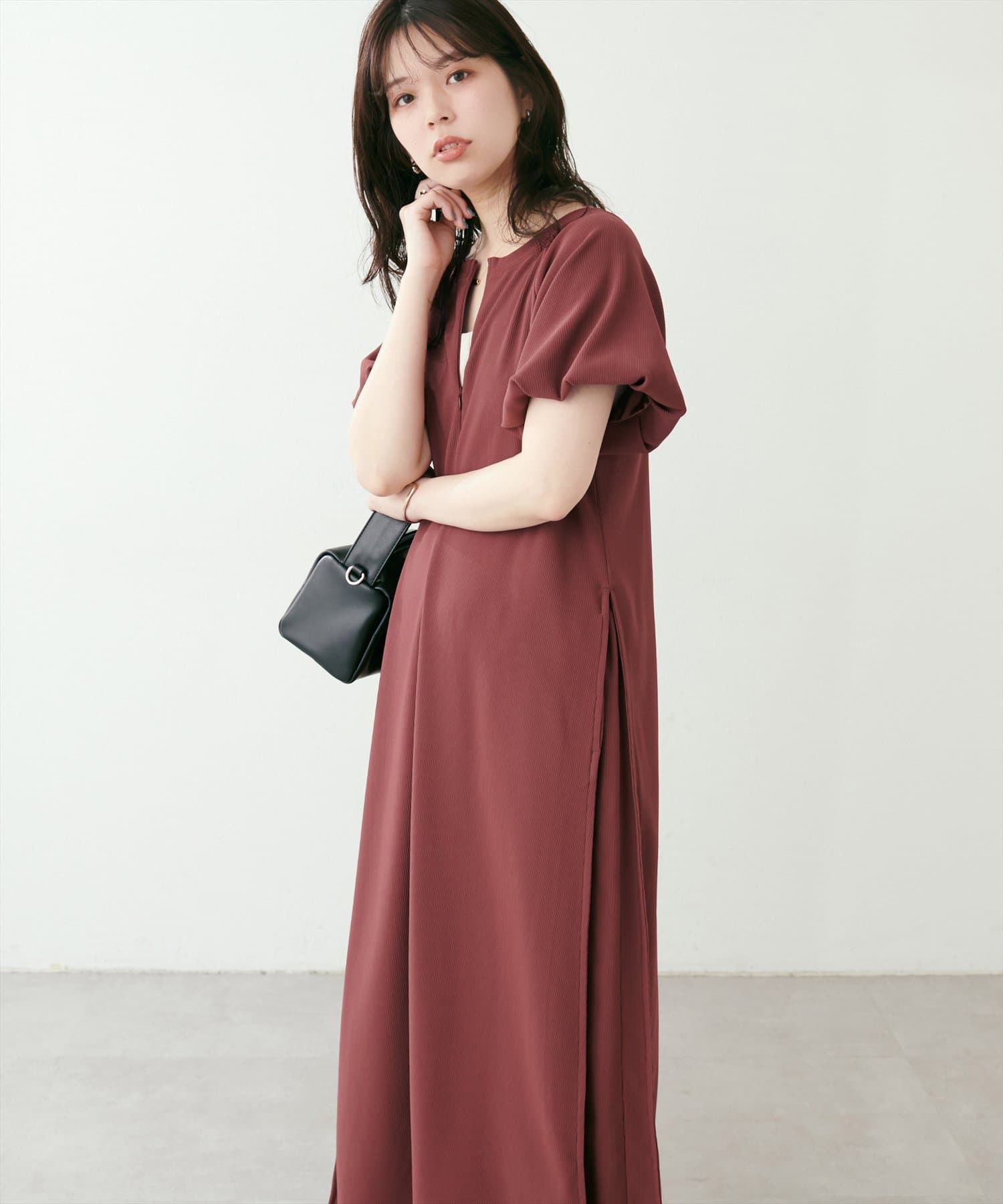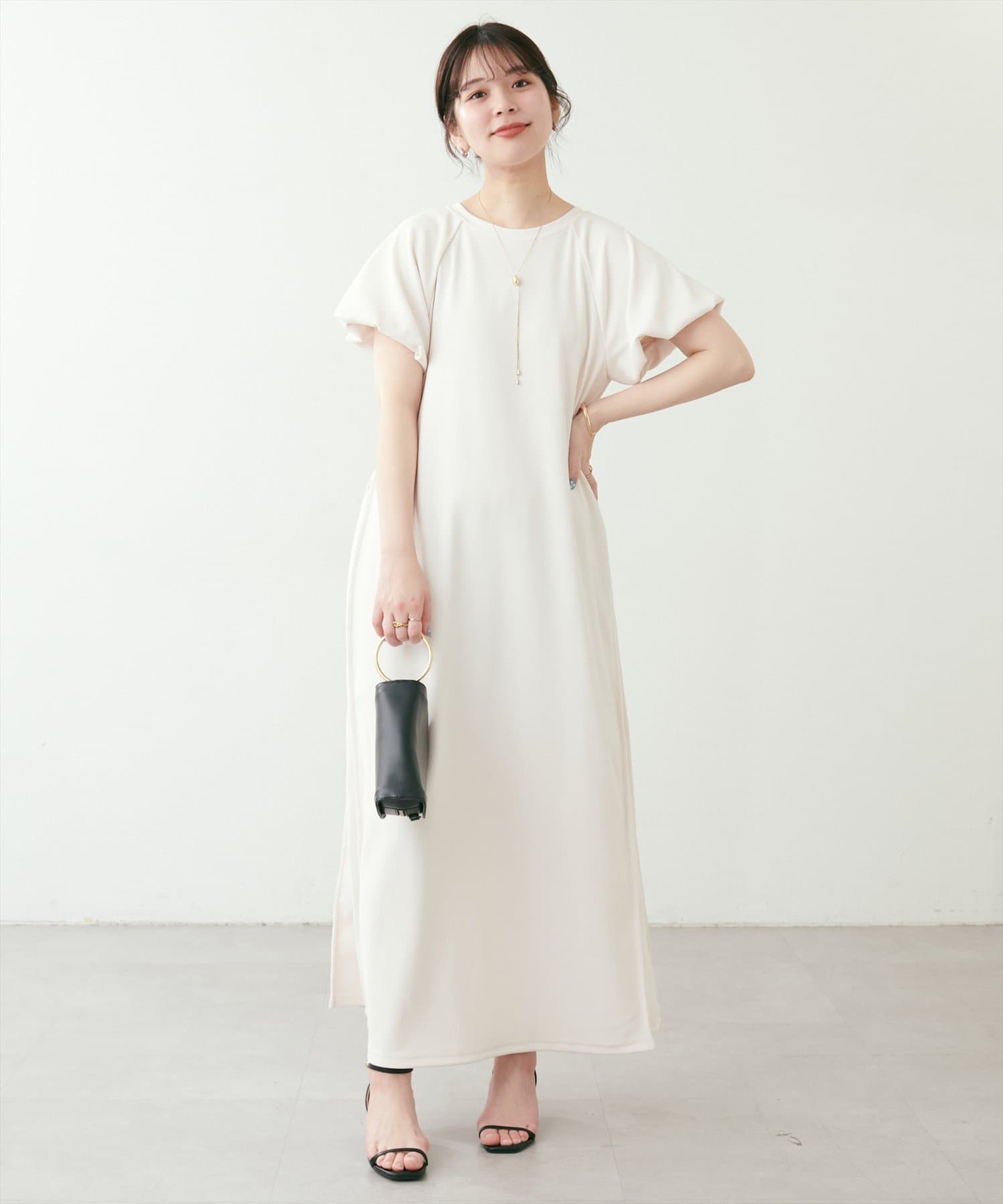 リップル素材で、楽チンに着れるのに身体の線が出にくいワンピースとなっております。