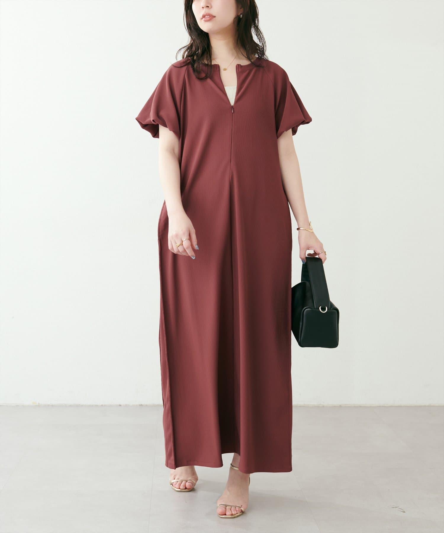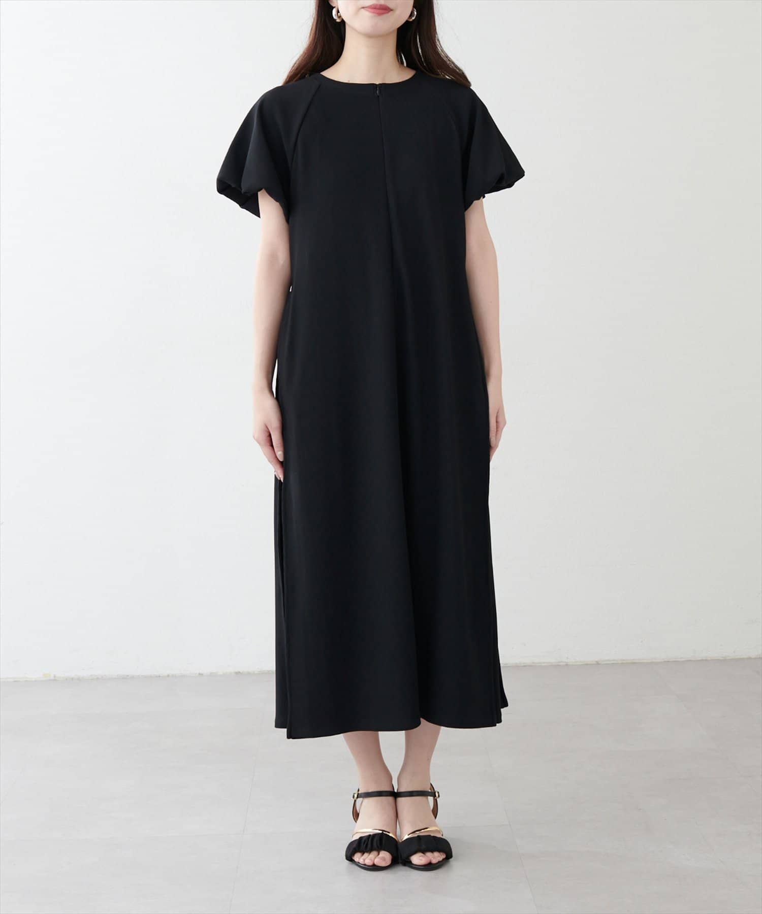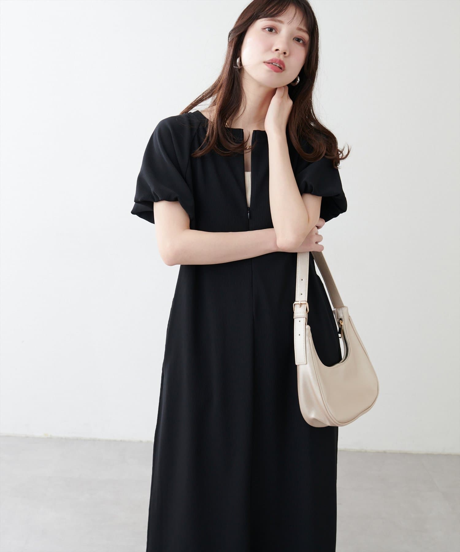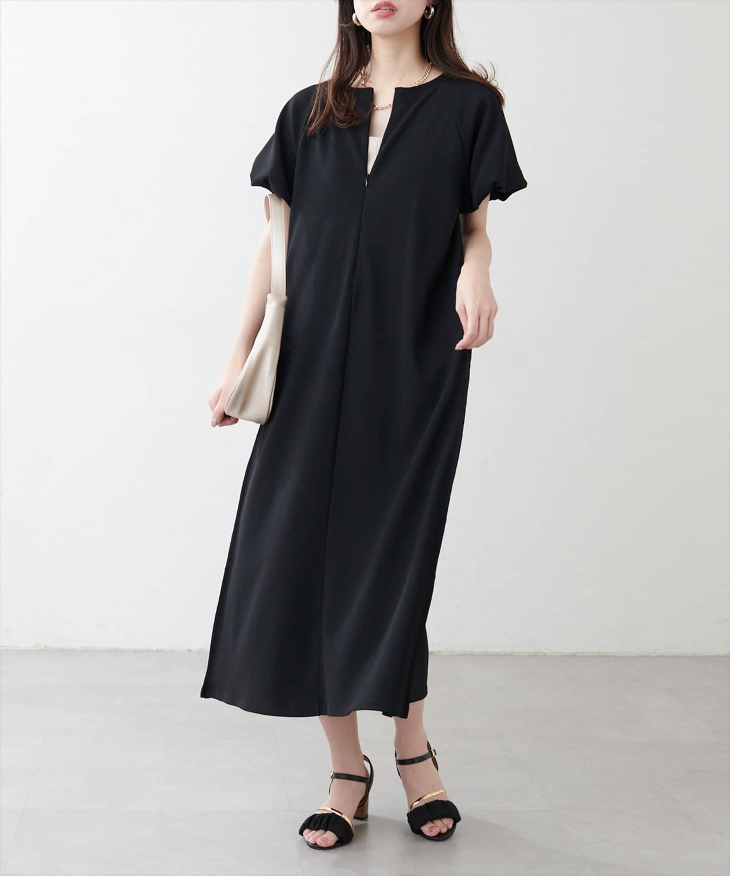 バルーン袖になっているので、腕回りも気にならず細身えをかなえてくれます。コンシールファスナーで首周りはお好きな