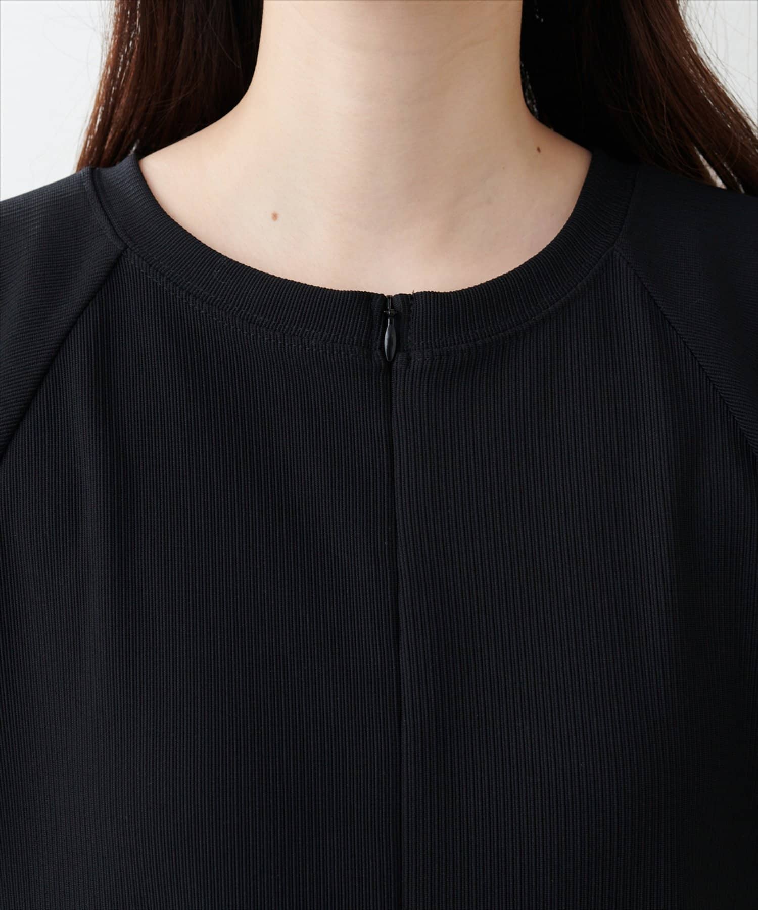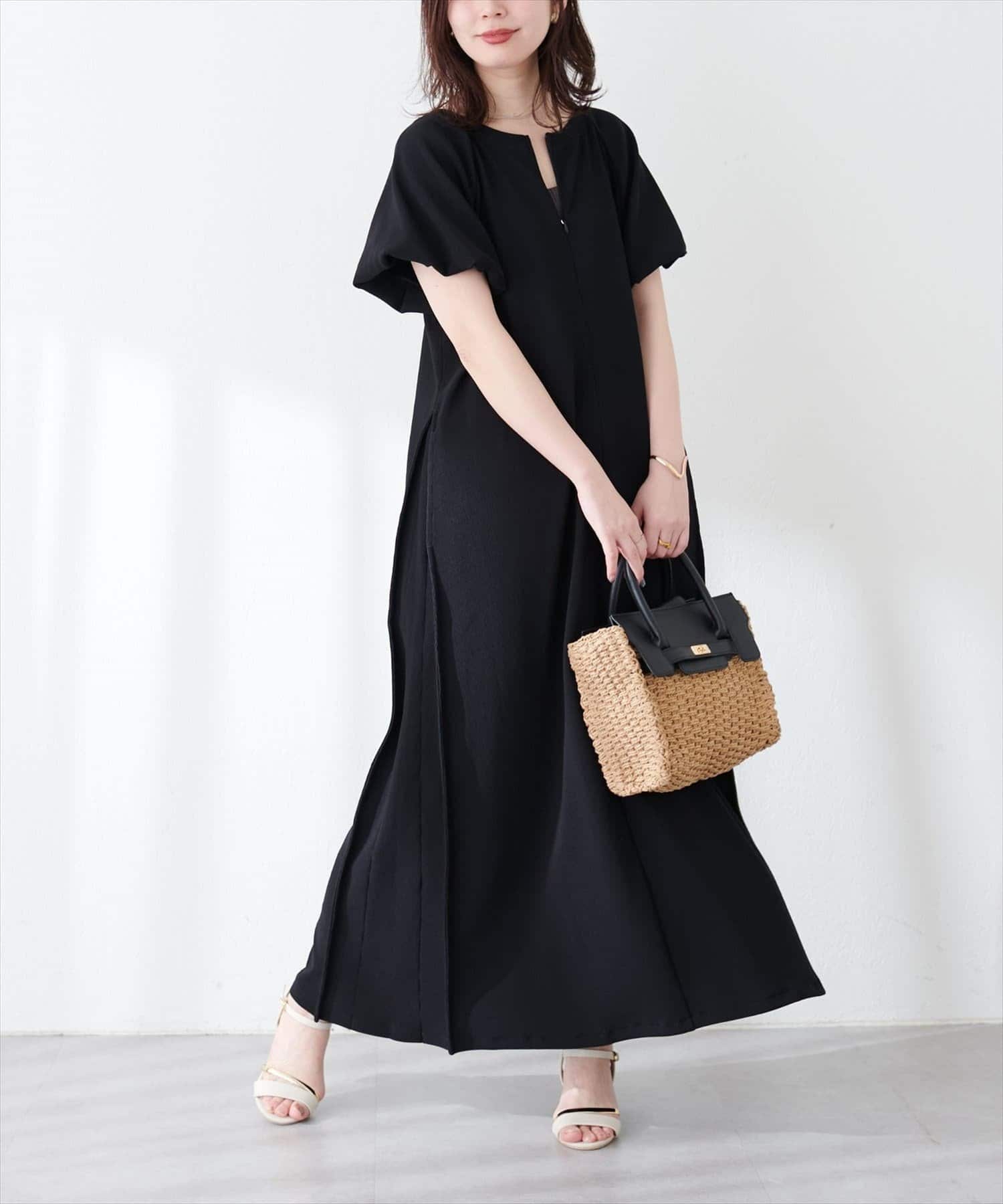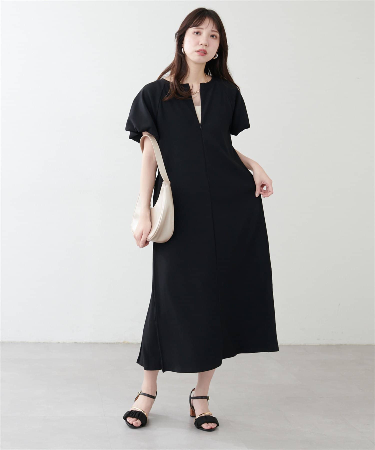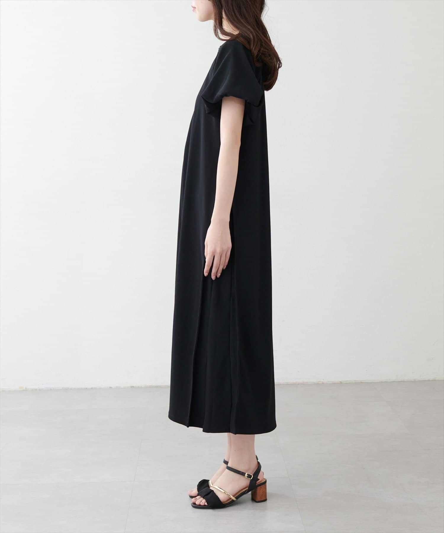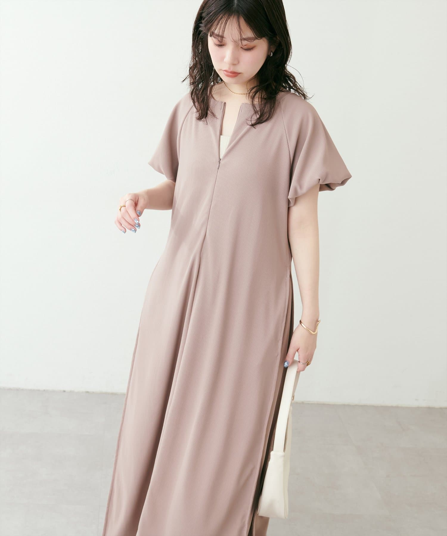 バルーン袖になっているので、腕回りも気にならず細身えをかなえてくれます。コンシールファスナーで首周りはお好きな