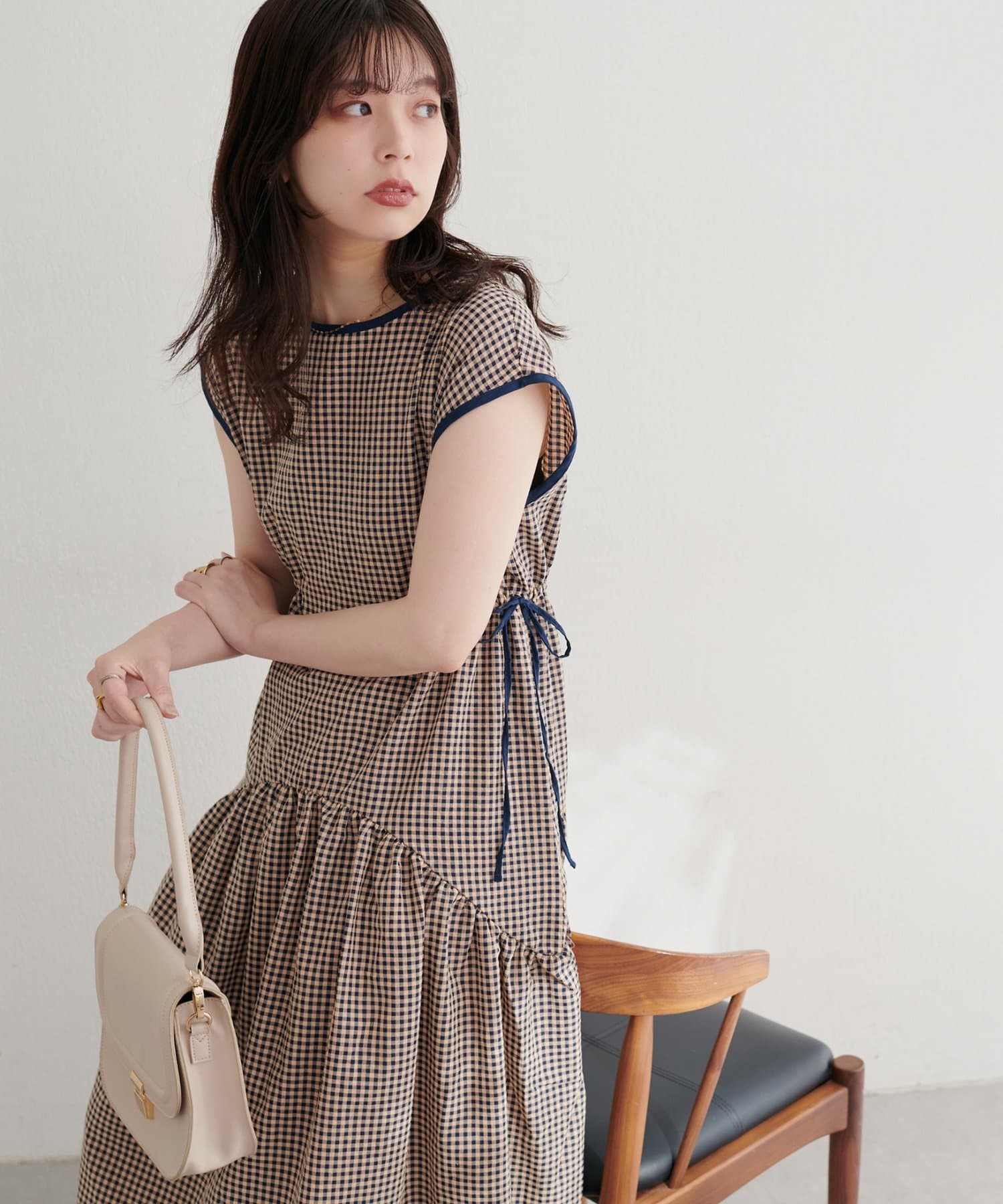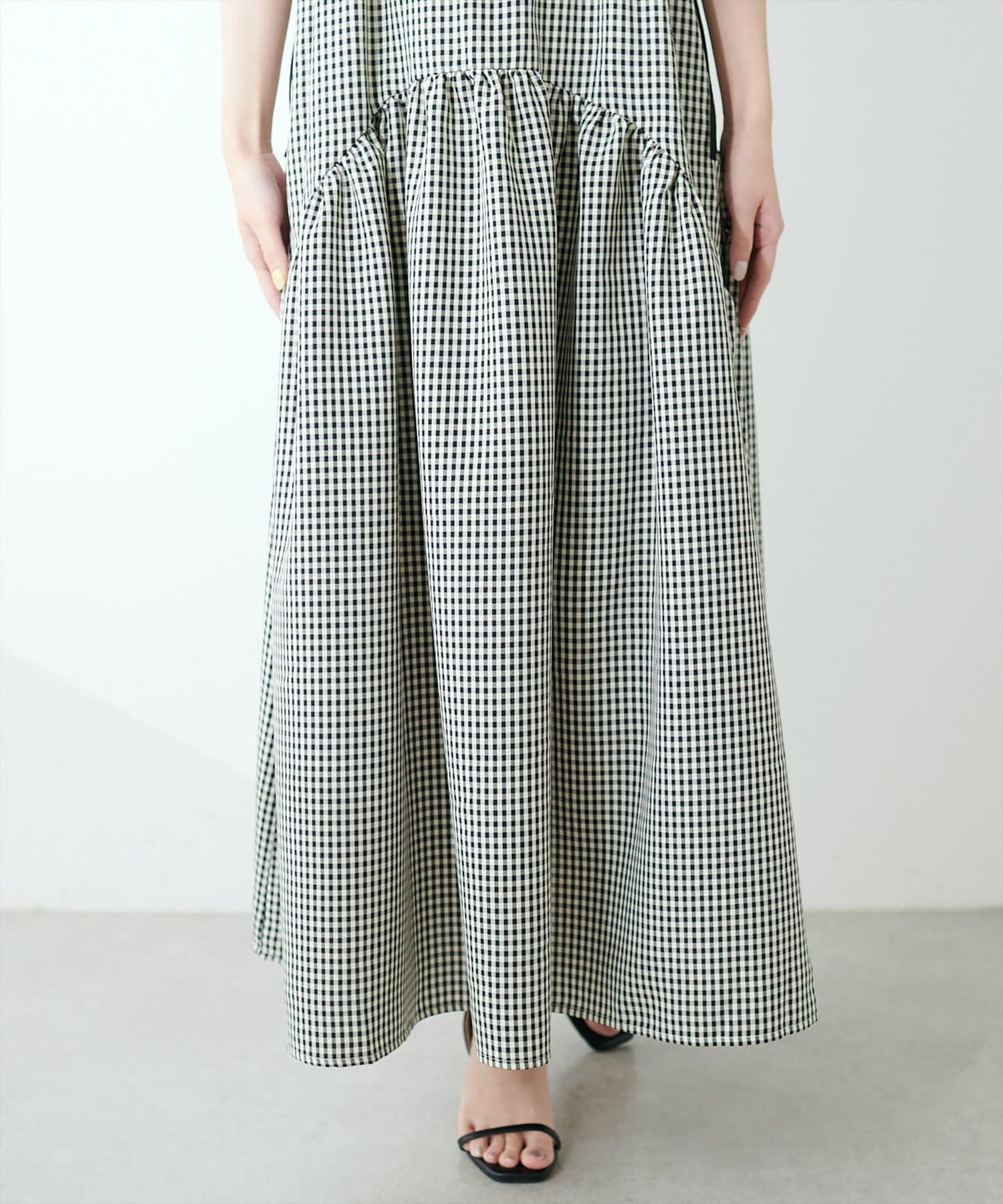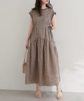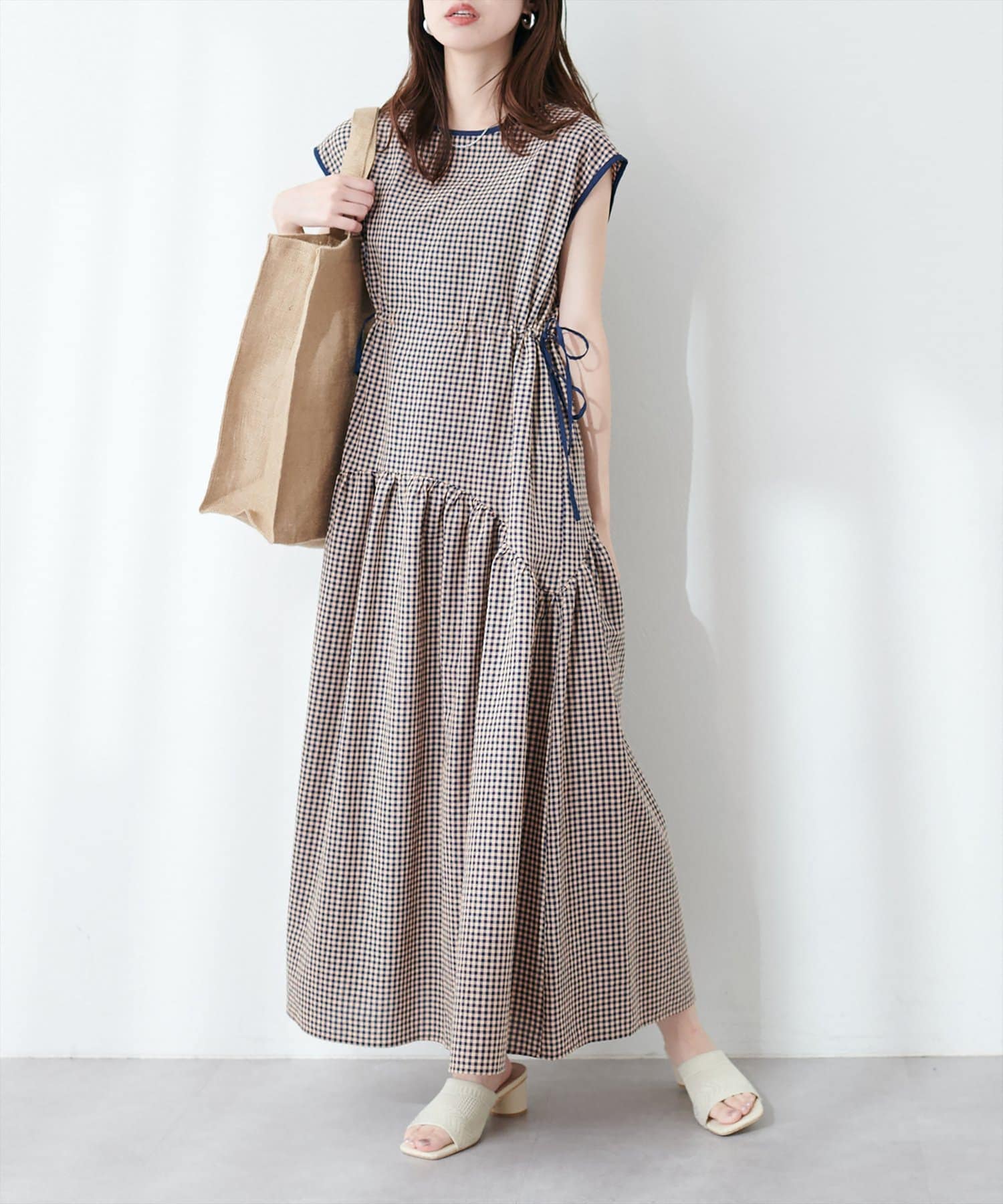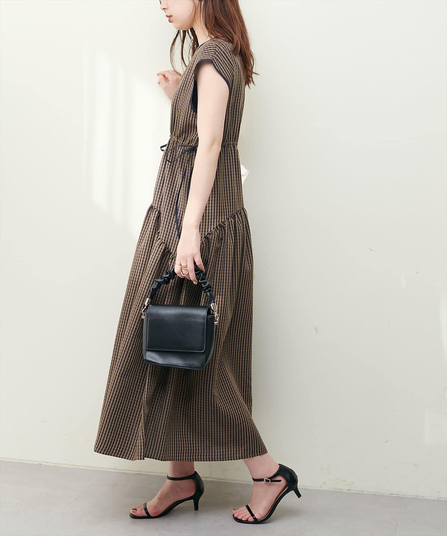 子どもっぽくなりがちなチェック柄も、肌馴染みの良い落ち着いたカラーと細かな柄使いで大人レディな印象に。