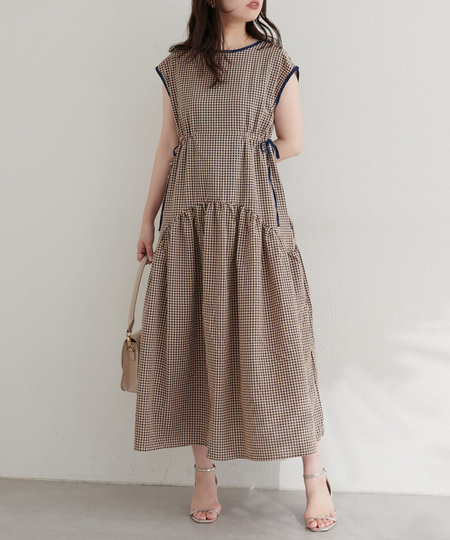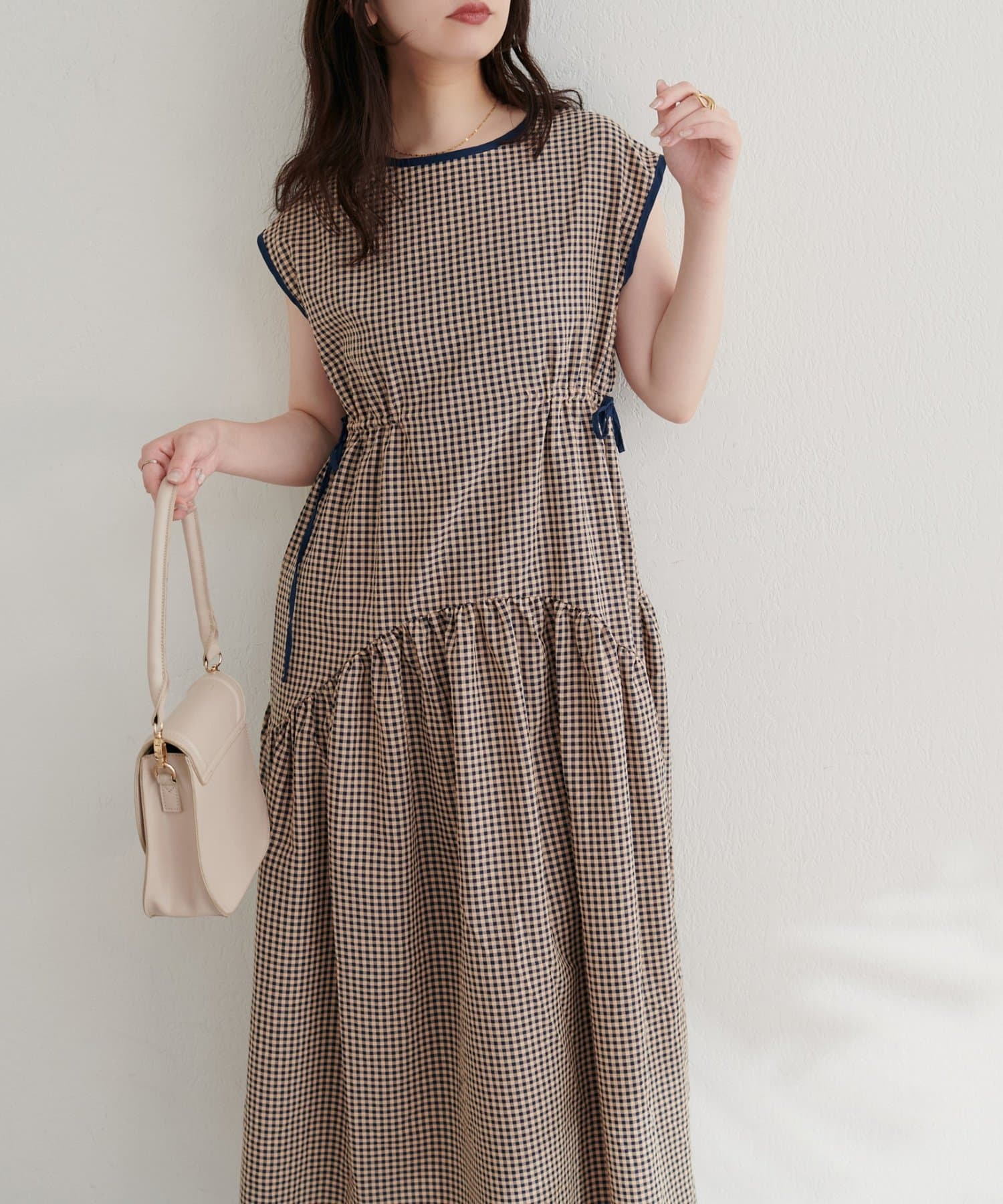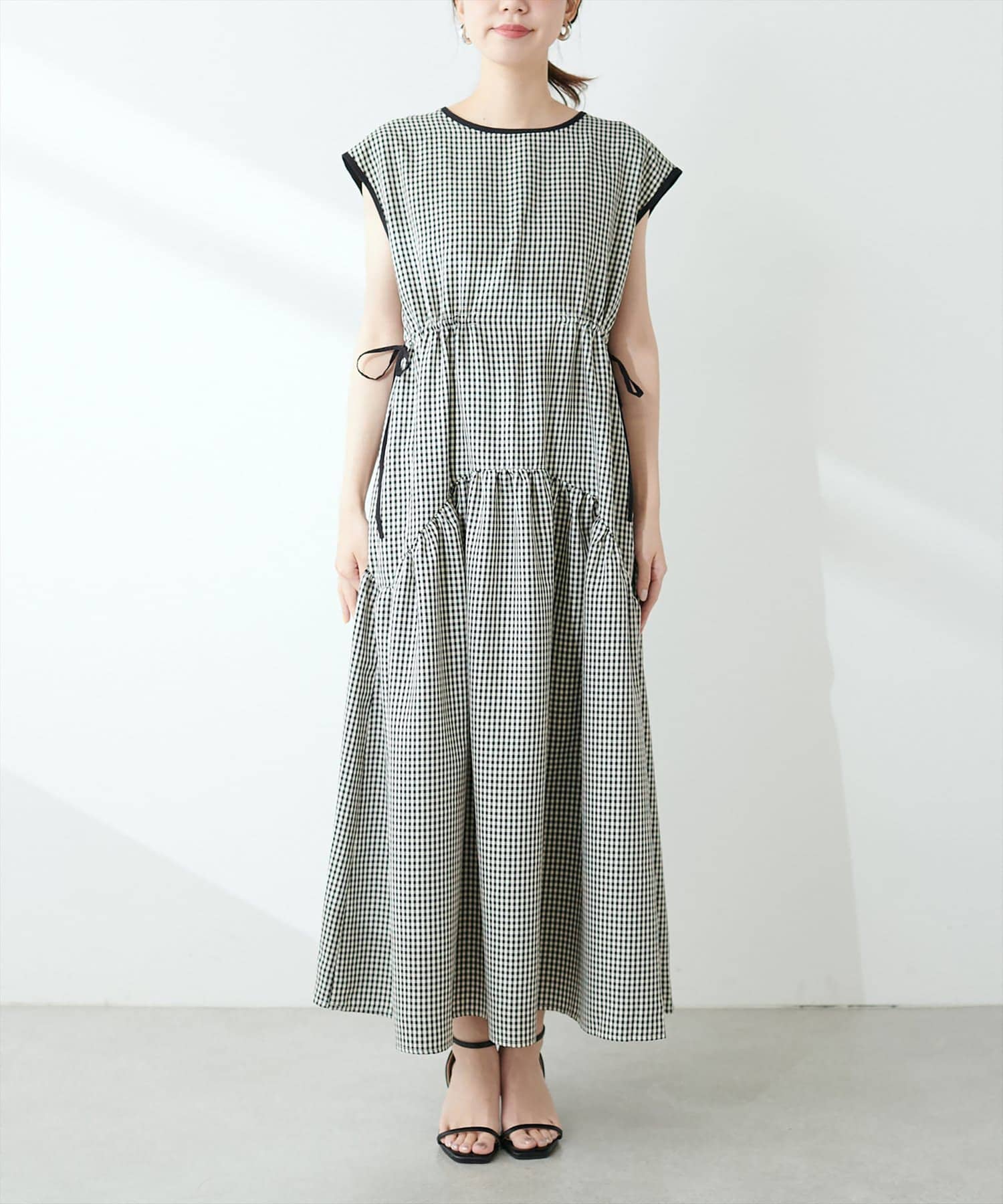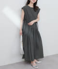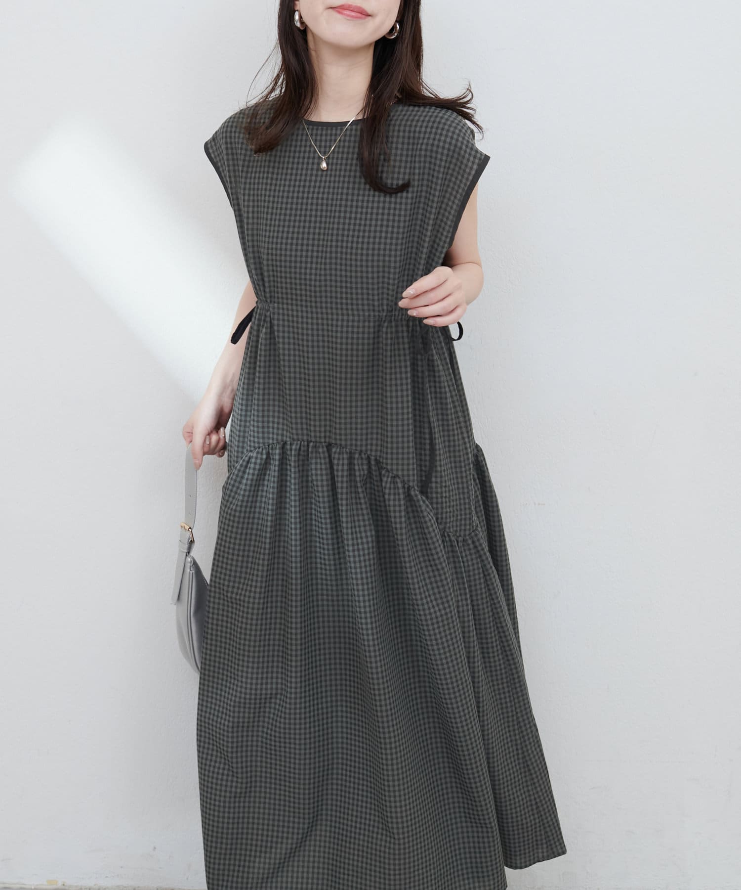 ウエストのドロストデザインがトレンドライクなノースリーブワンピース。