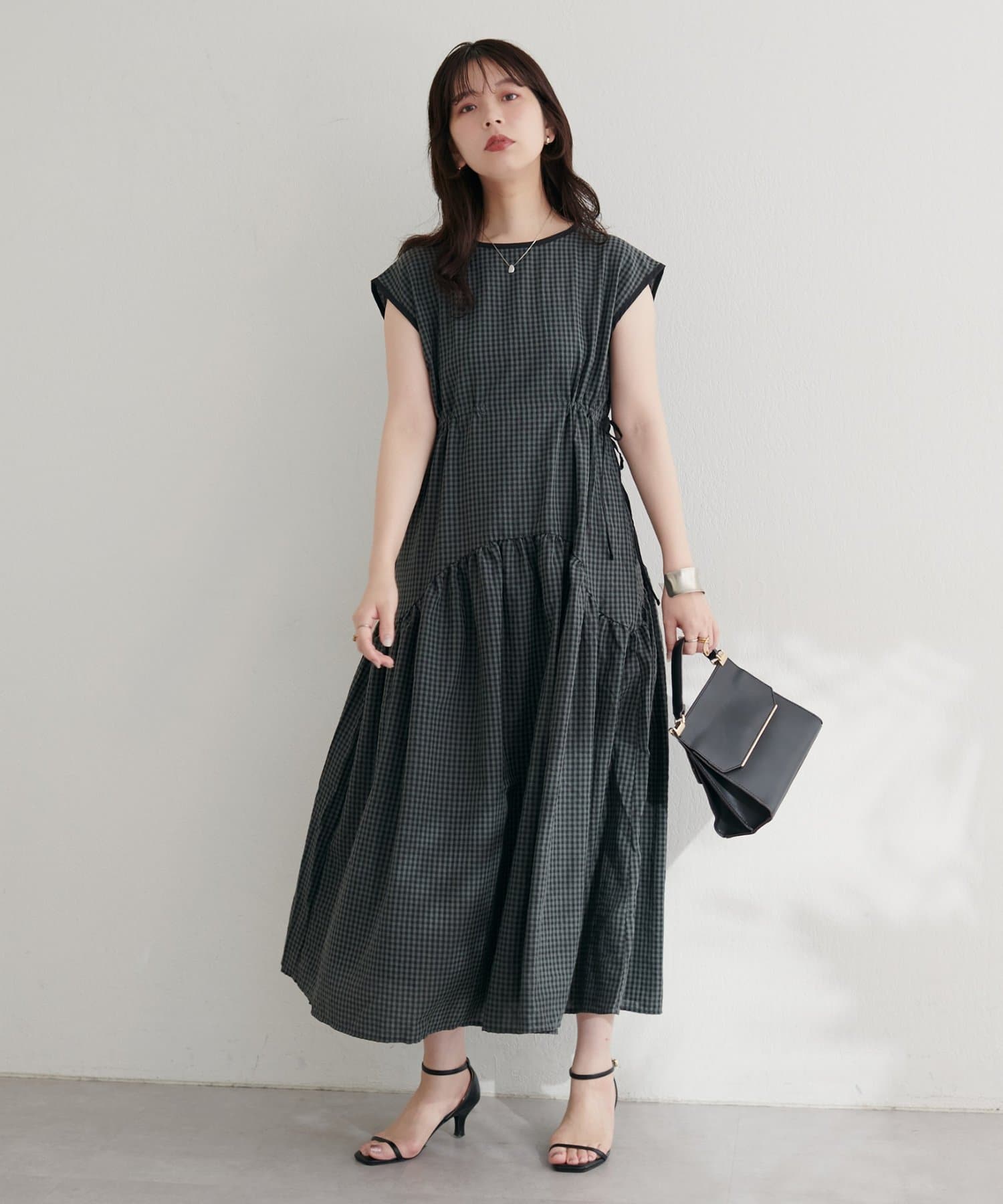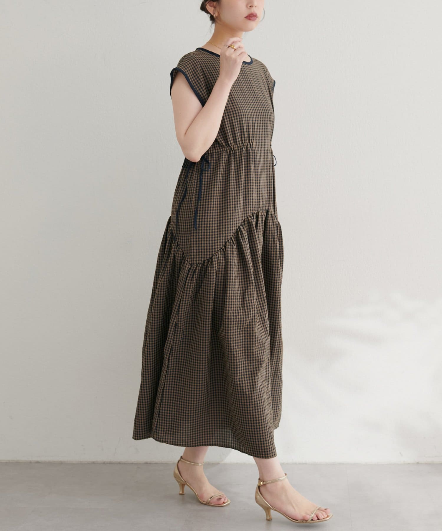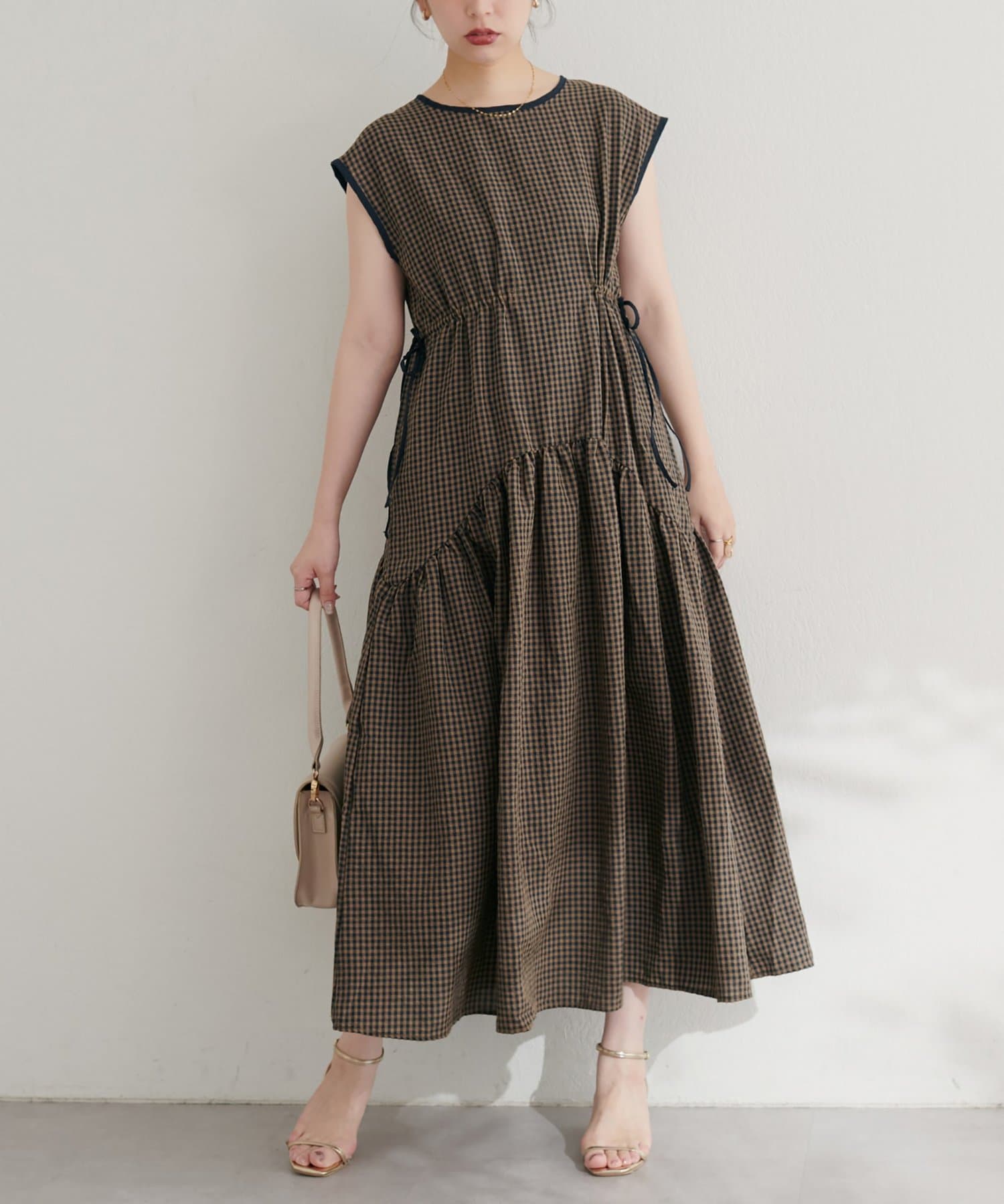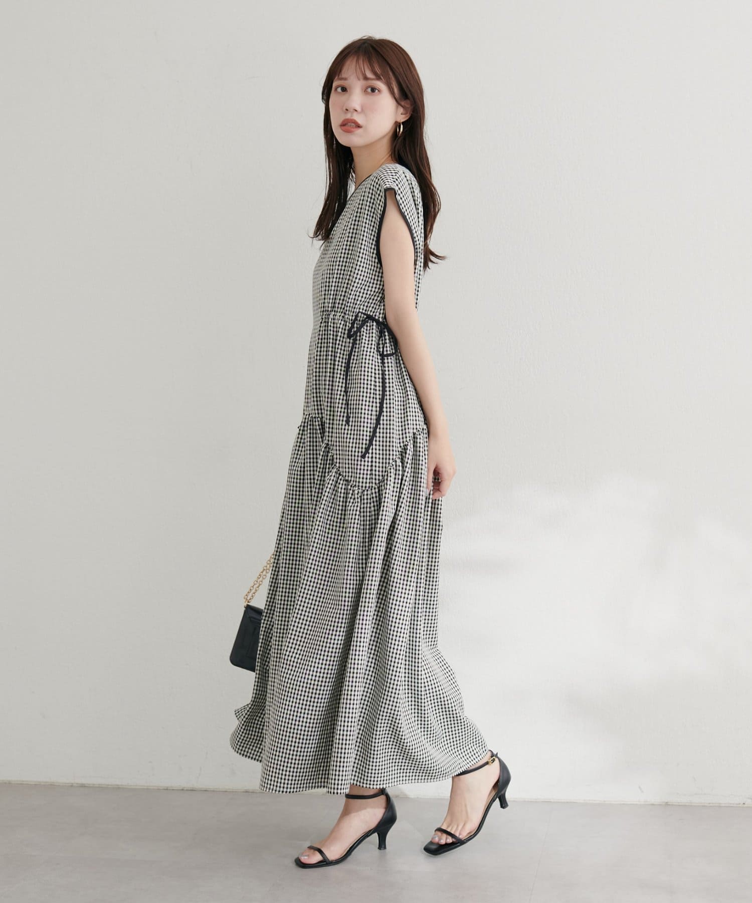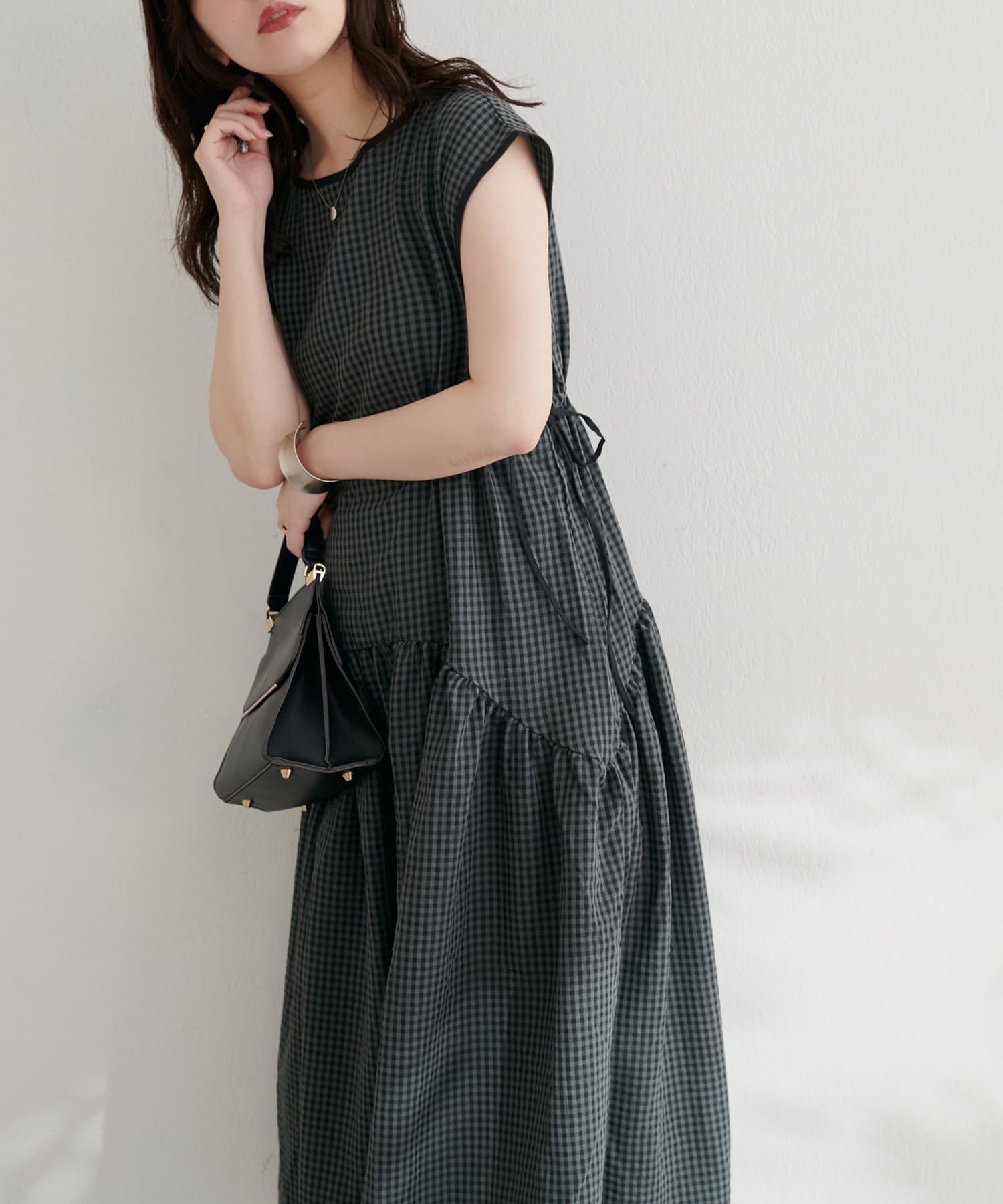 ウエストのドロストデザインがトレンドライクなノースリーブワンピース。