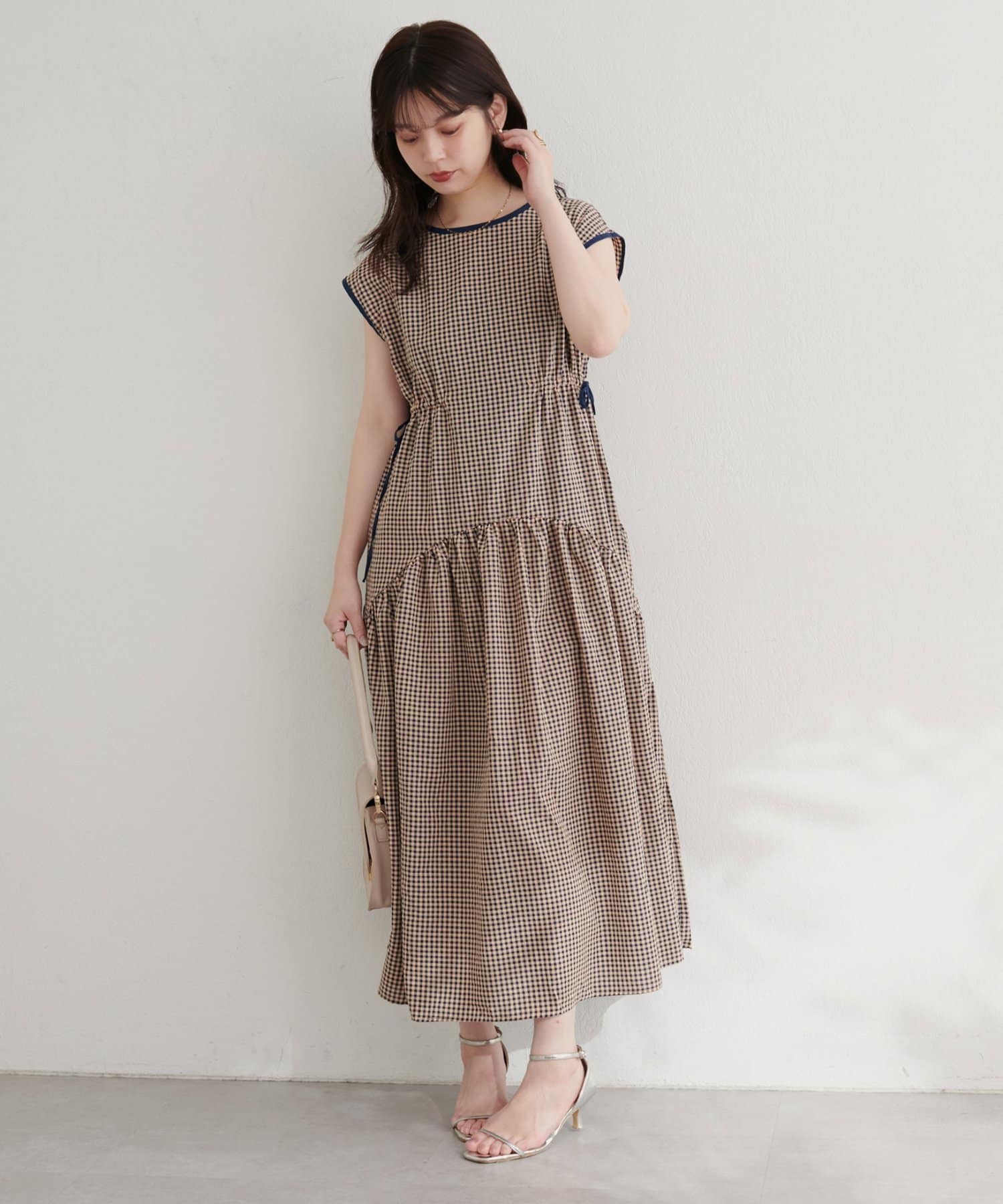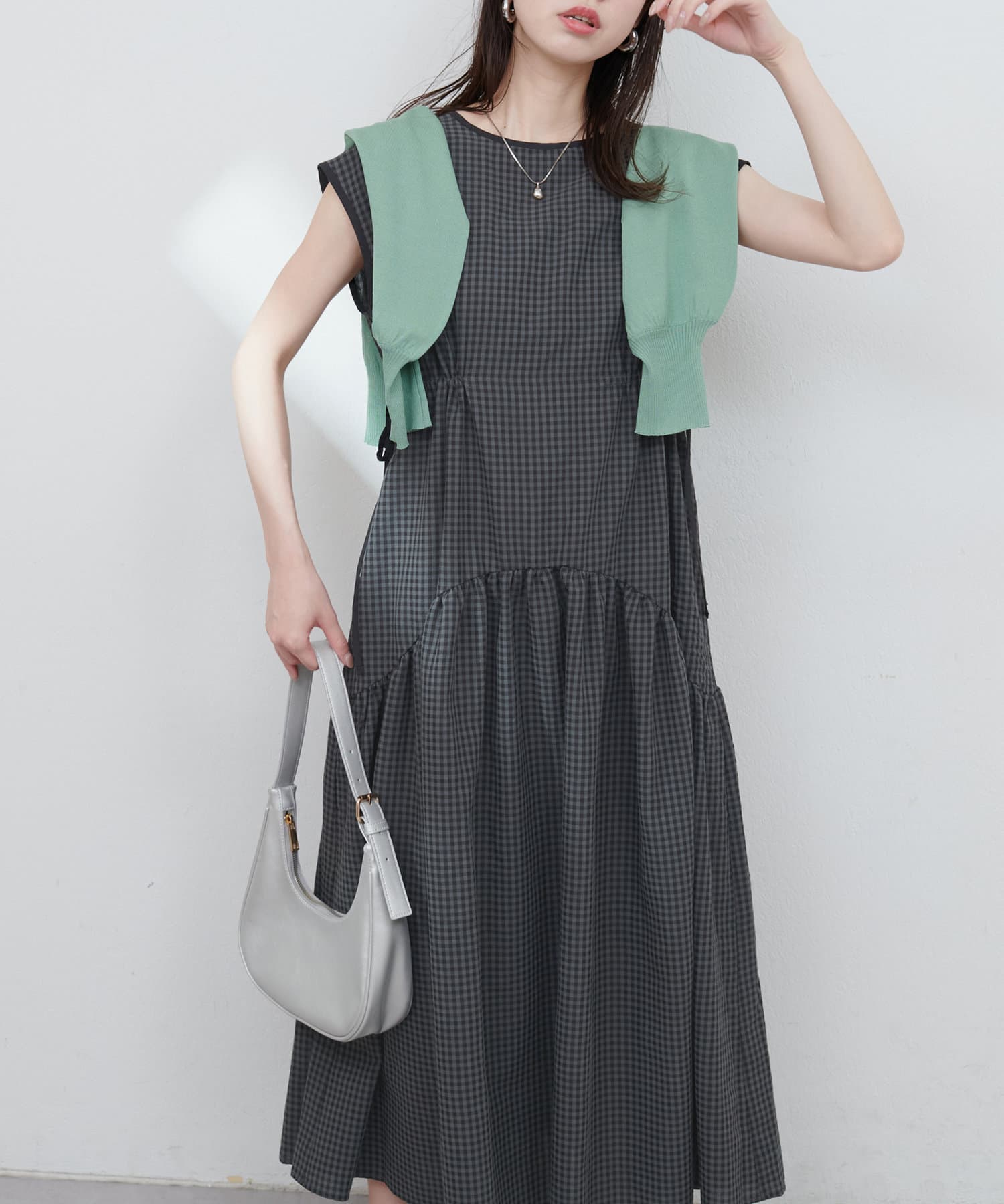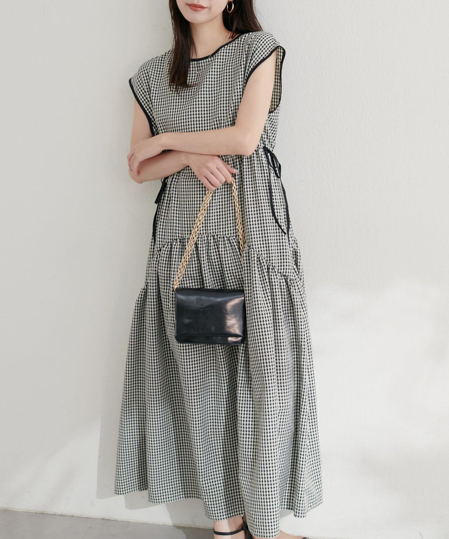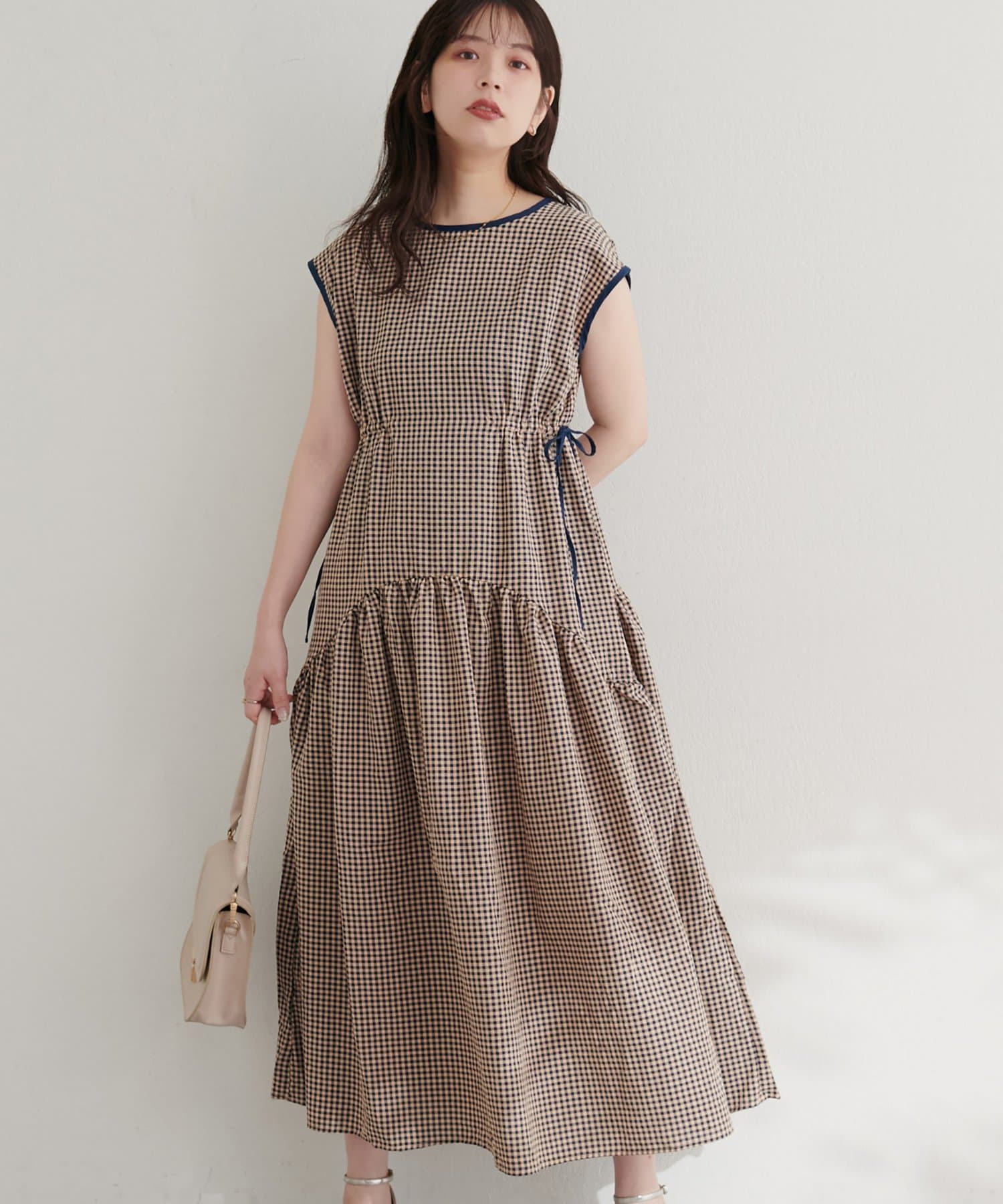 ウエストのドロストデザインがトレンドライクなノースリーブワンピース。