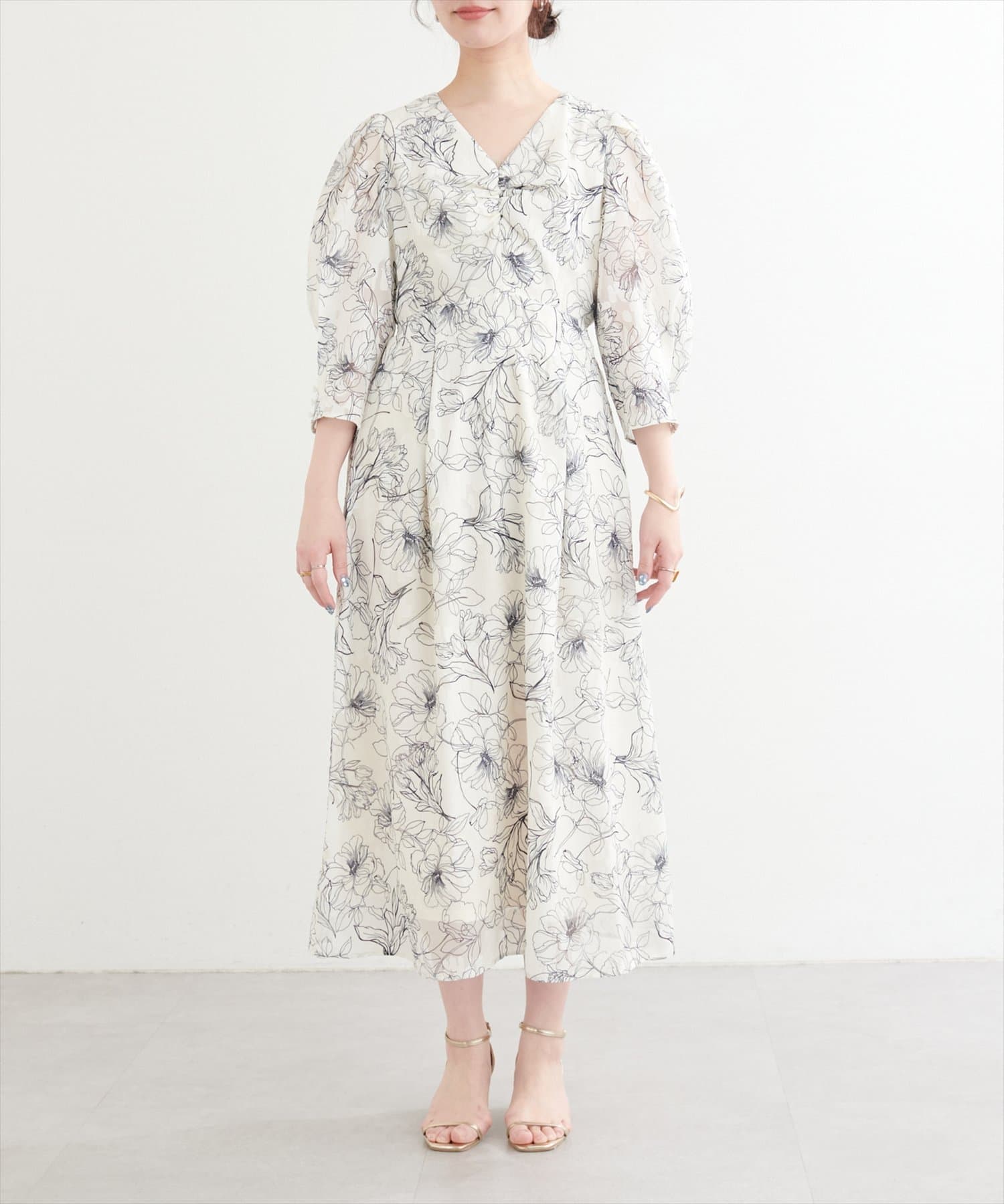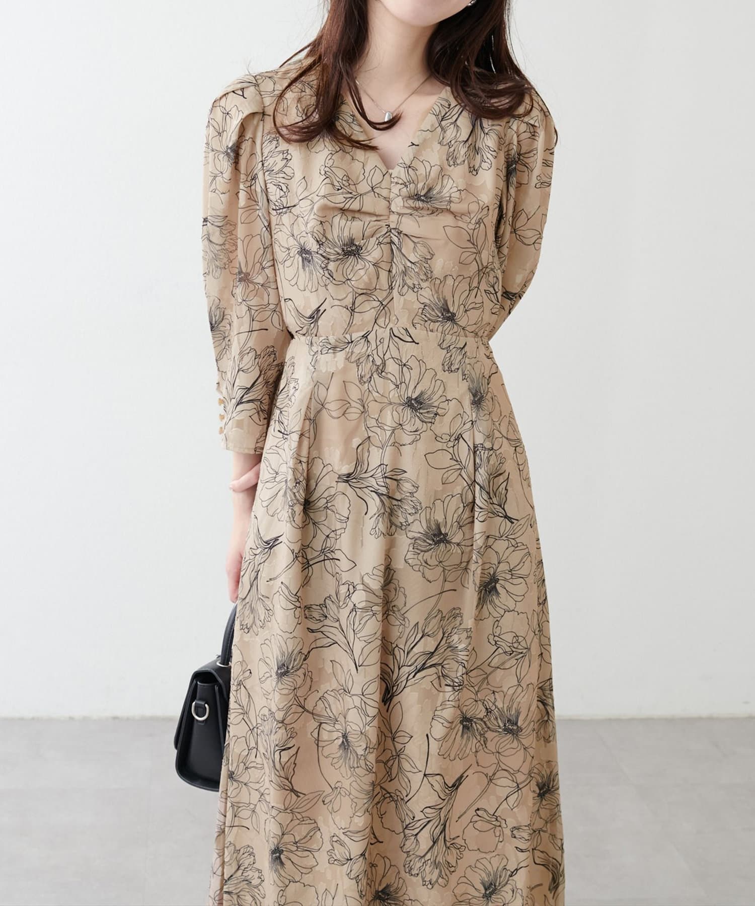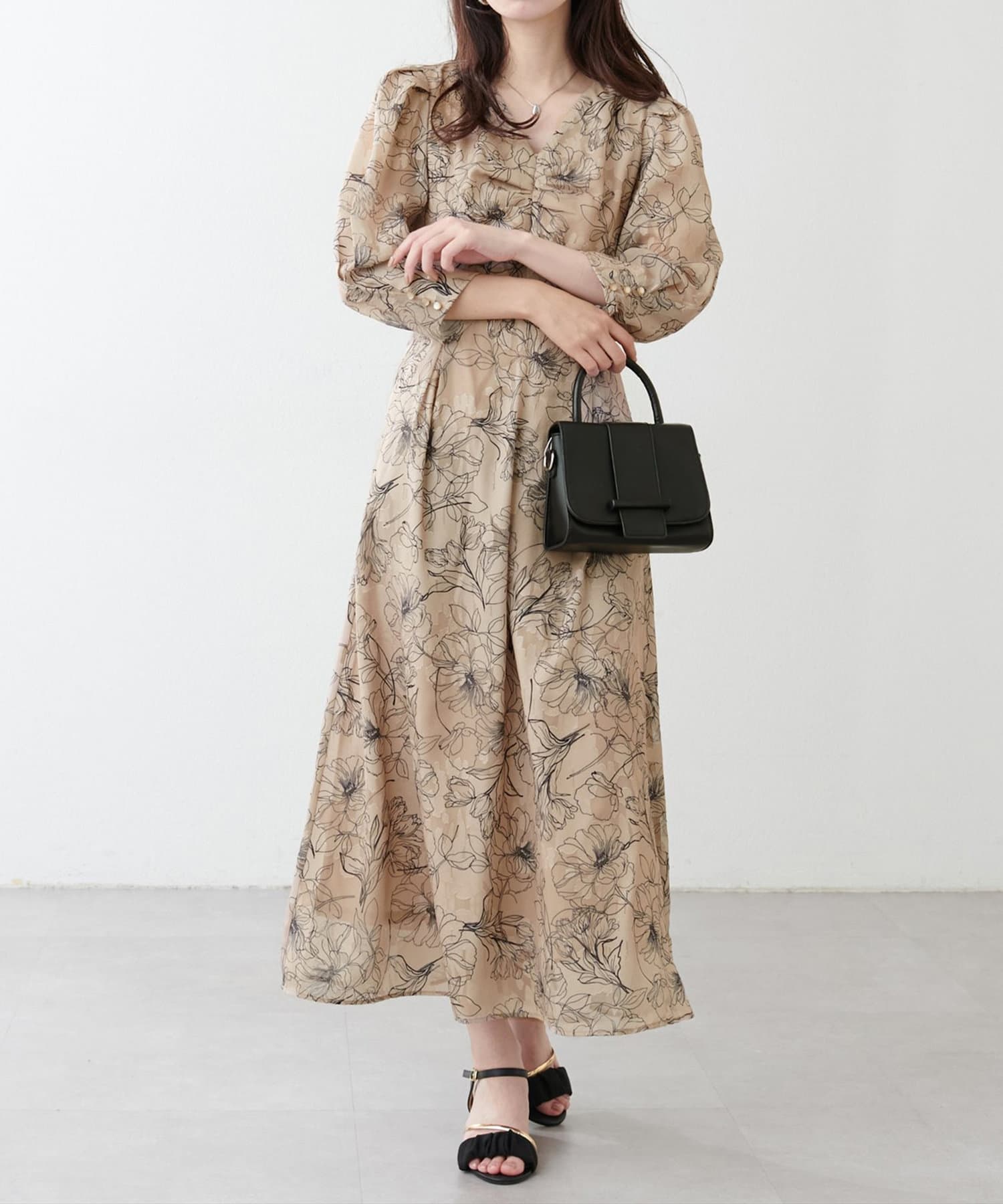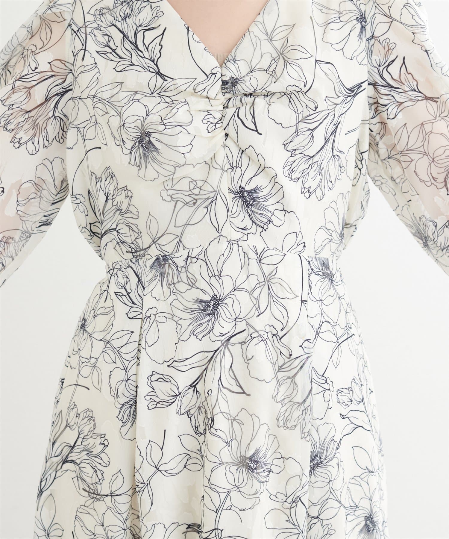 華やかで繊細な線画ジャガード柄で大人っぽくコーデが決まるワンピース。