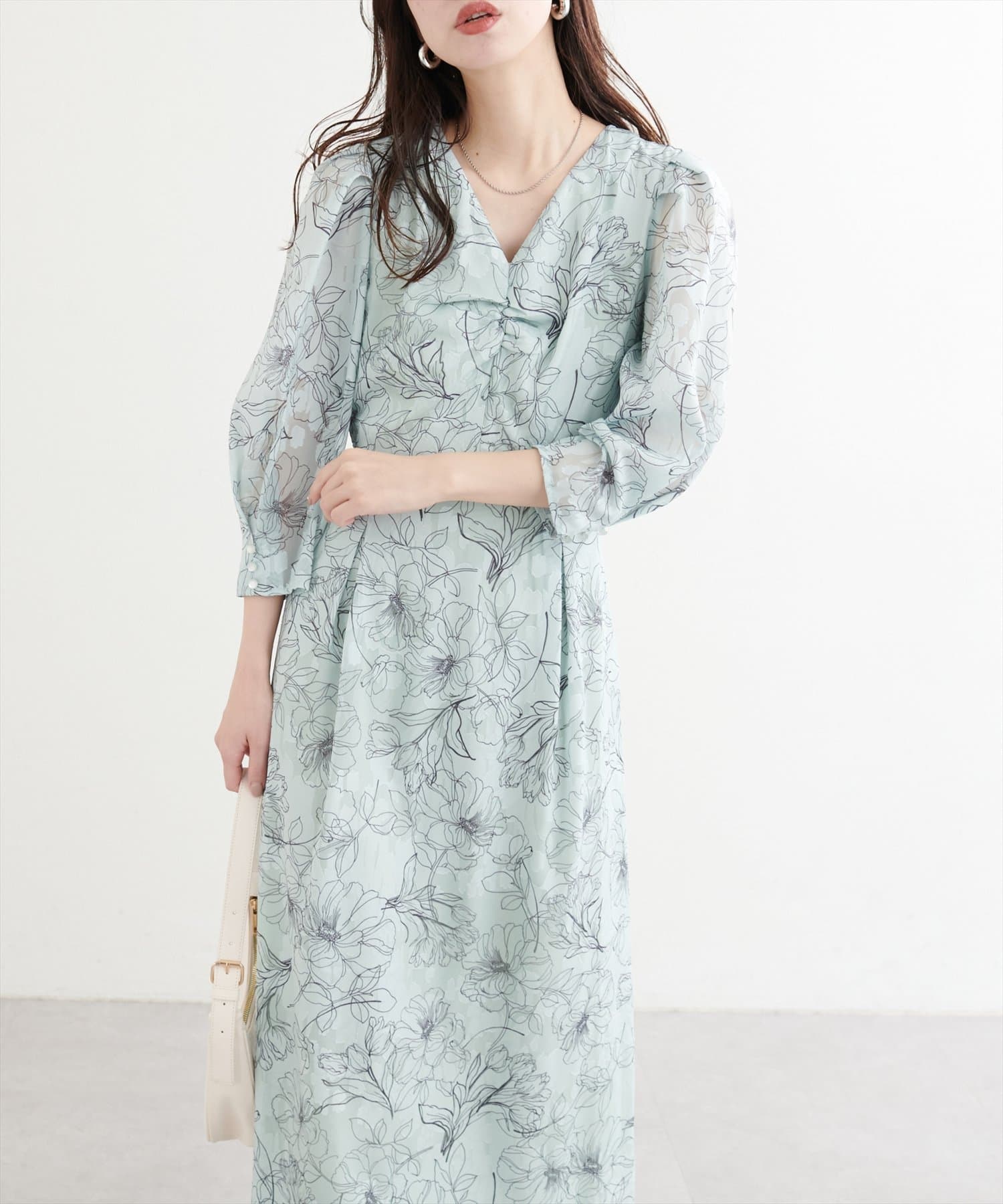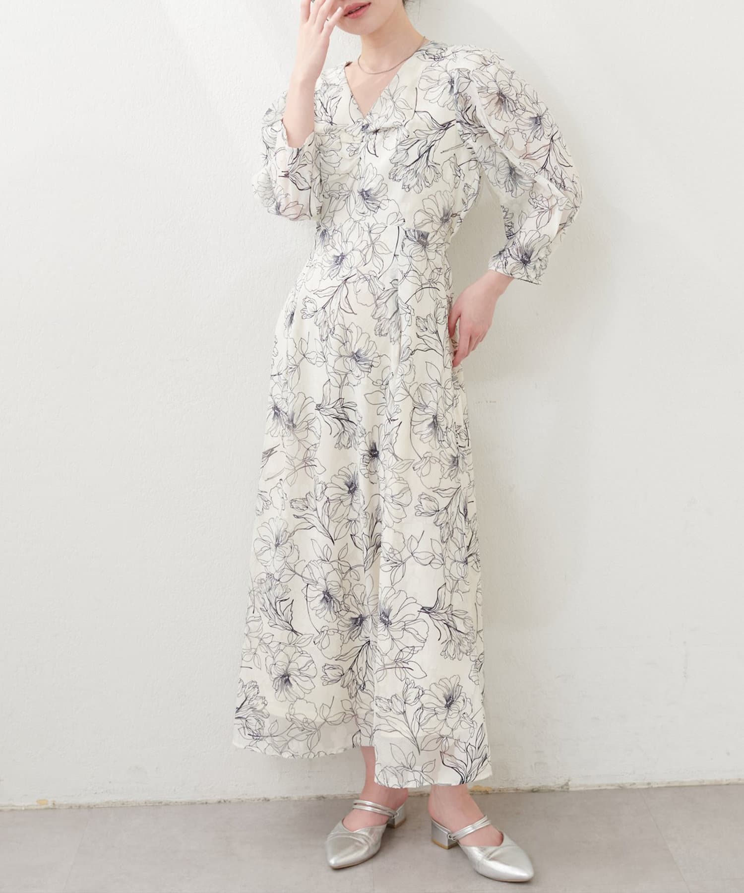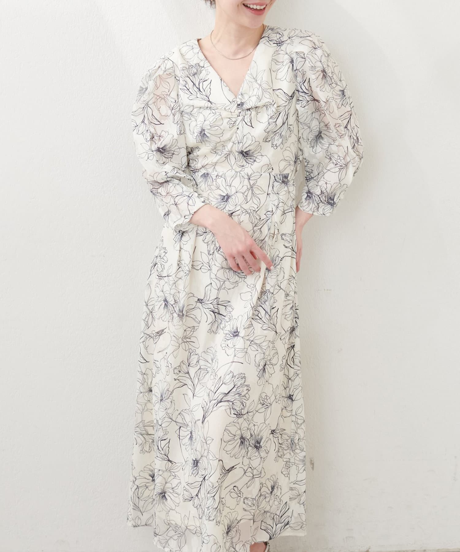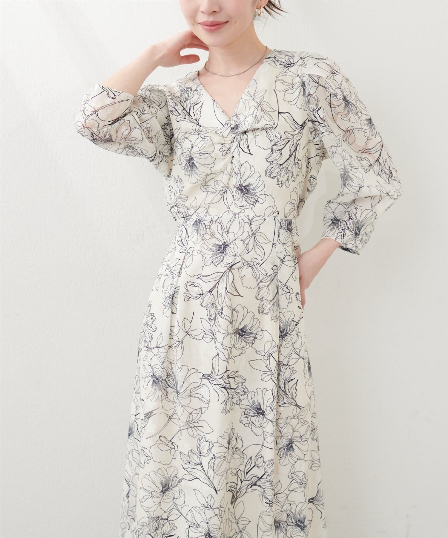 華やかで繊細な線画ジャガード柄で大人っぽくコーデが決まるワンピース。