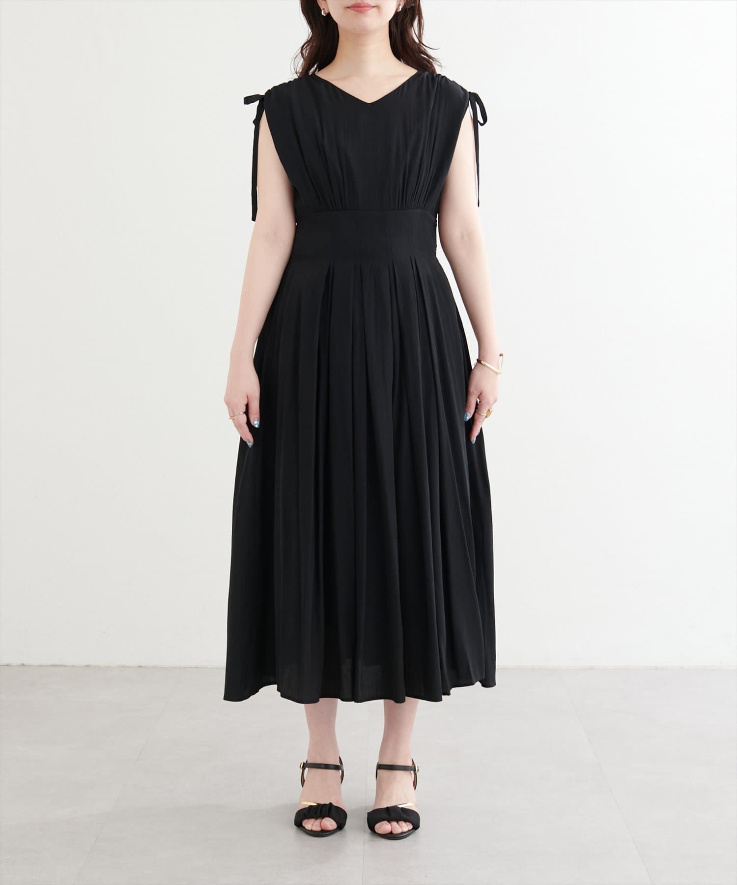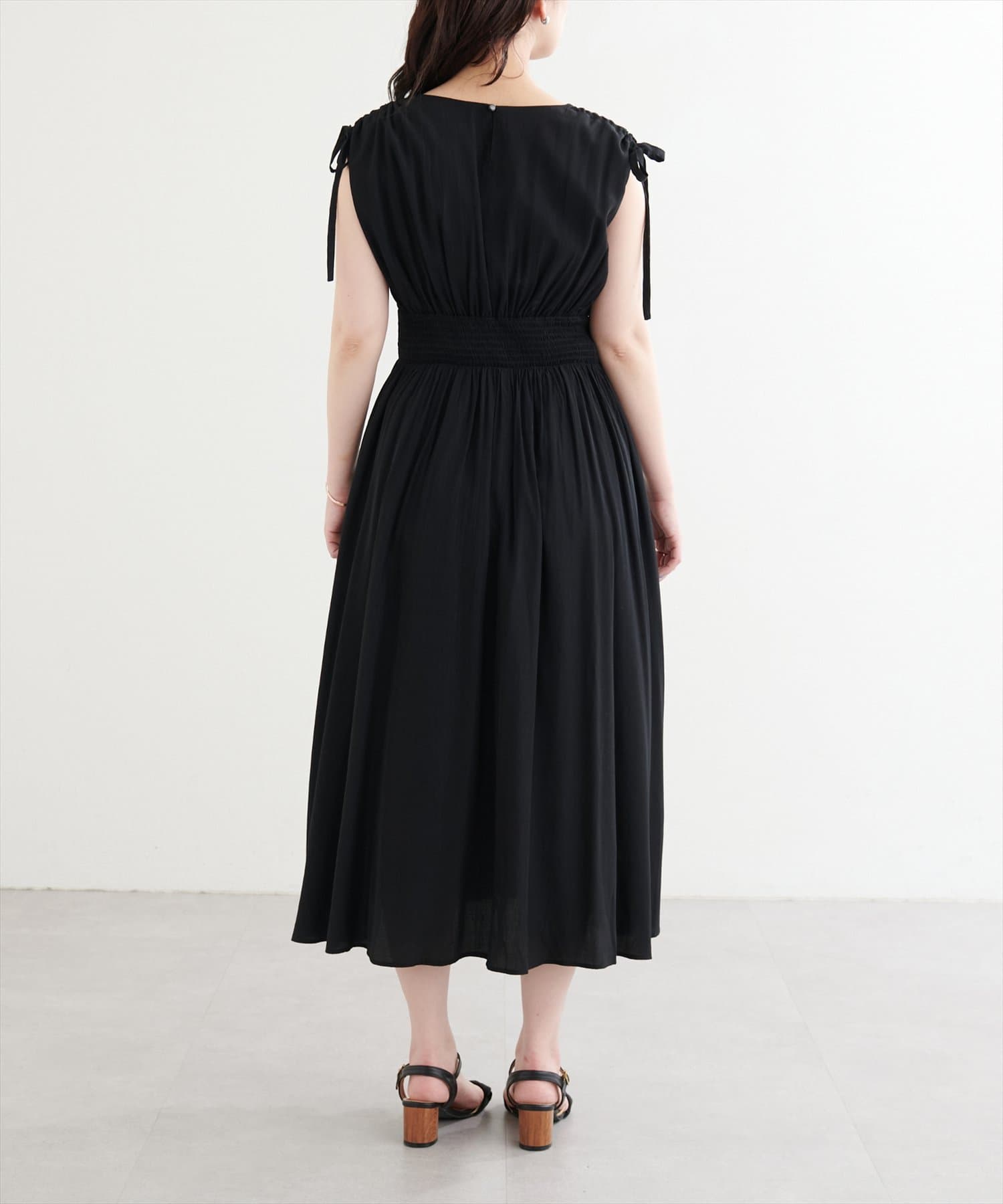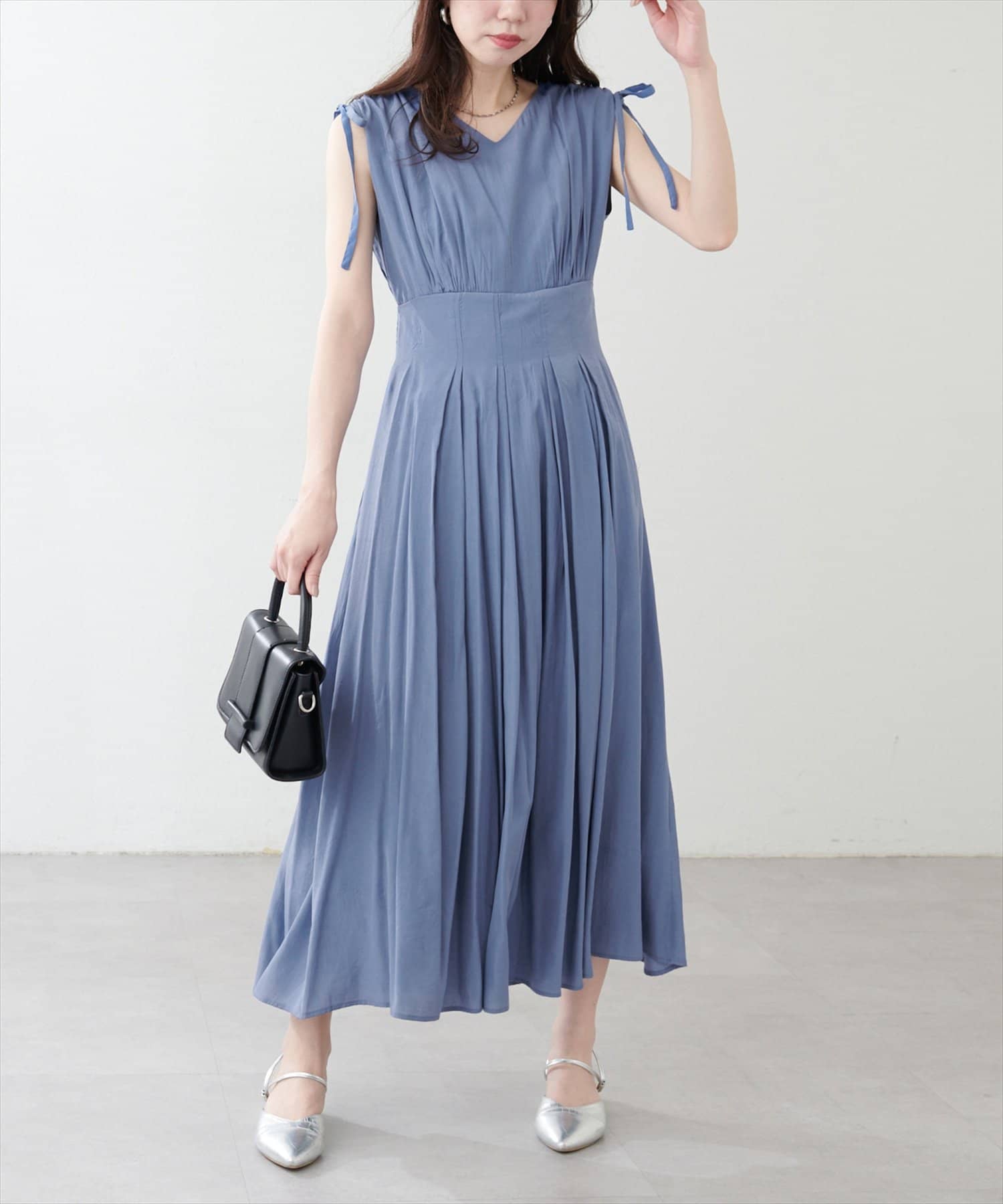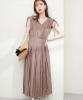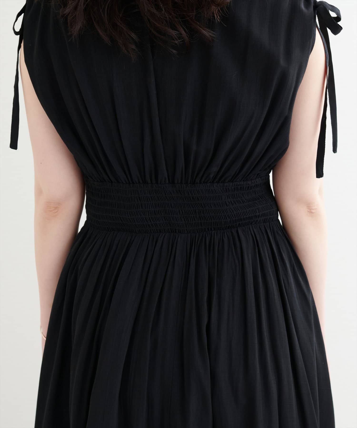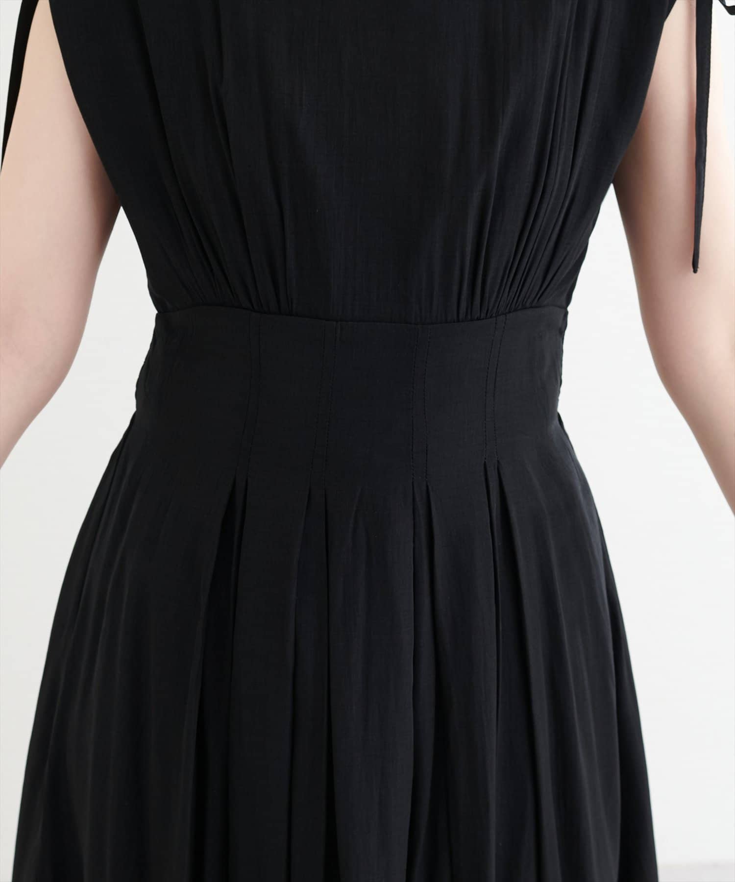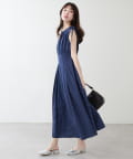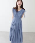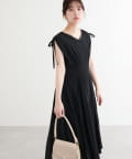 ショルダー部分のドロストリボンで高級感溢れる印象のノースリーブワンピース。