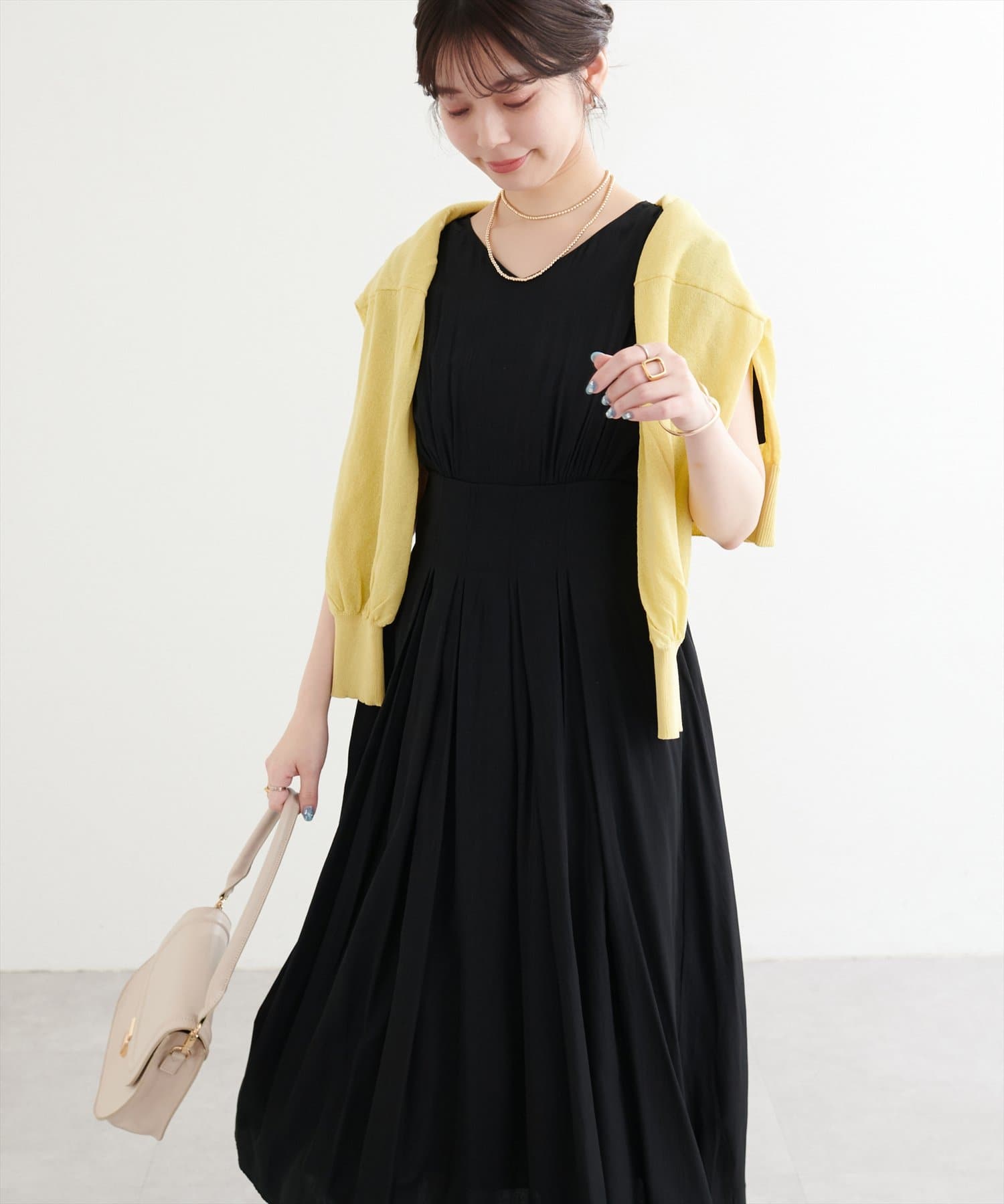 落ち感のる生地で洗練された形なので、特別なお出かけやディナーにもおすすめです。