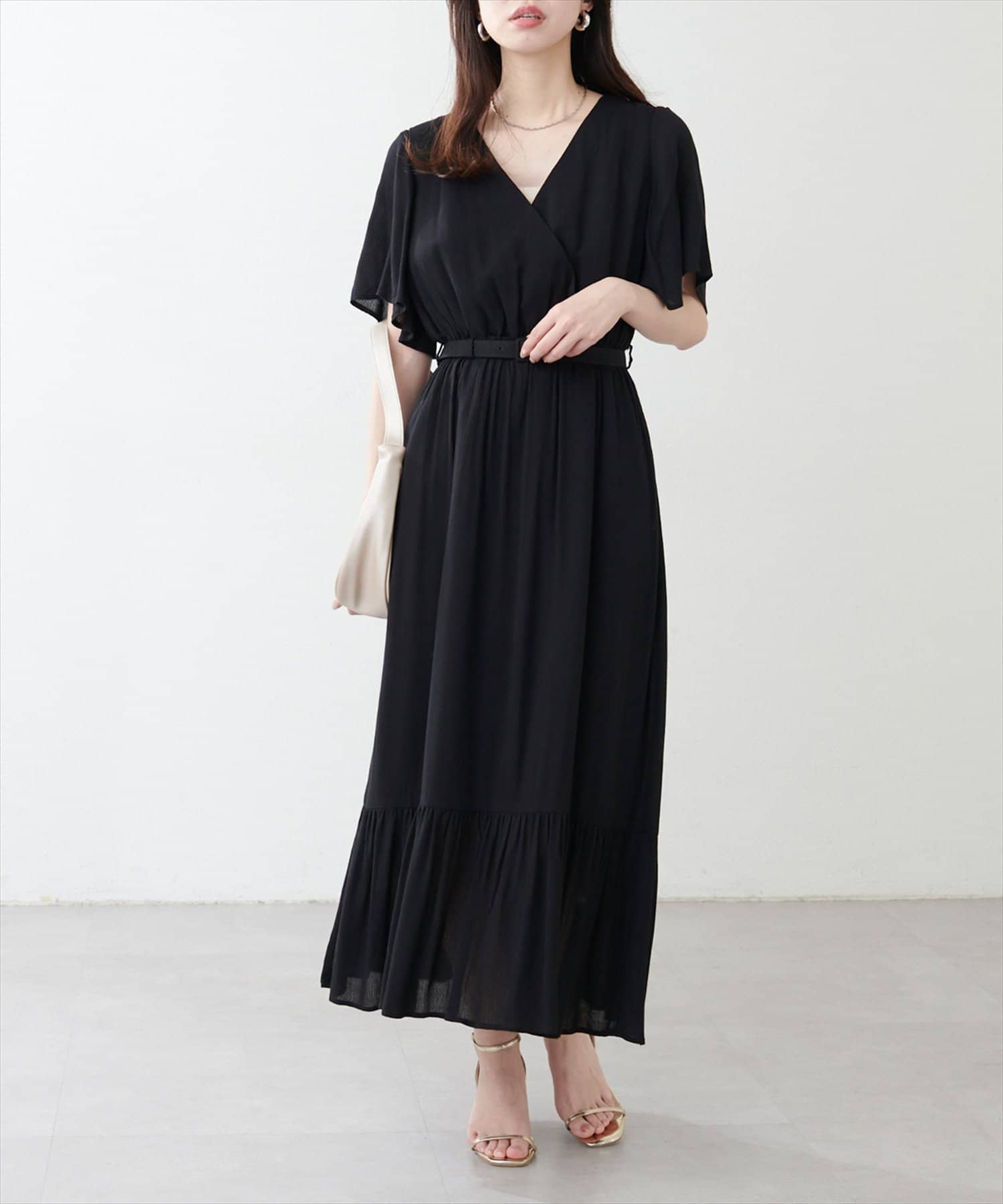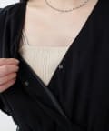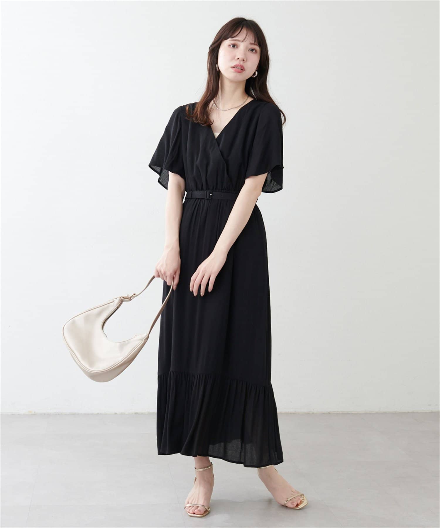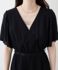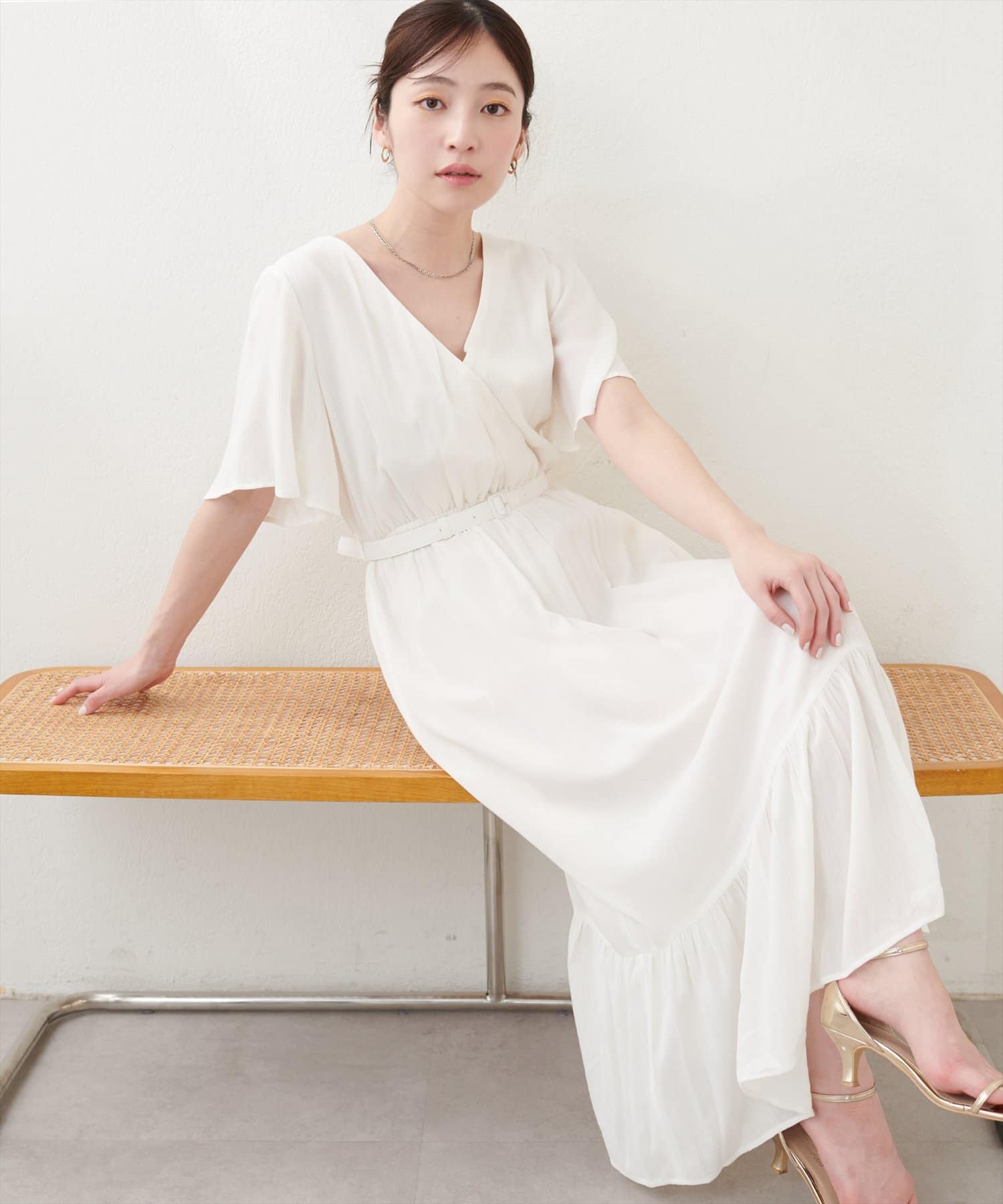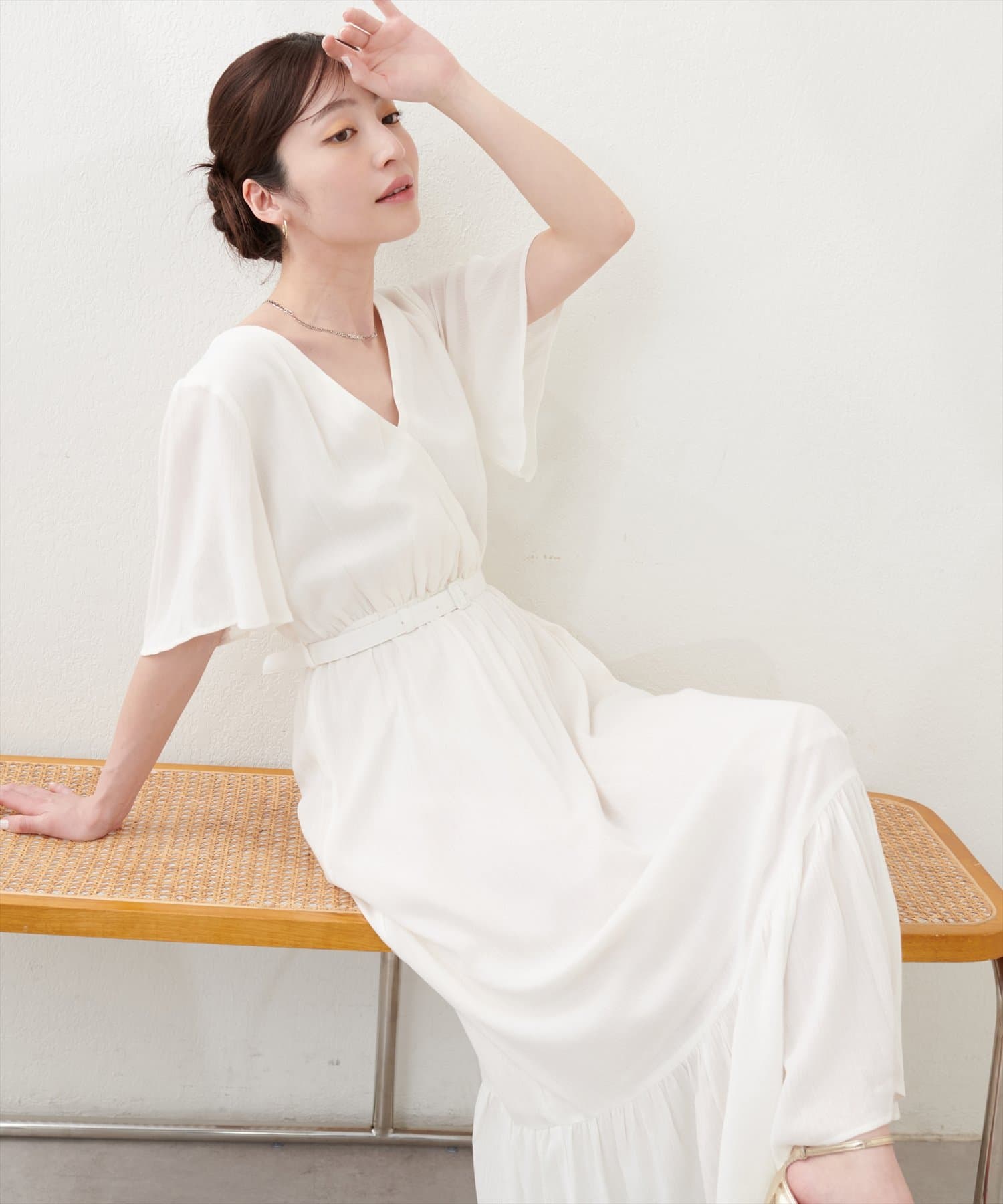 カシュクールデザインがシンプルすぎず、デコルテを程よく見せてくれることでヘルシーで女性らしくスタイリングしてくれます。