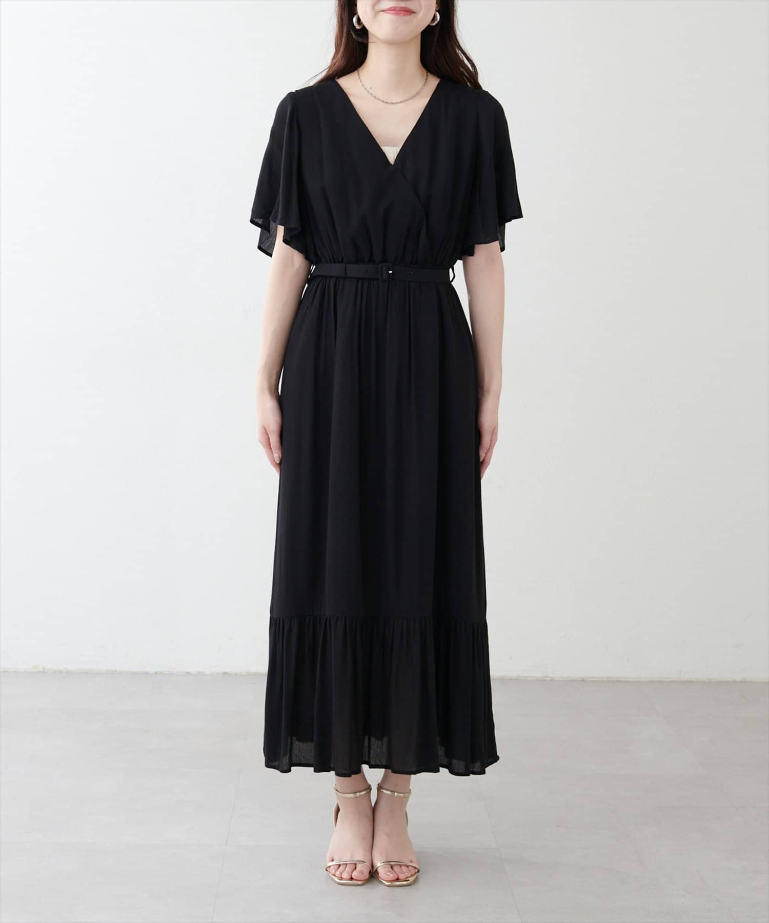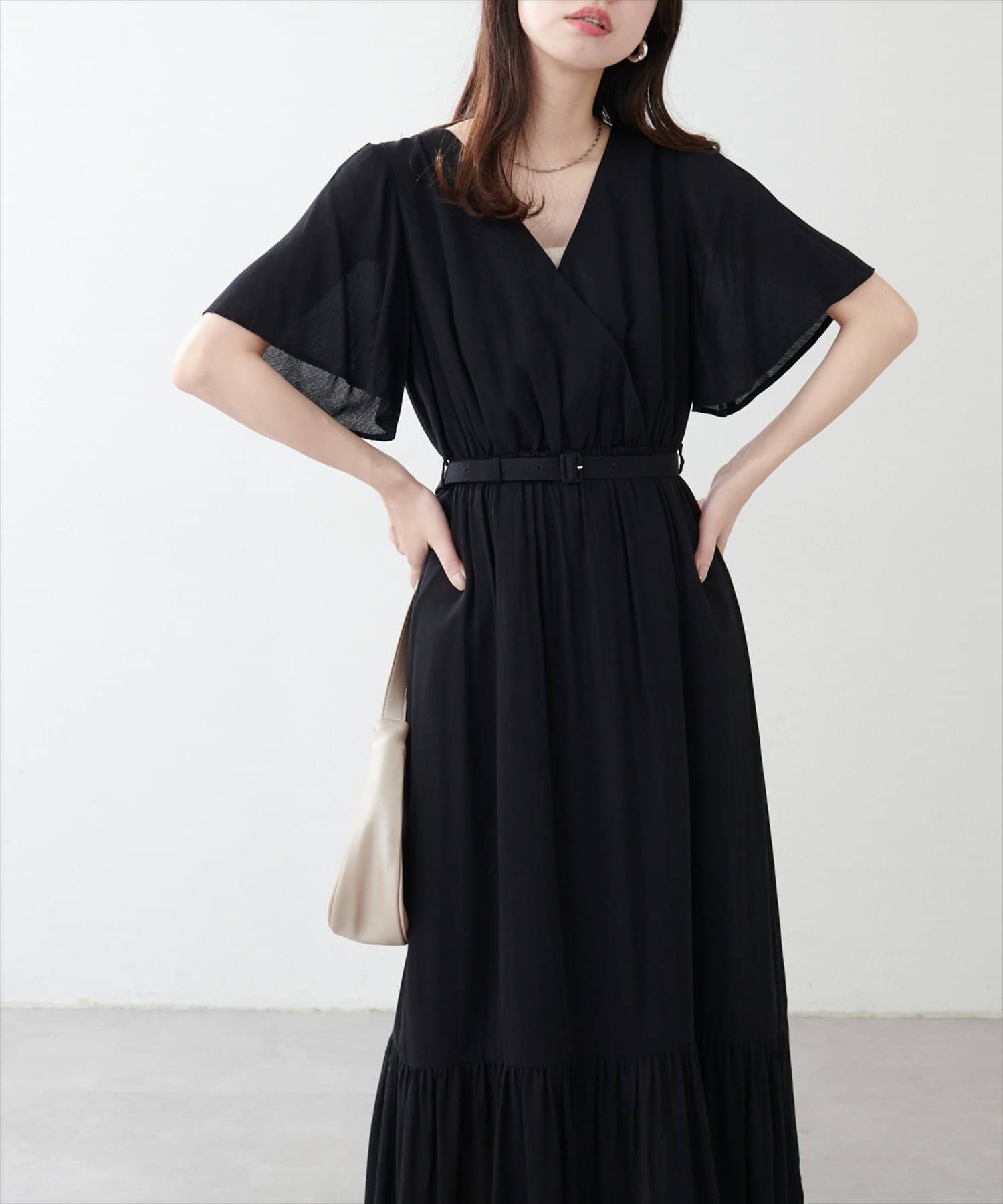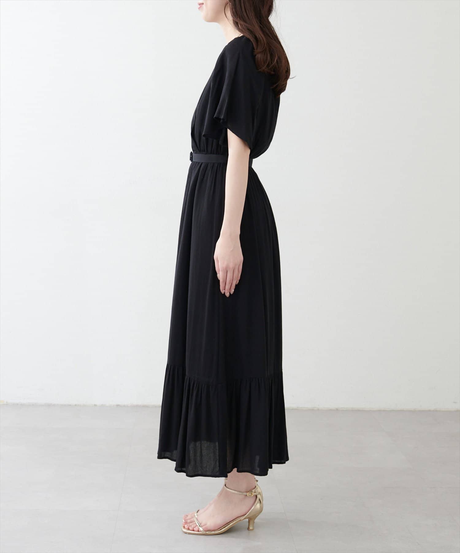 ウエストベルトでスタイルアップしてくれ、裾部分が切り替えで大人可愛いシルエットに。