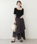 また、スカート部分はヘムを前後でランダムに仕立てたスカートとなっており、